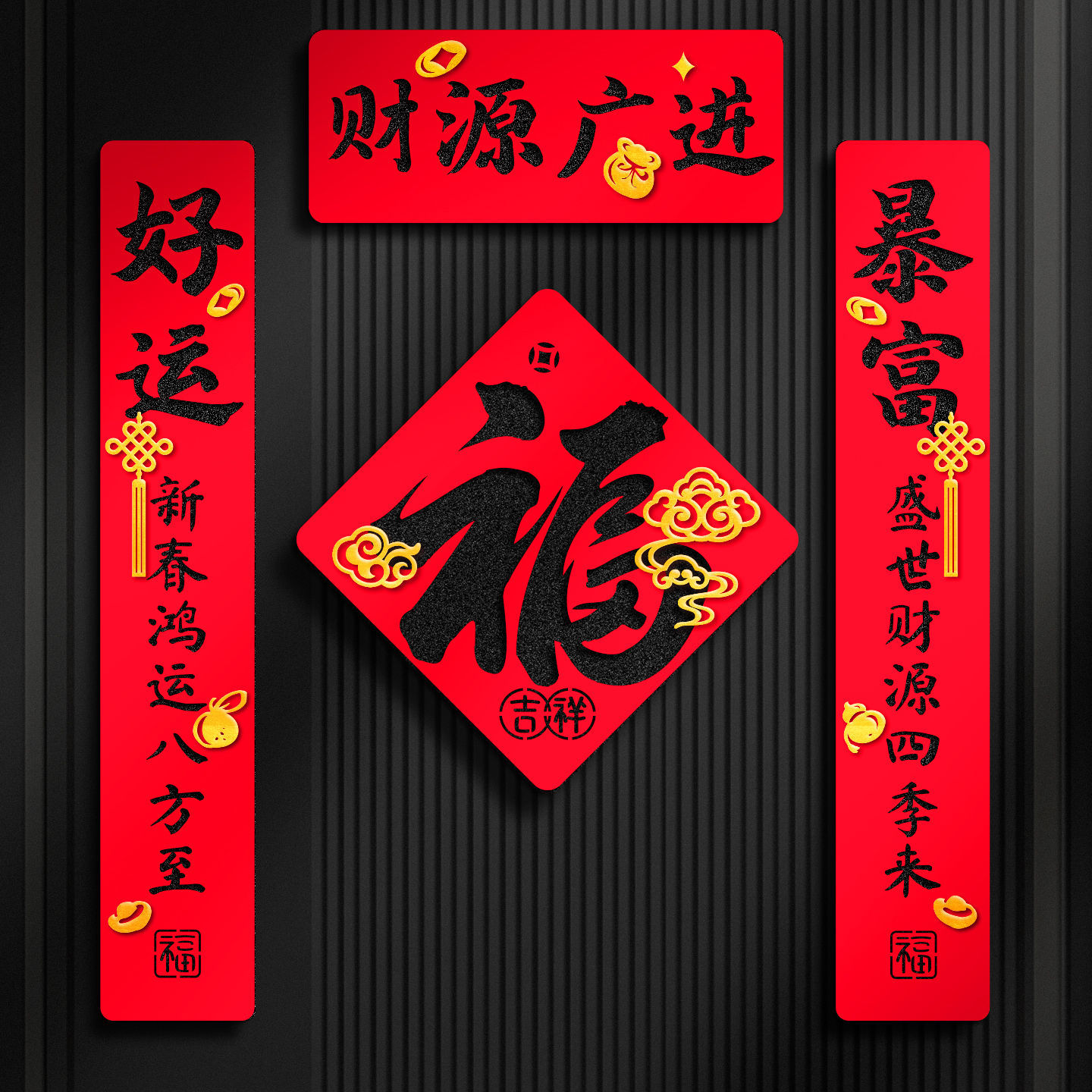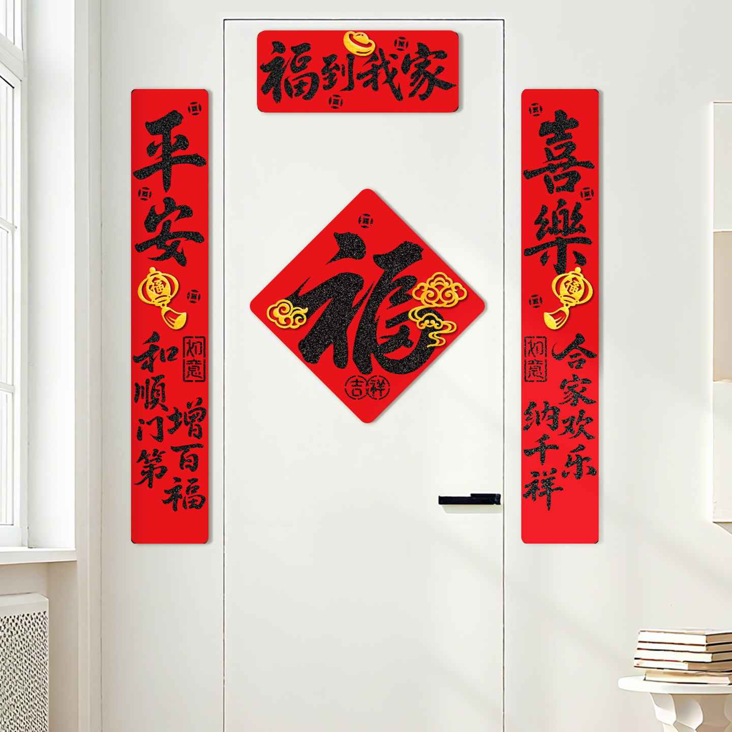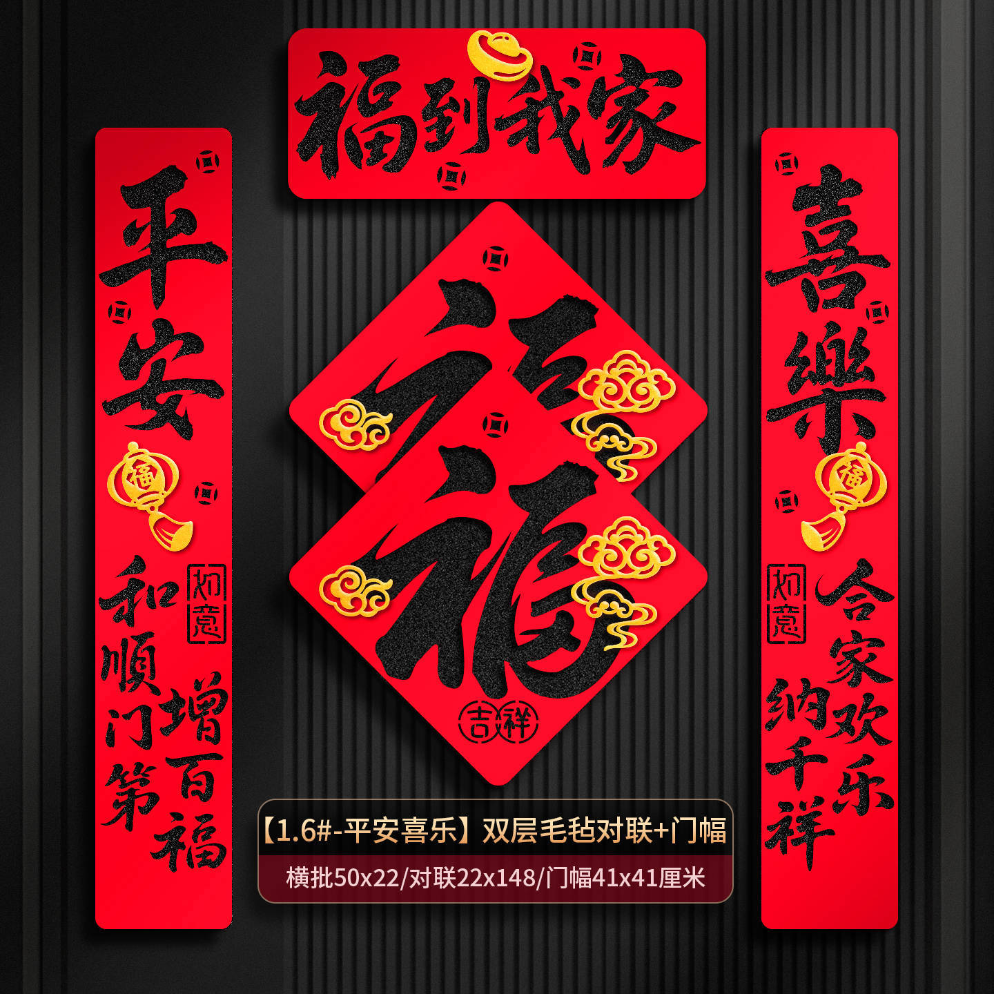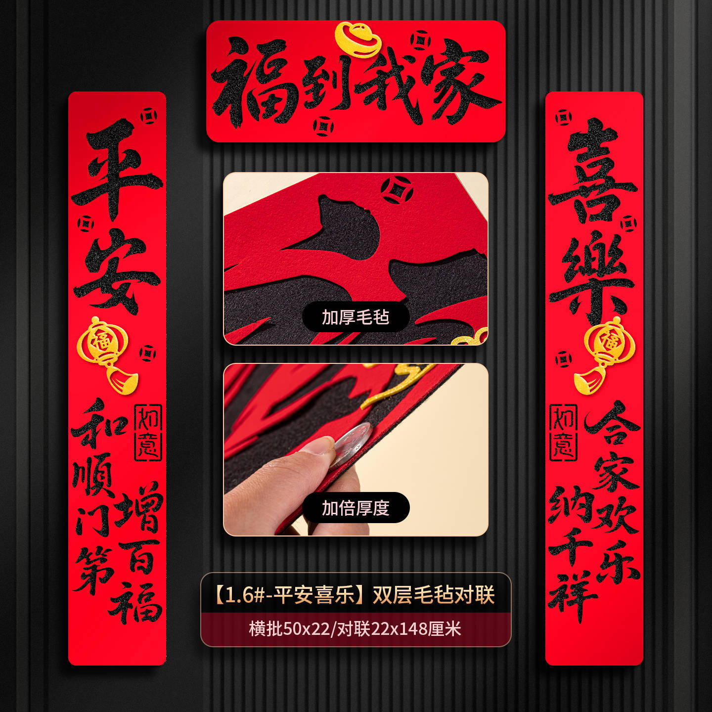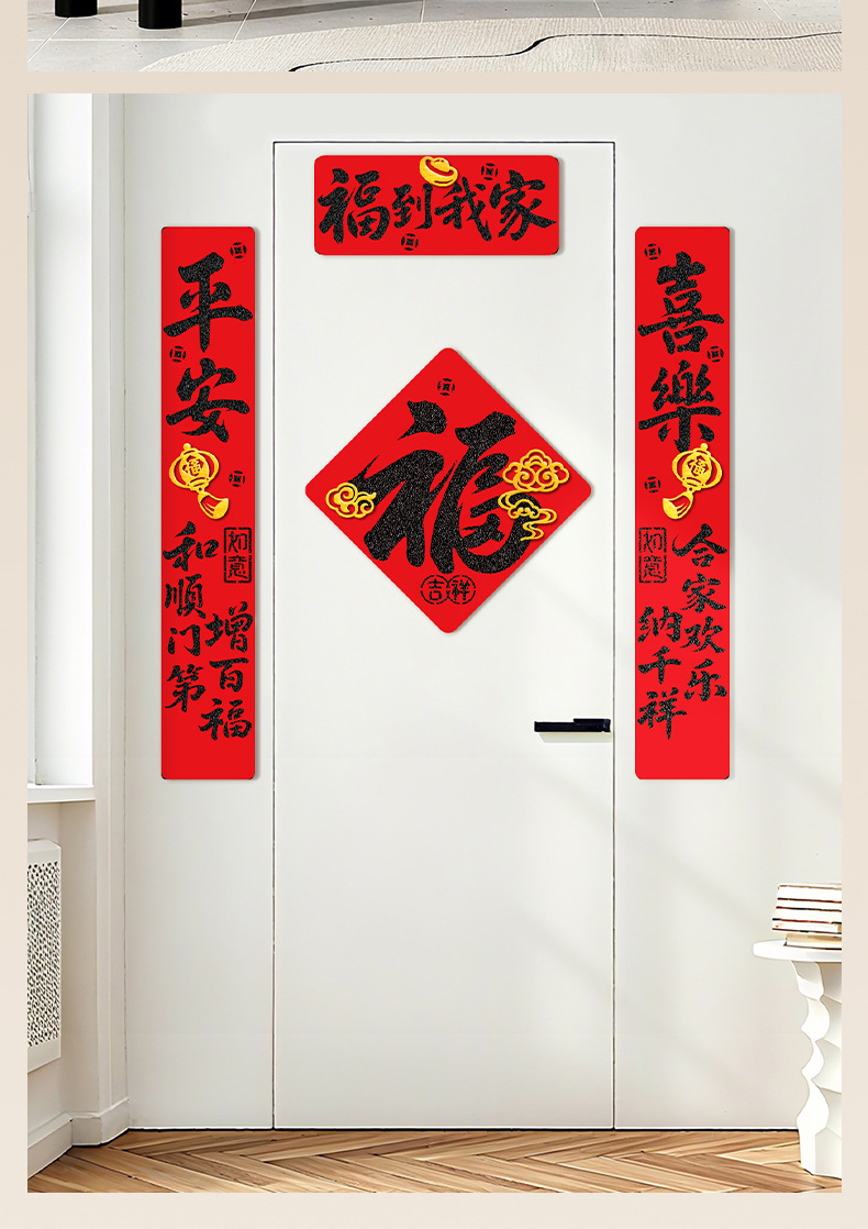 2026马年过年双层毛毡布对联春联门联福字家用入户门装饰布置现货