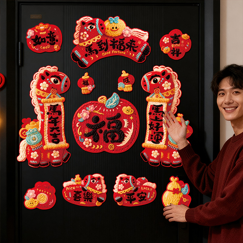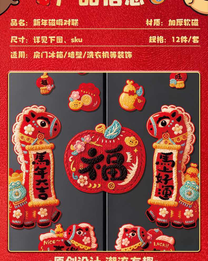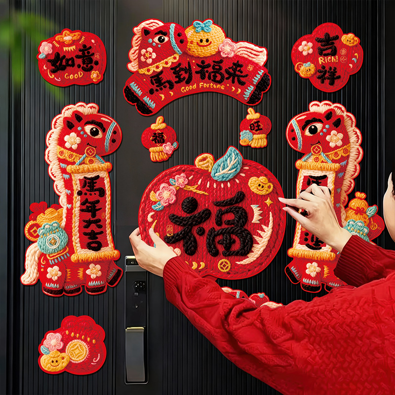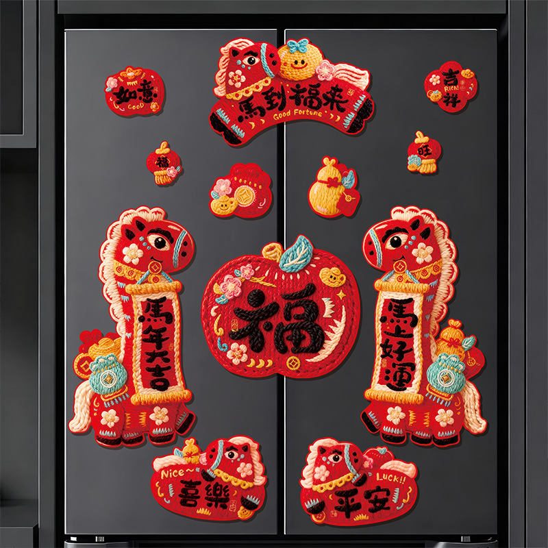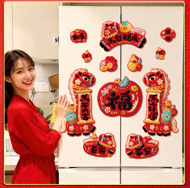 2026新款磁吸对联马年春联福字贴过年春节新年门联入户门装饰布置