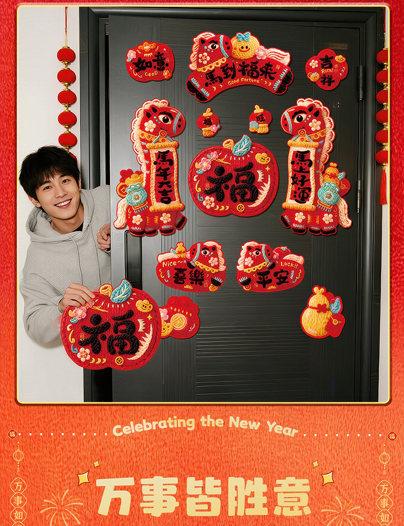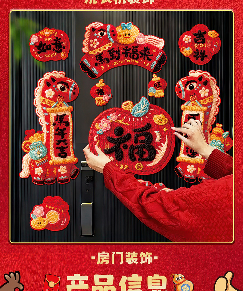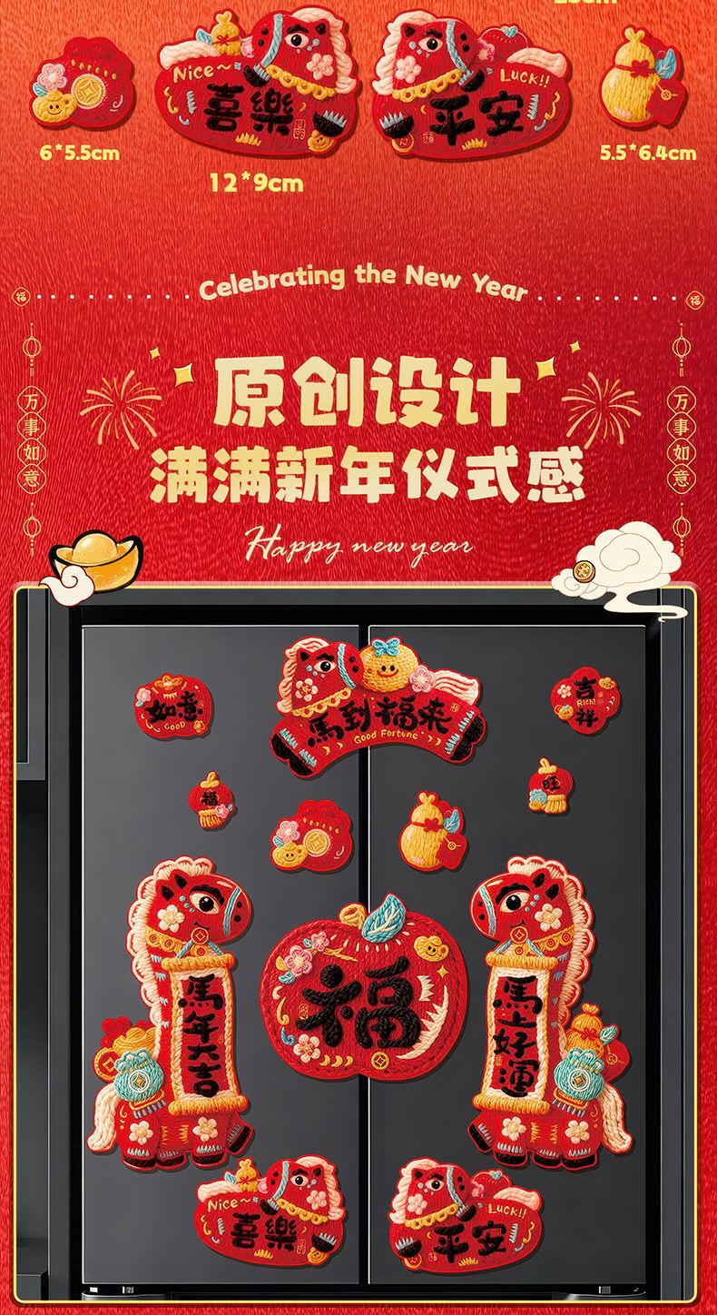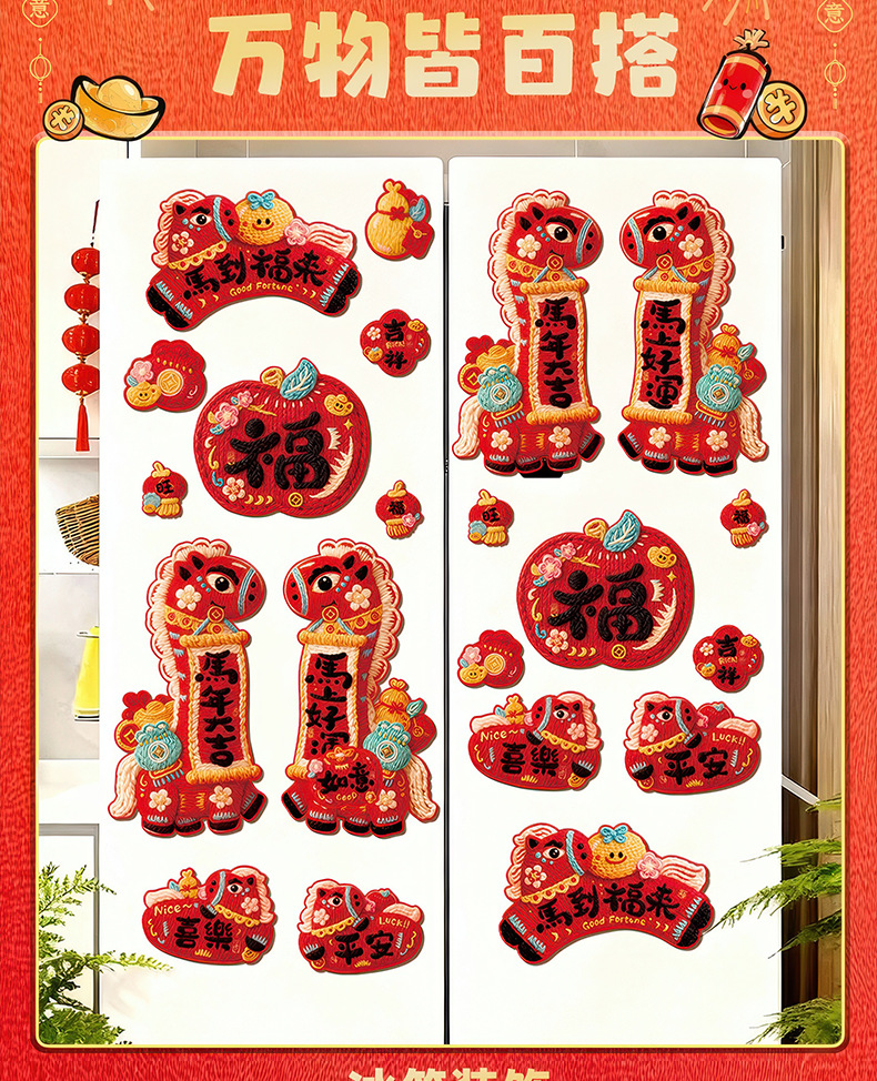 2026新款磁吸对联马年春联福字贴过年春节新年门联入户门装饰布置