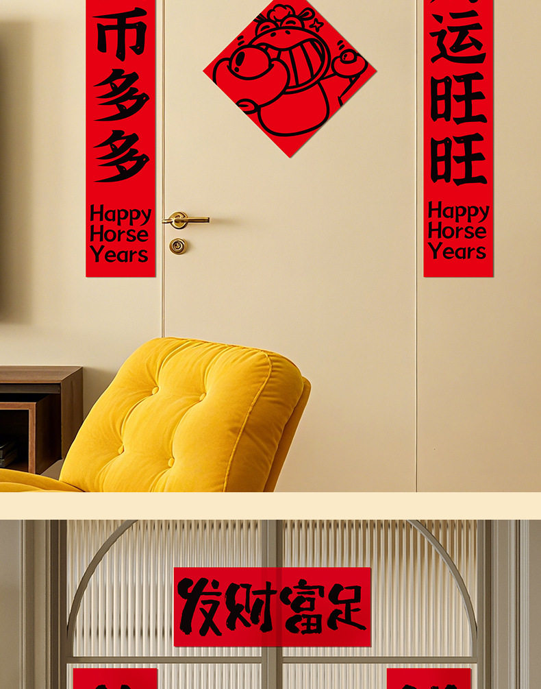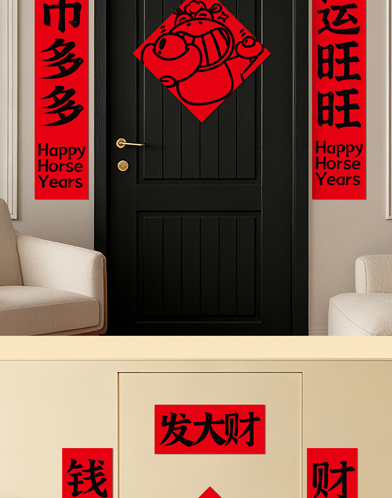 2026年新款马年创意磁吸春联门贴贺年福字对联春节入户门装饰
