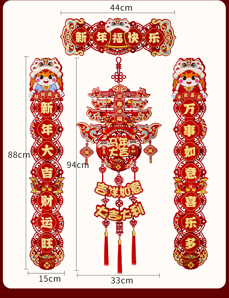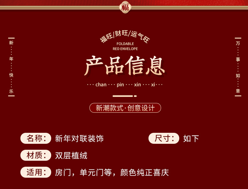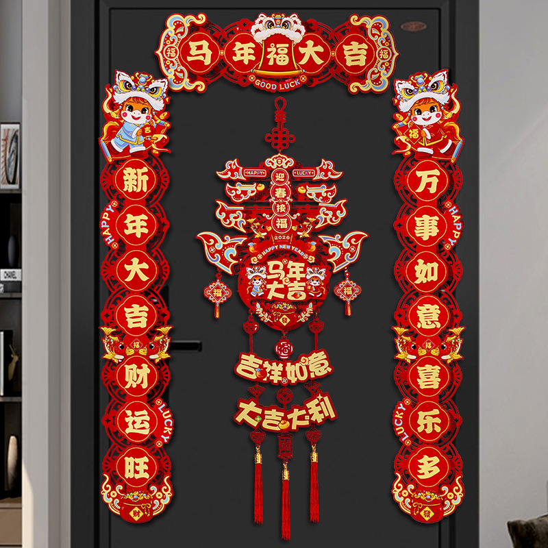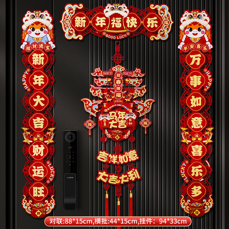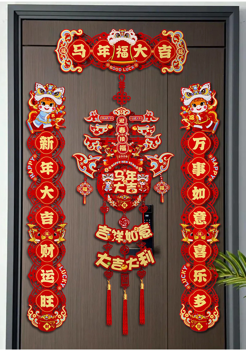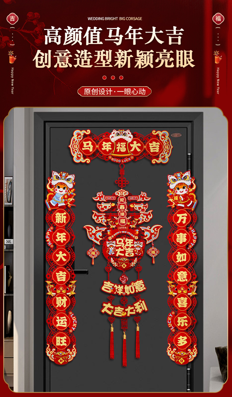 2026新款马年对联过年春节磁吸春联家用新年植绒福字入户门贴装饰