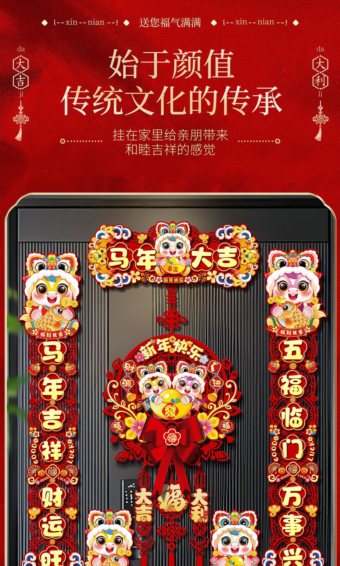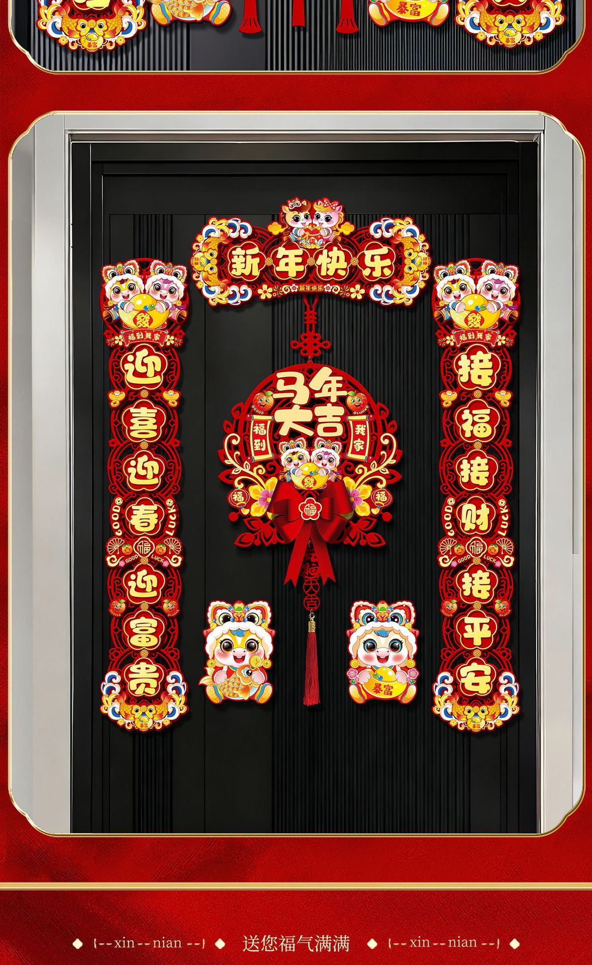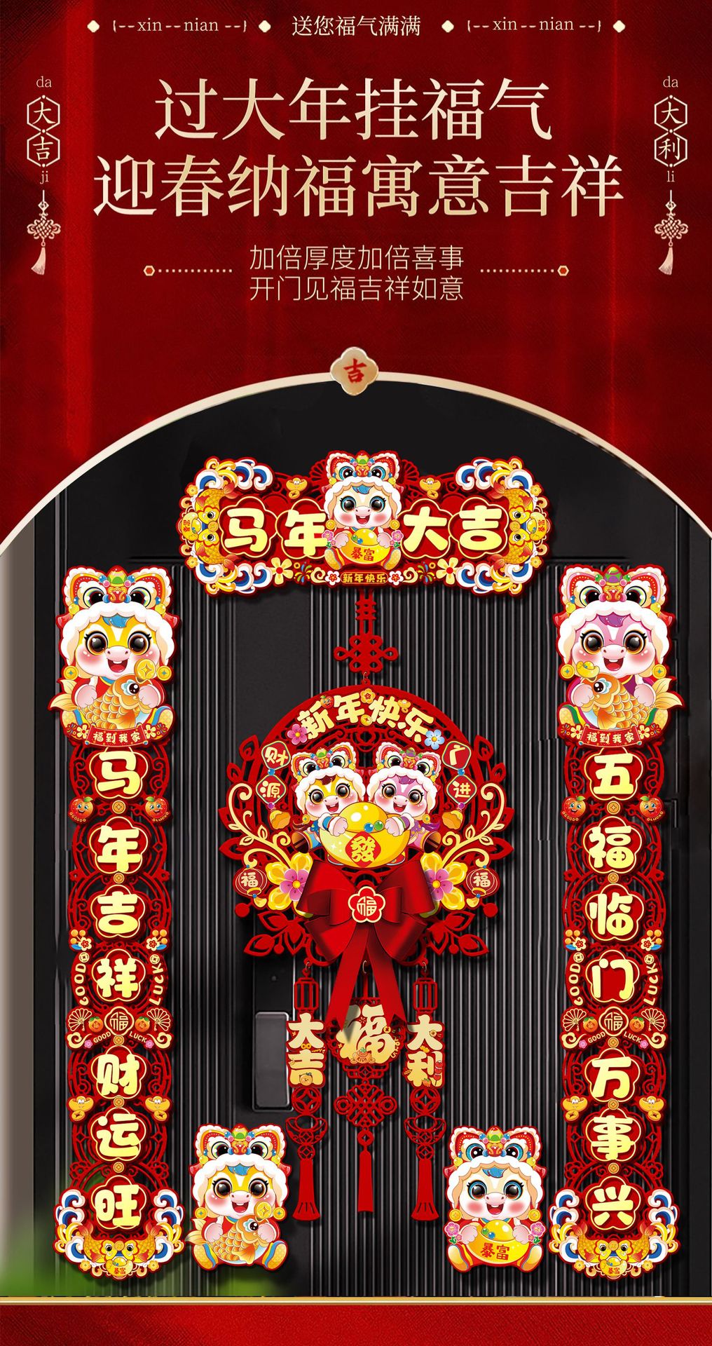 马年新年磁吸对联春联过年春节醒狮福字入户门贴家用氛围布置装饰