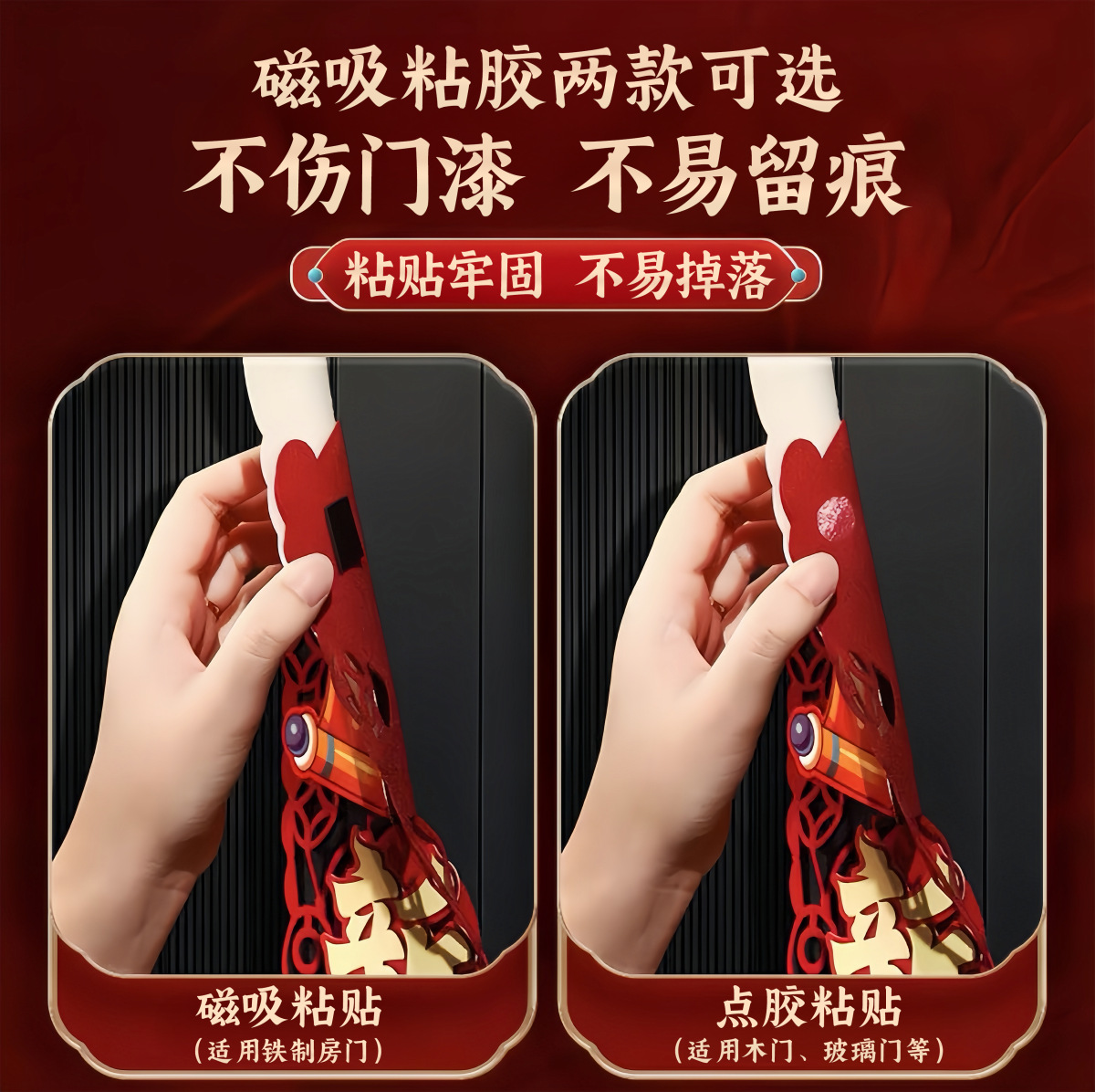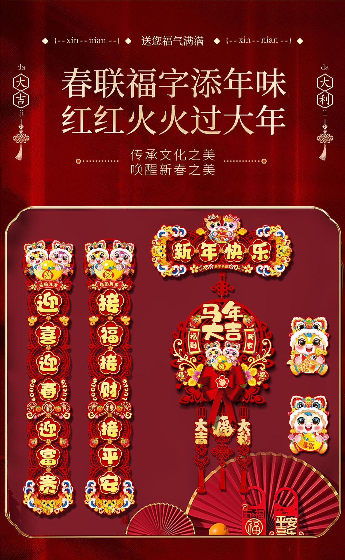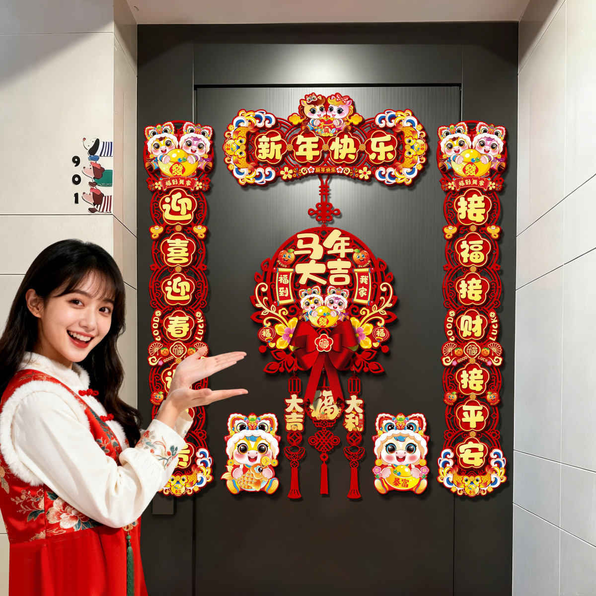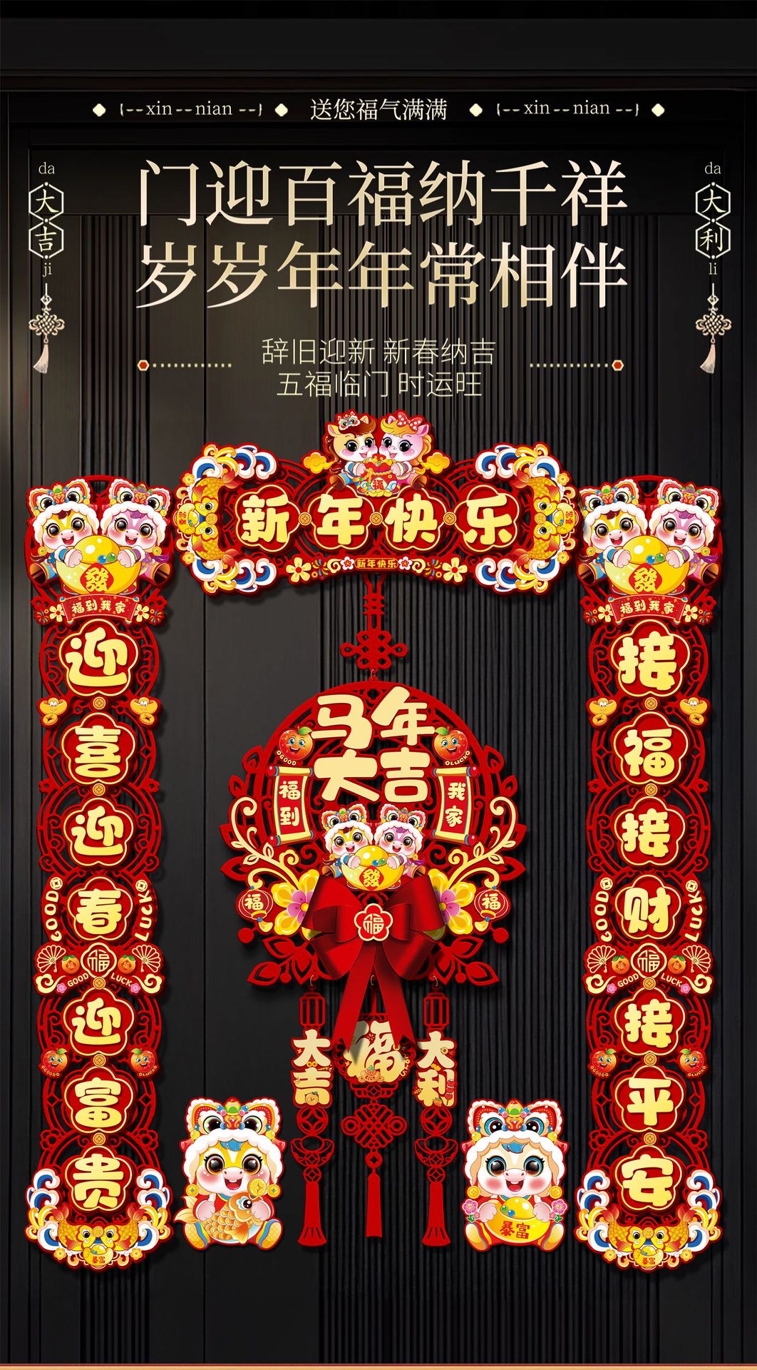 马年新年磁吸对联春联过年春节醒狮福字入户门贴家用氛围布置装饰