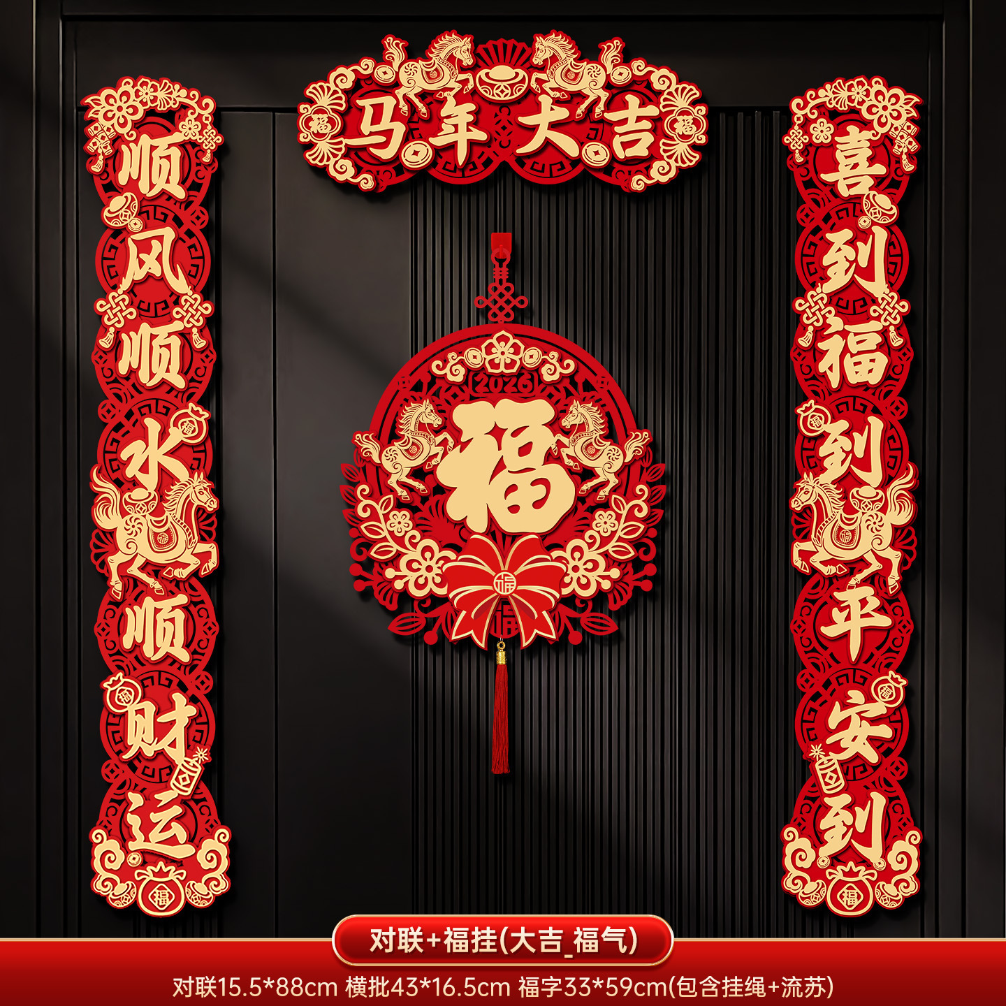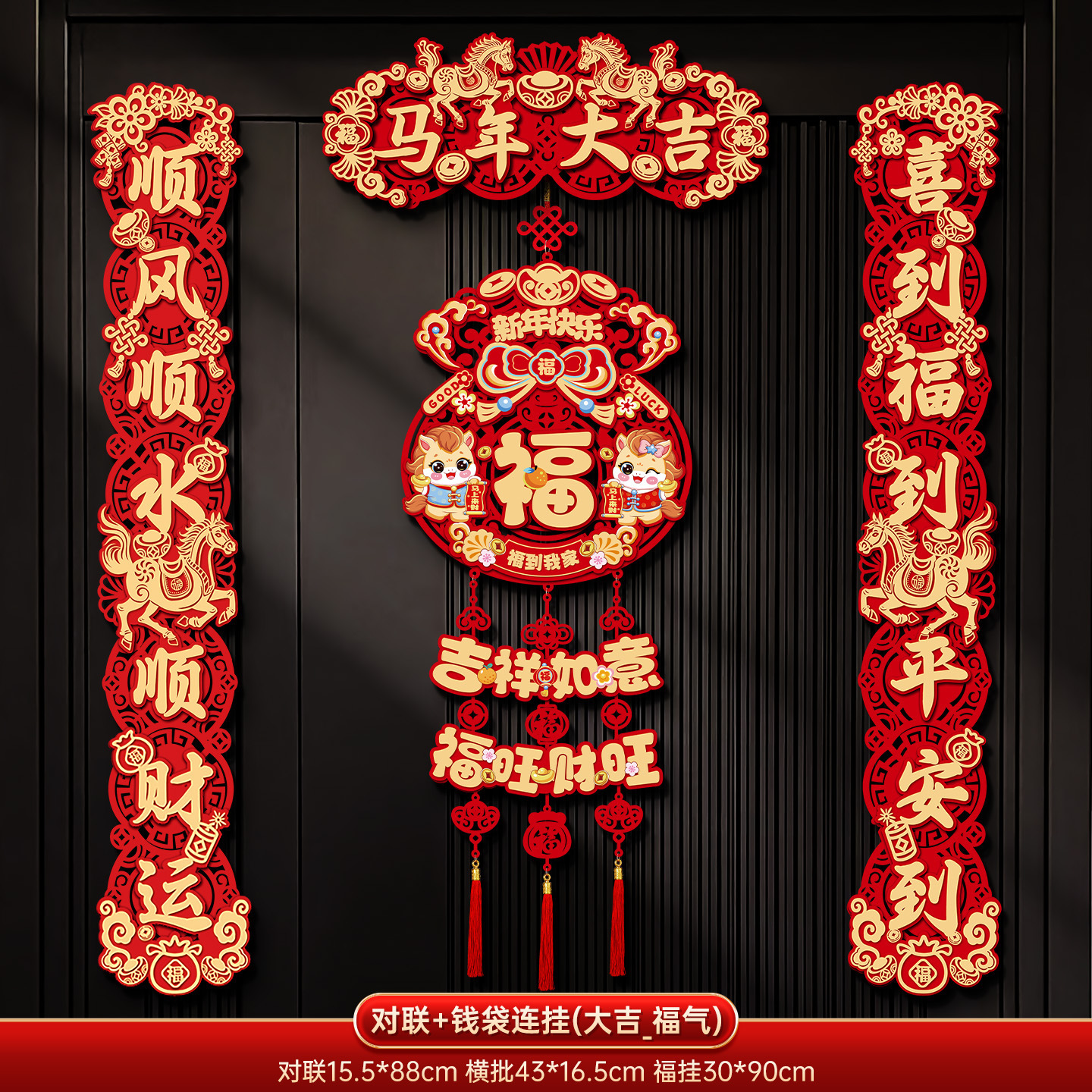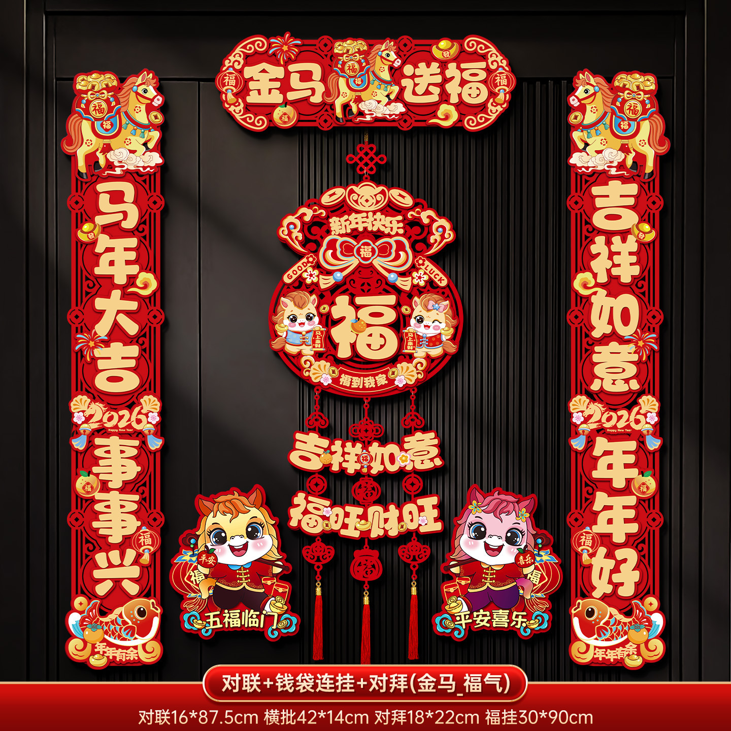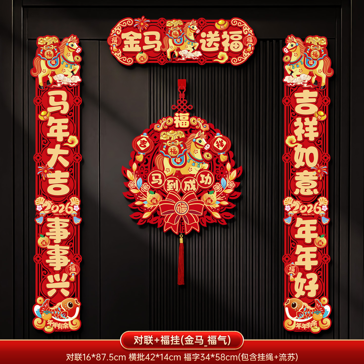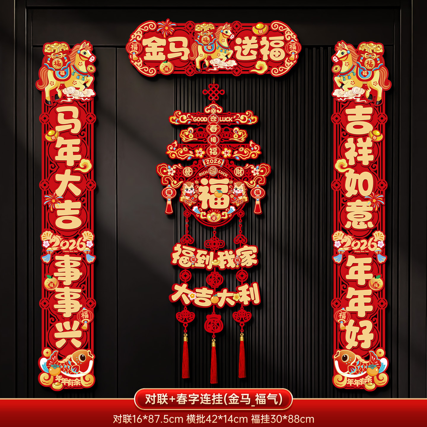 马年春联2026新年磁吸对联春节过年创意家用福字入户门贴新春装饰