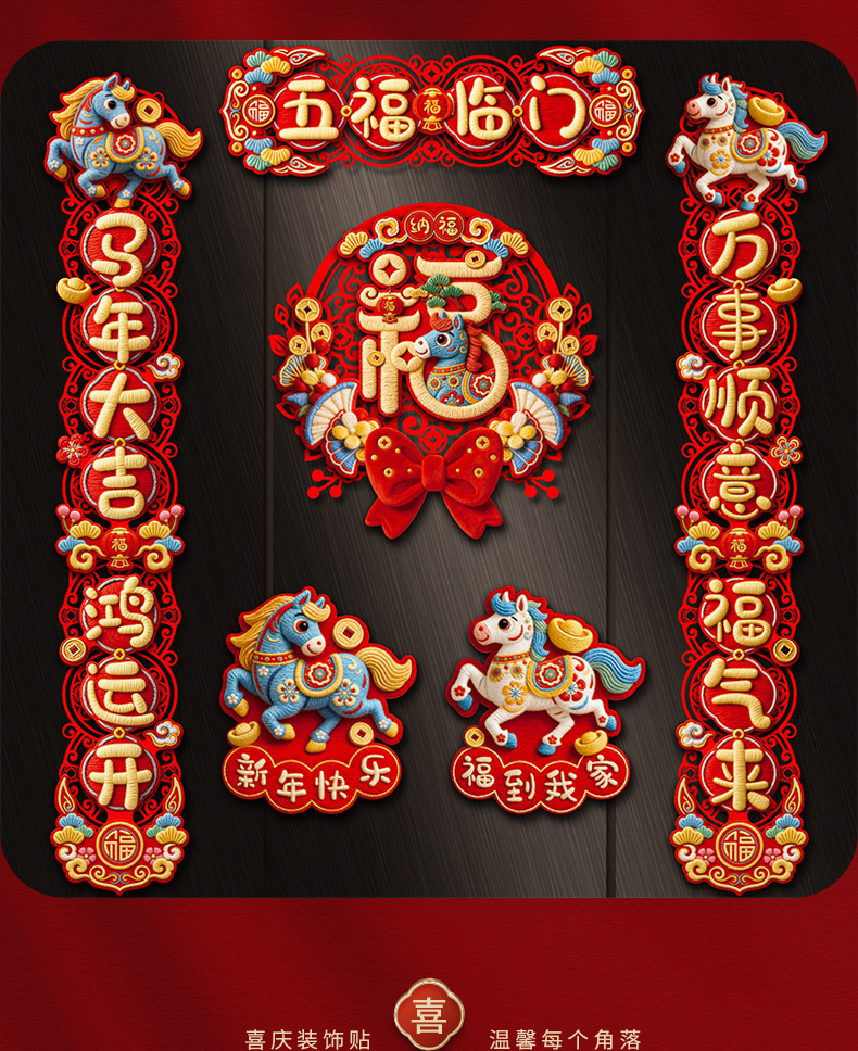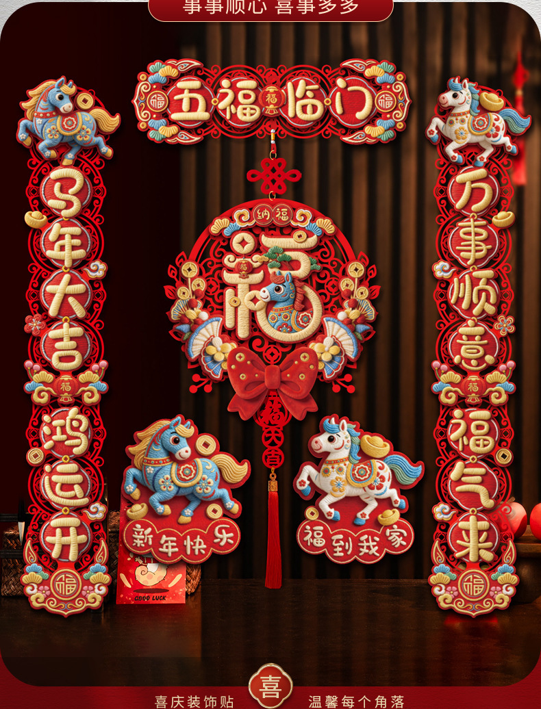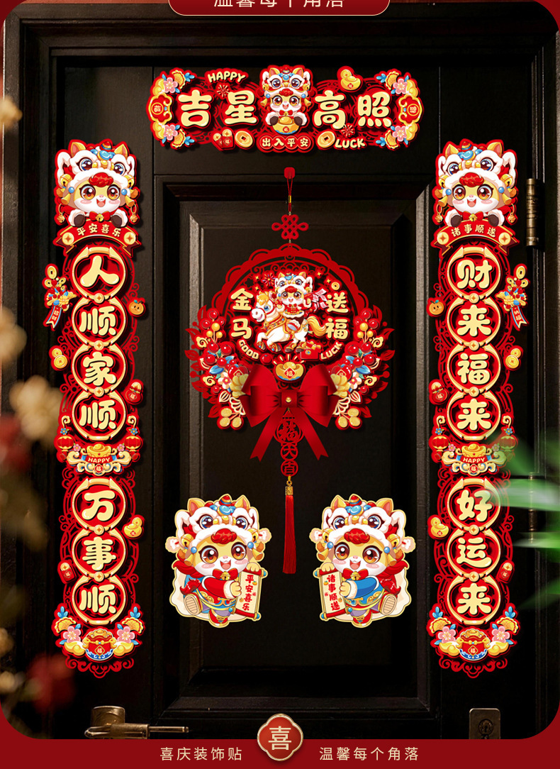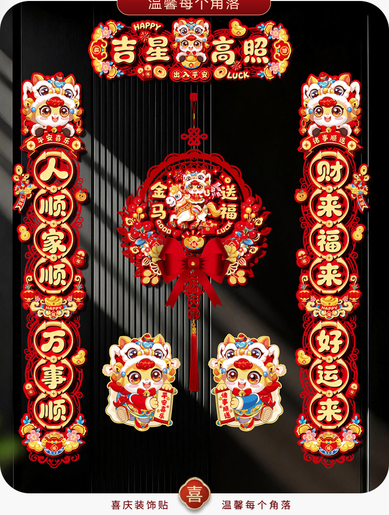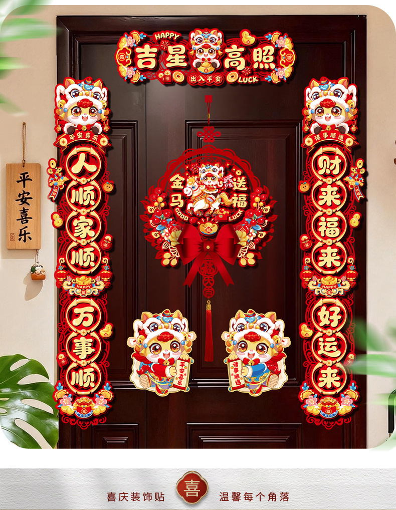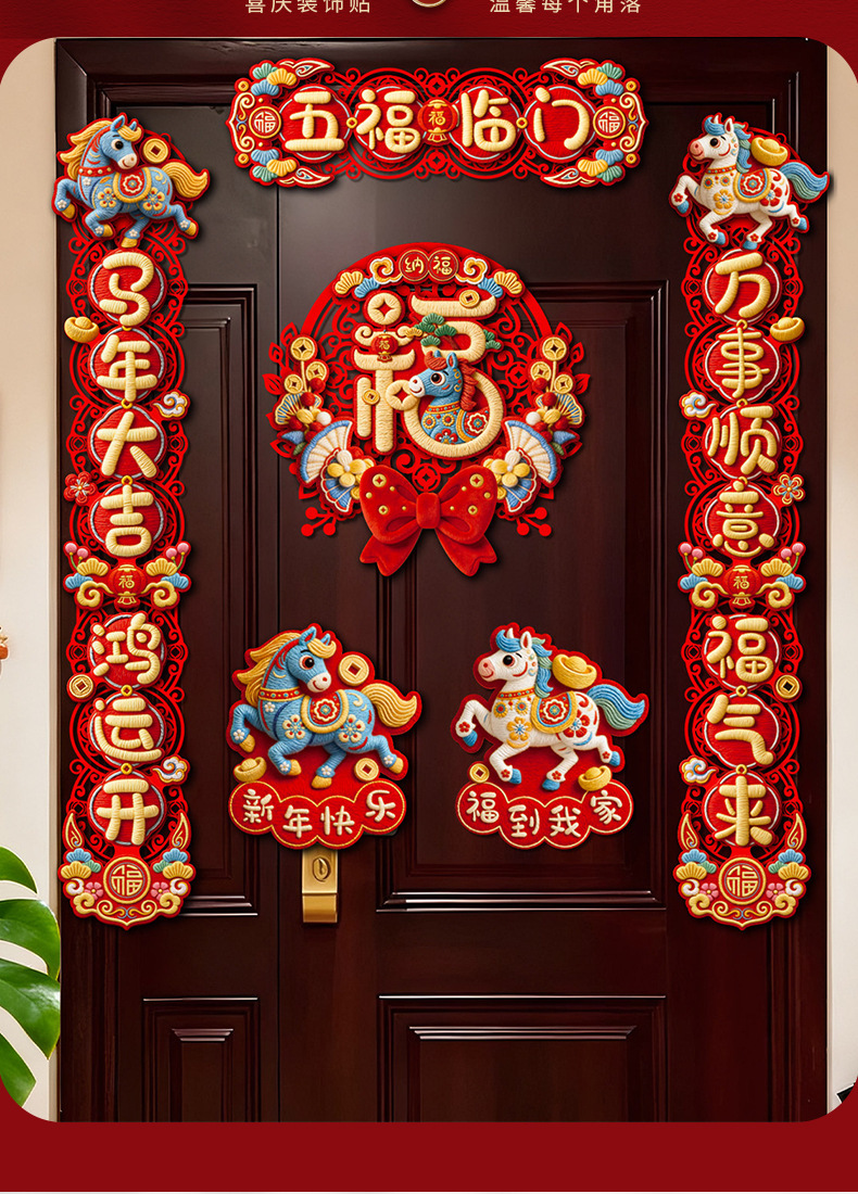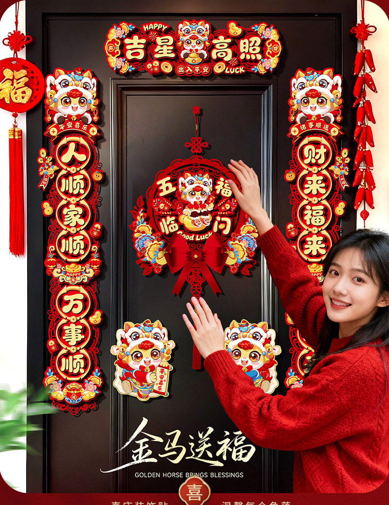 创意摇头马年春联2026过年入户门联新年装饰春节磁吸对联福字挂件