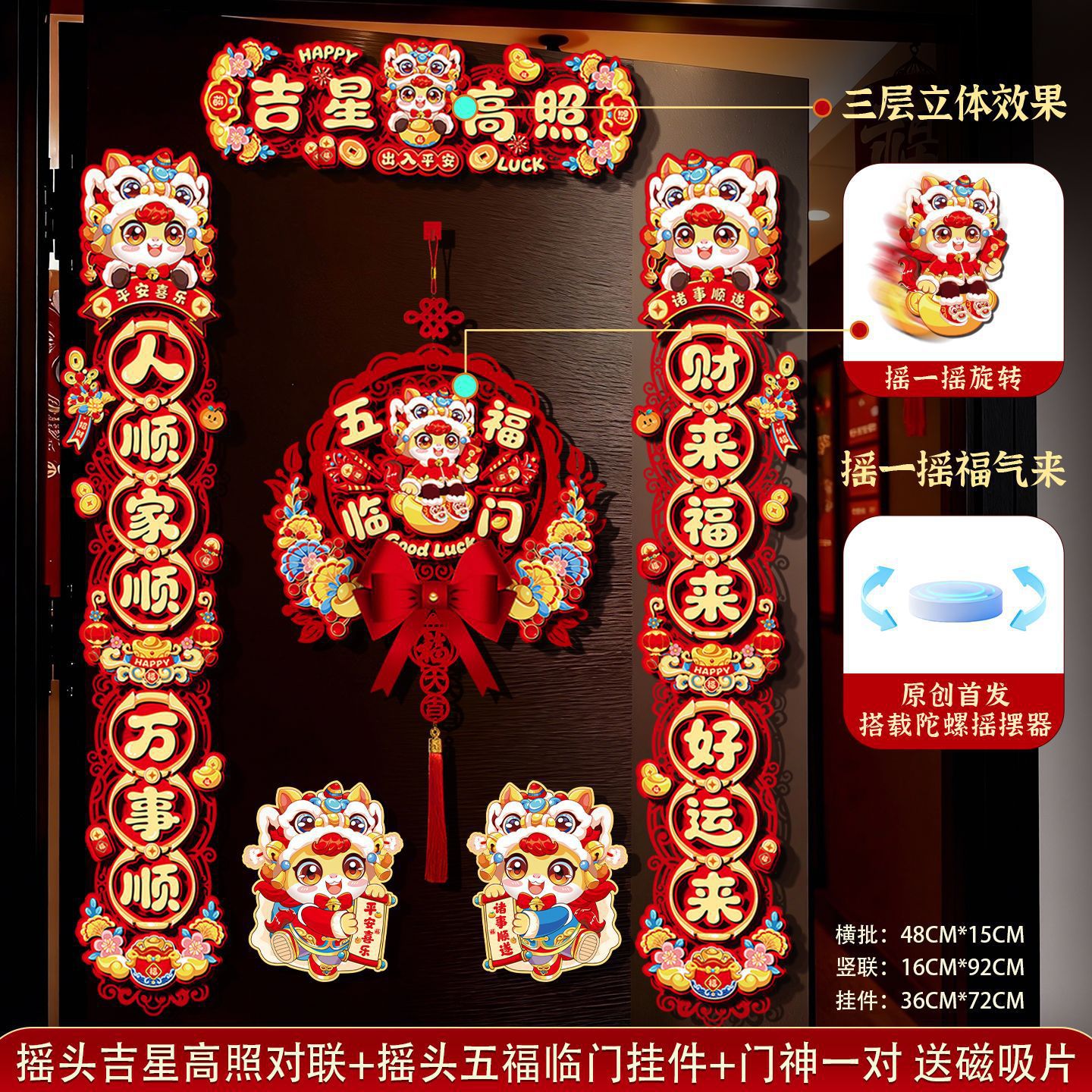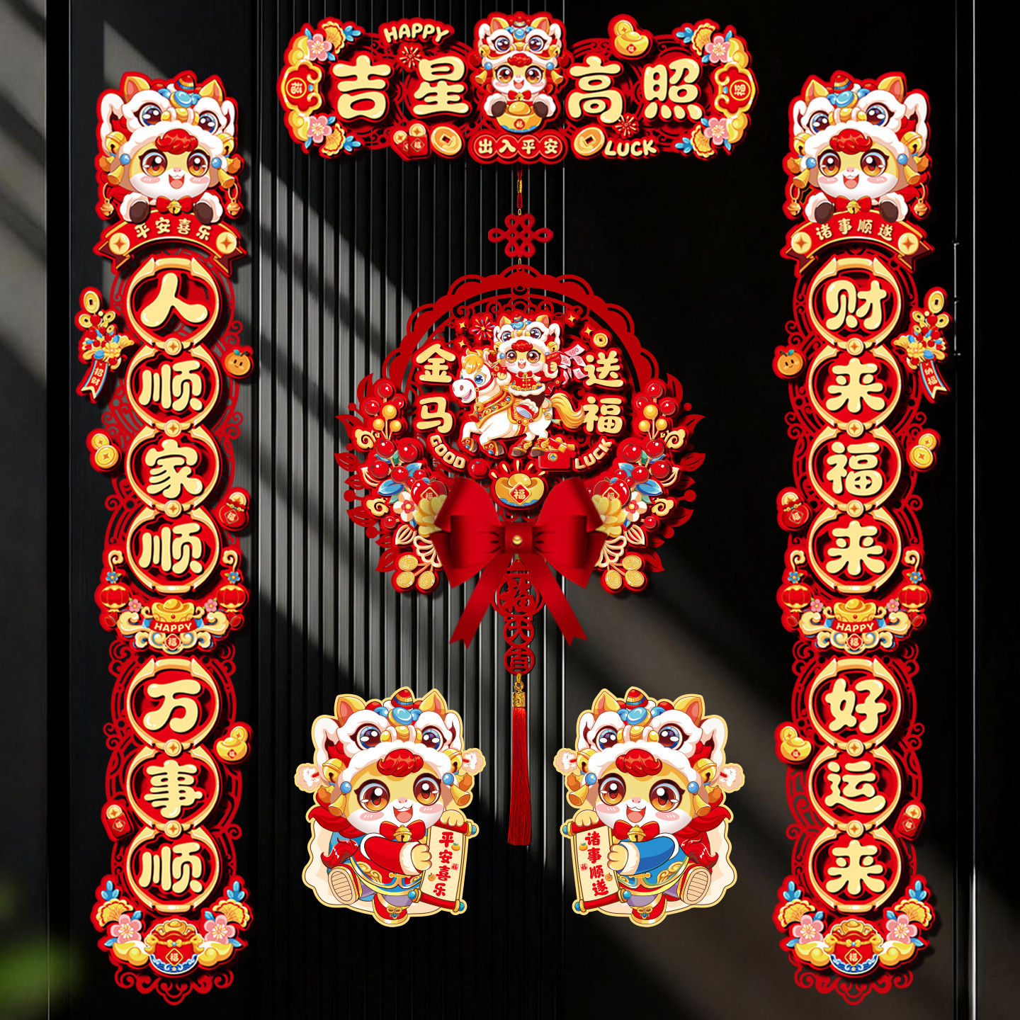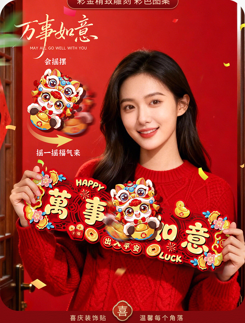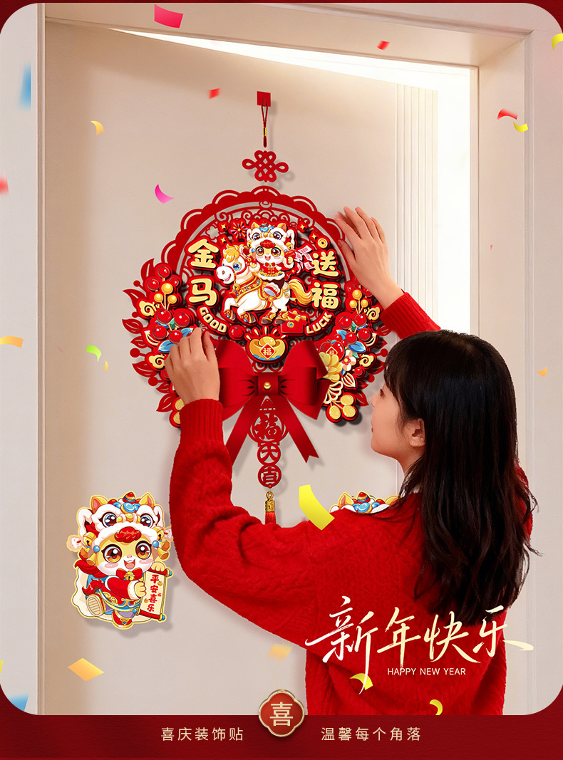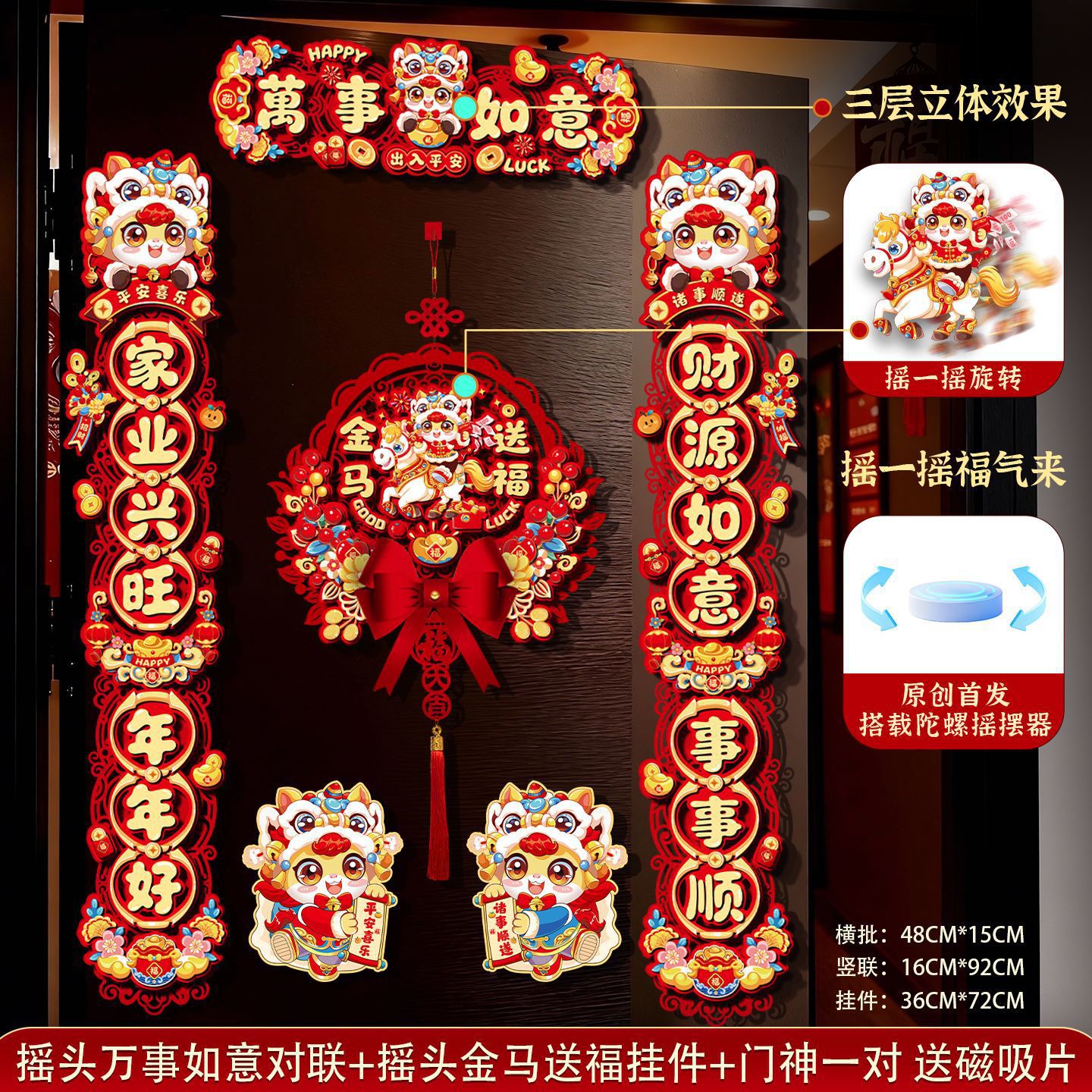 创意摇头马年春联2026过年入户门联新年装饰春节磁吸对联福字挂件