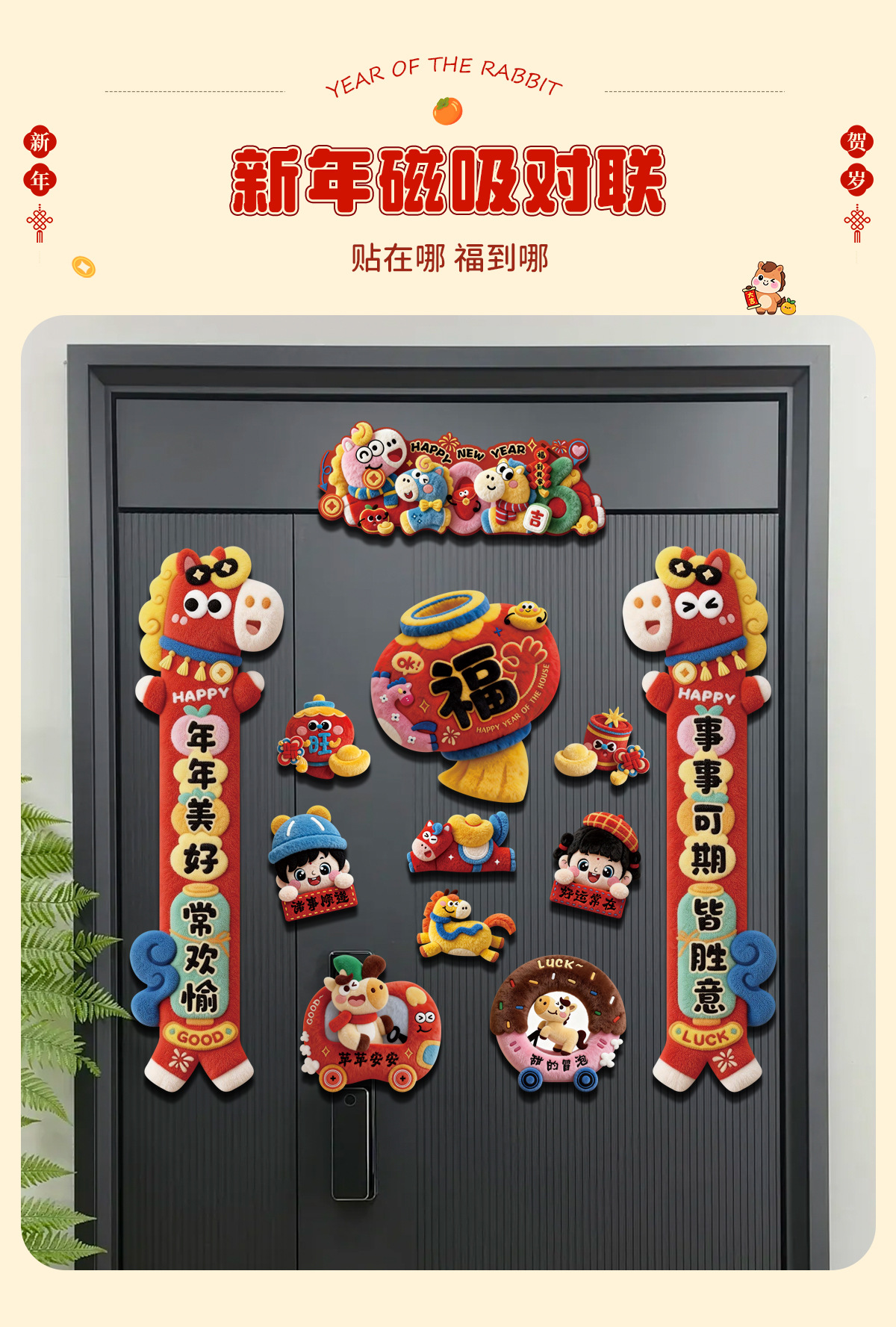 ♔马年磁吸对联2026新款新年布置春联春节过年家用福字入户门贴装