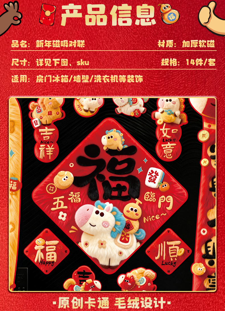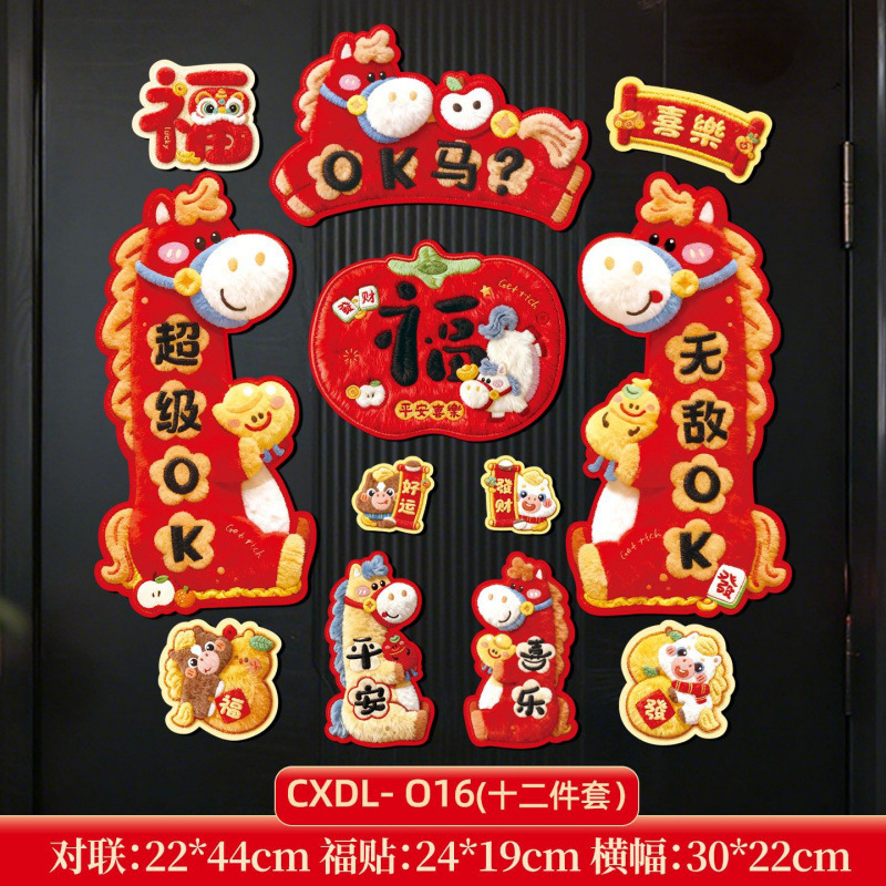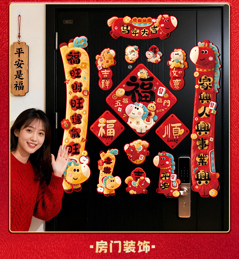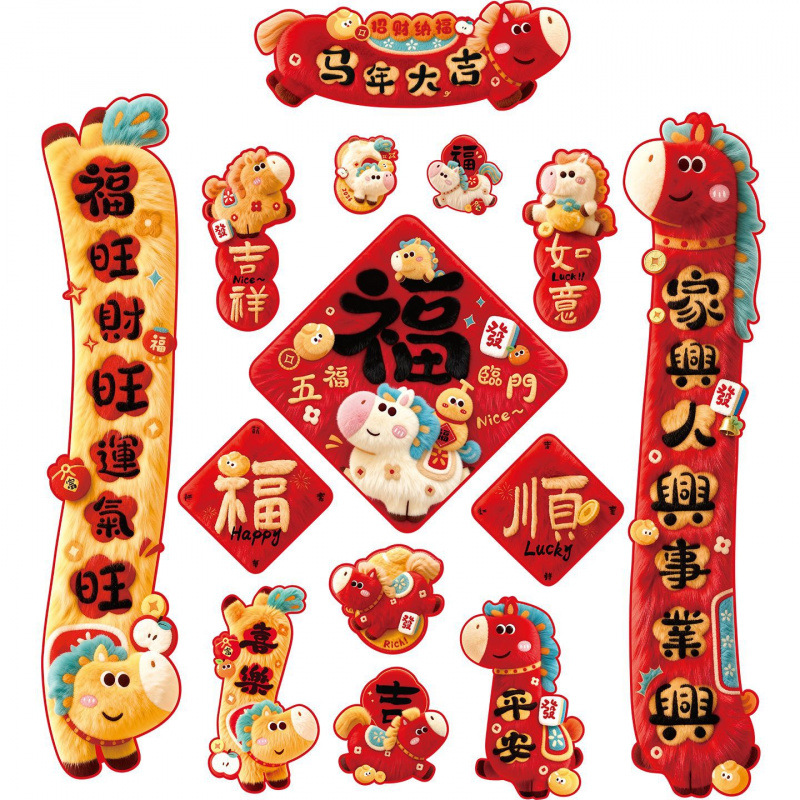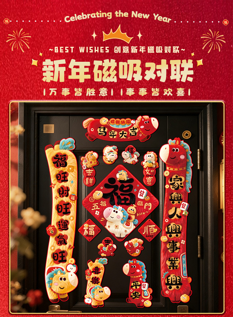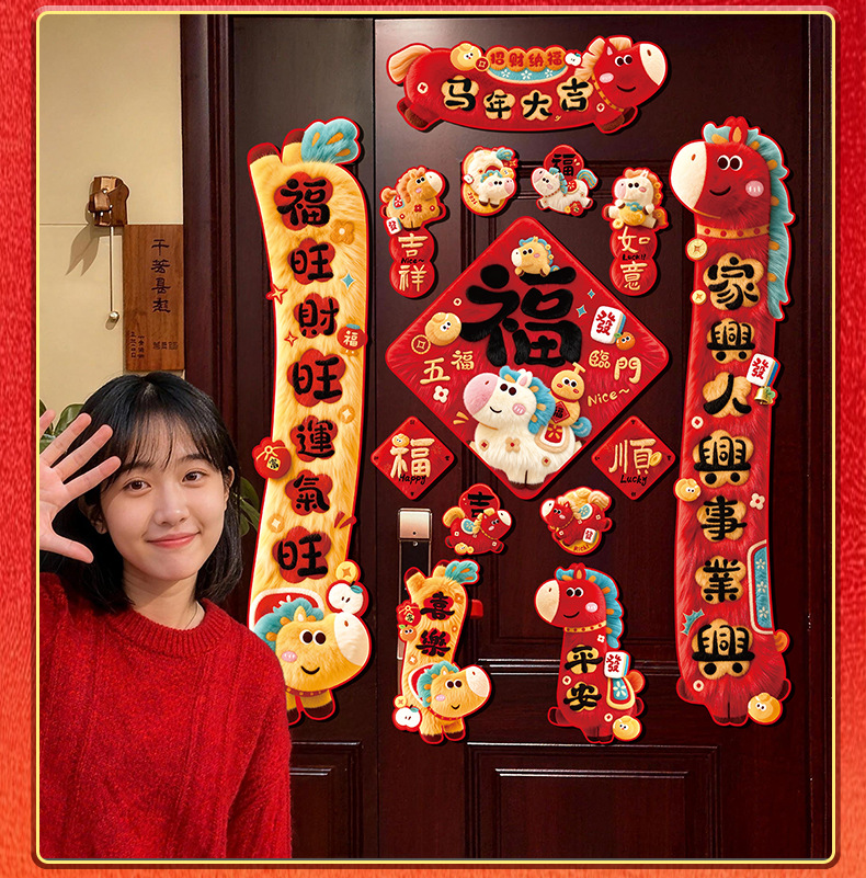 2026马年对联全磁吸春联过年5D毛绒感觉福字入户门贴新年装饰批发