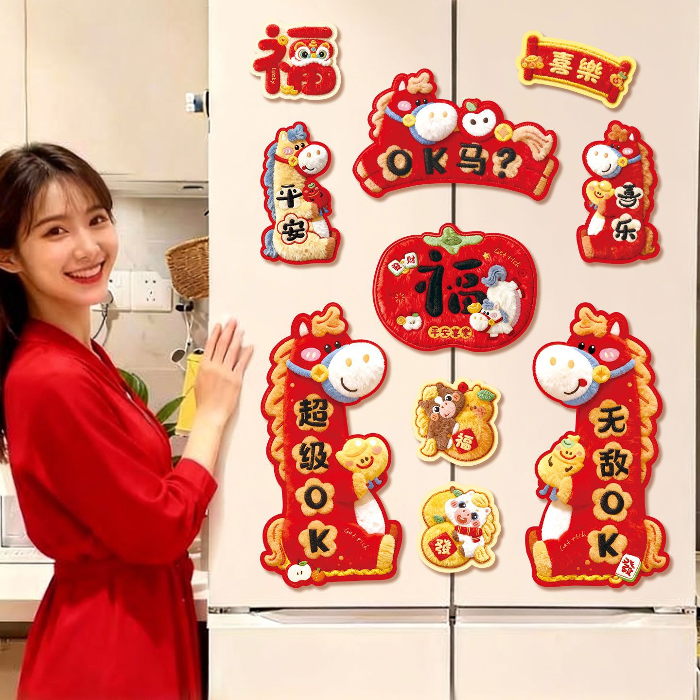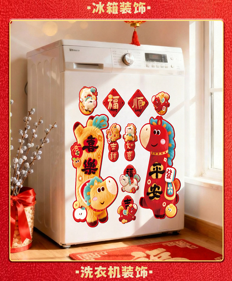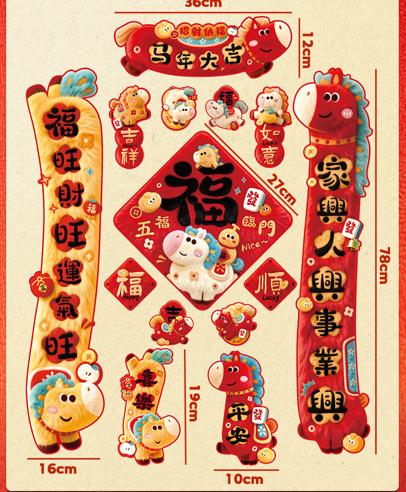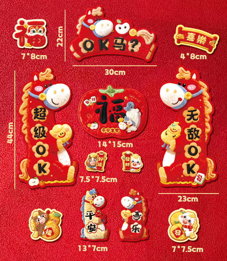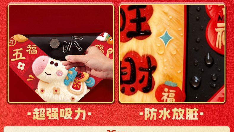 2026马年对联全磁吸春联过年5D毛绒感觉福字入户门贴新年装饰批发