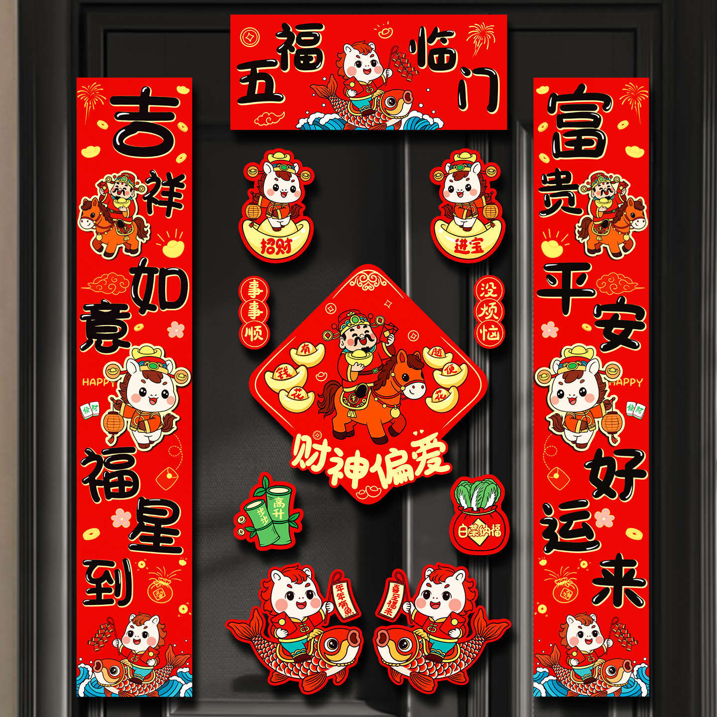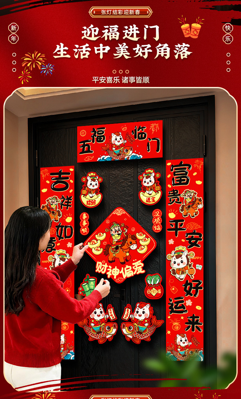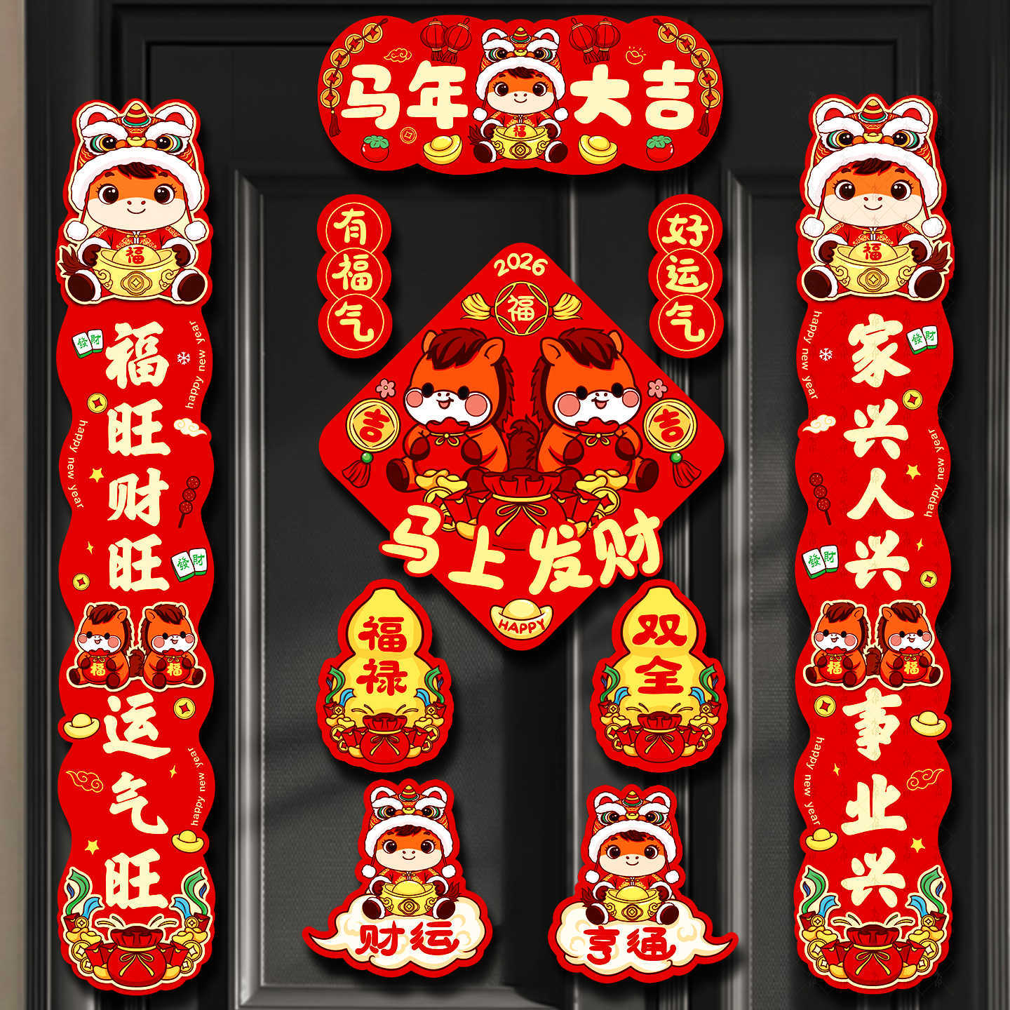 新款2026磁吸马年对联春联家用新年春节过年福字布置入户门贴装饰