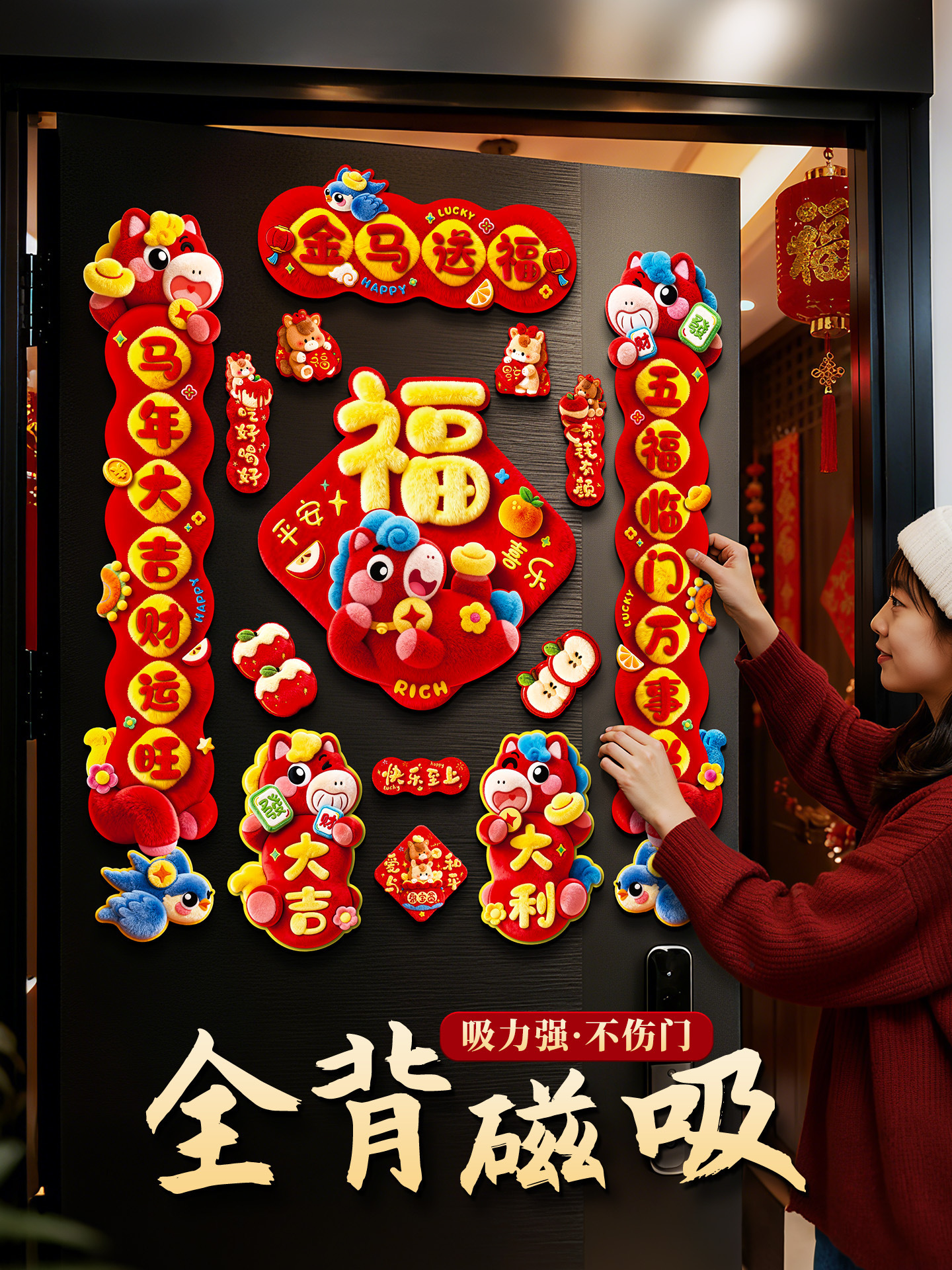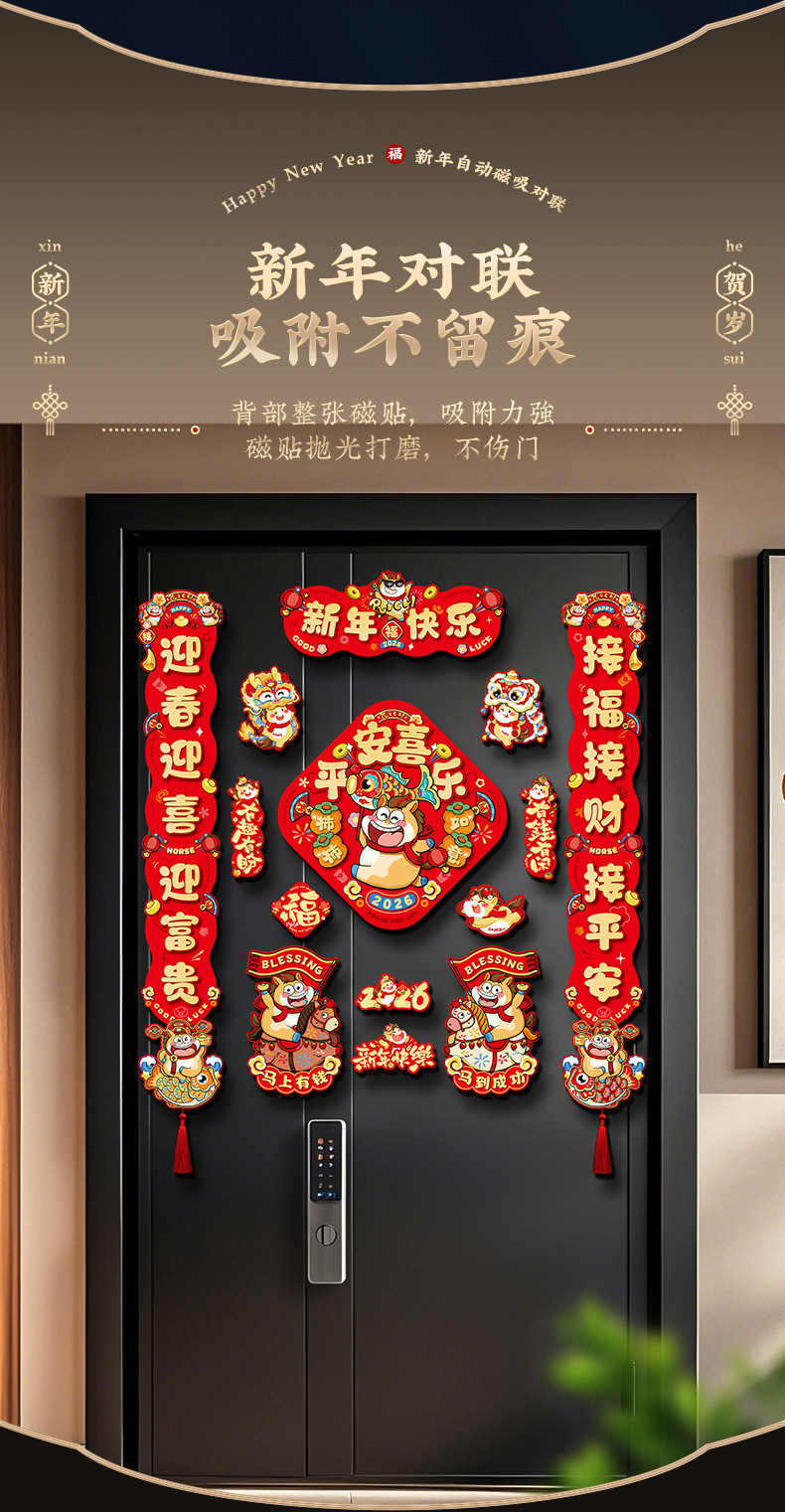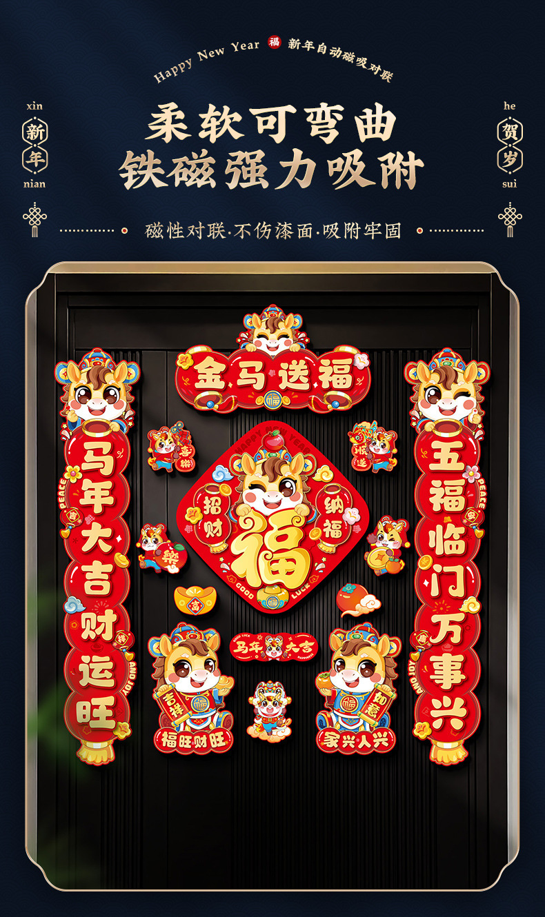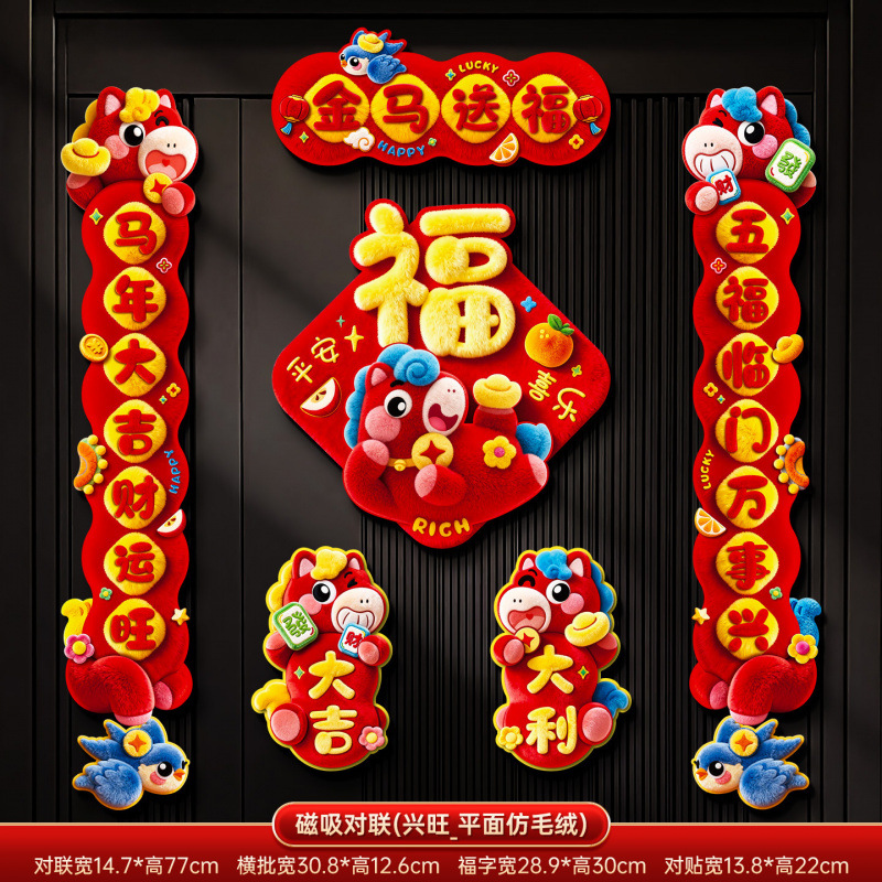 磁吸对联2026新款马年春联批发春节过年福字入户门贴新年布置装饰
