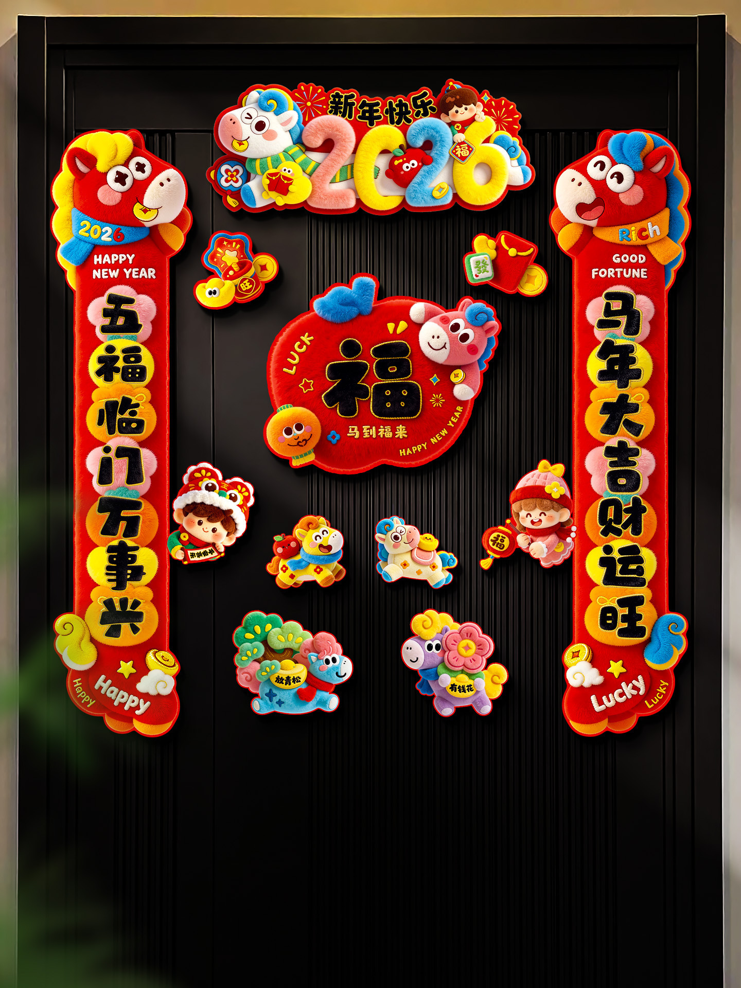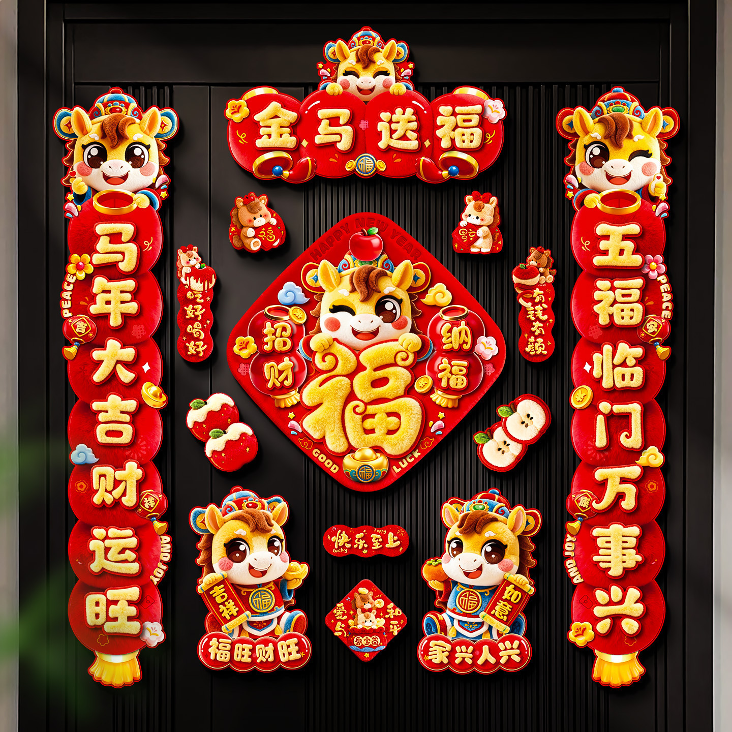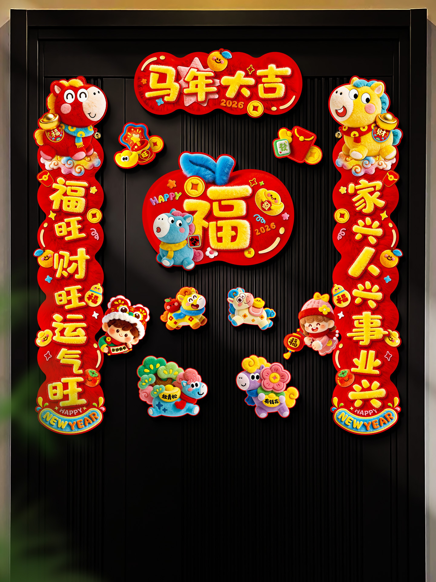 磁吸对联2026新款马年春联批发春节过年福字入户门贴新年布置装饰