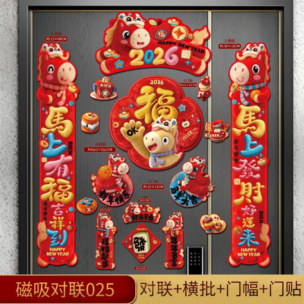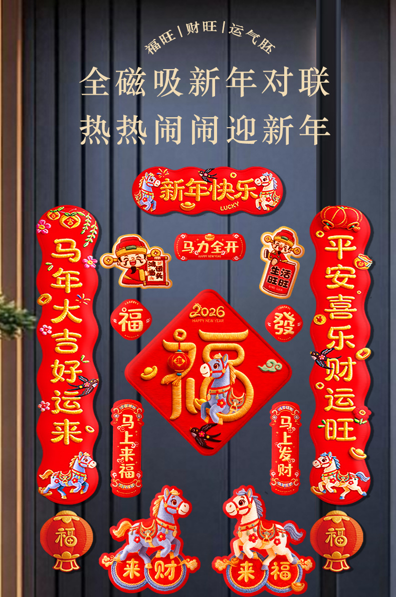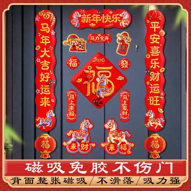 2026新款磁吸创意对联套装马年春联福字贴过年春节新年入户门装饰