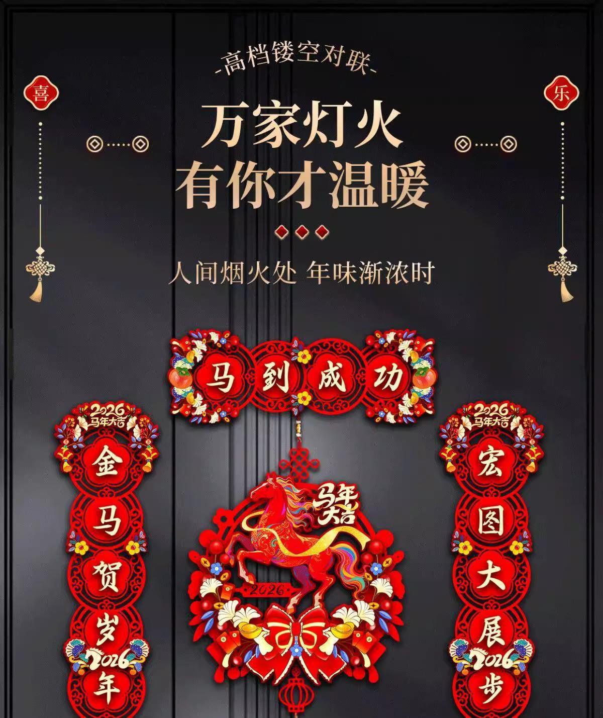 【马年磁吸对联】2026新款马年春节对联福字春联入户门装饰过年货