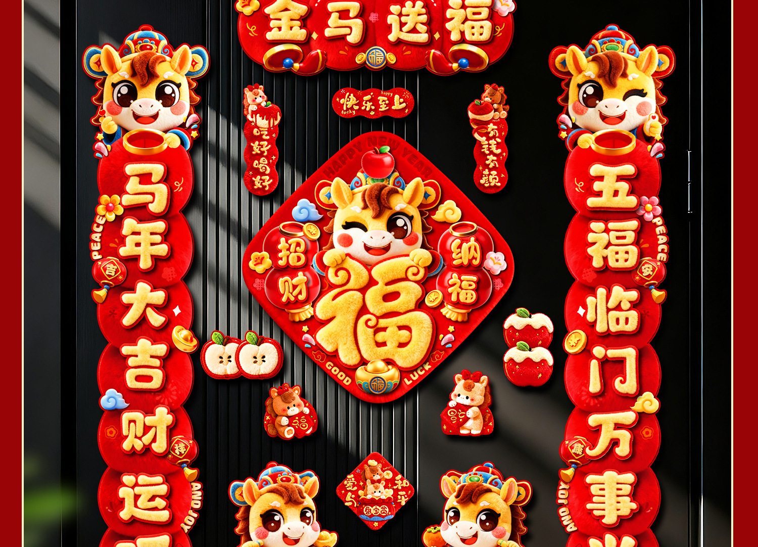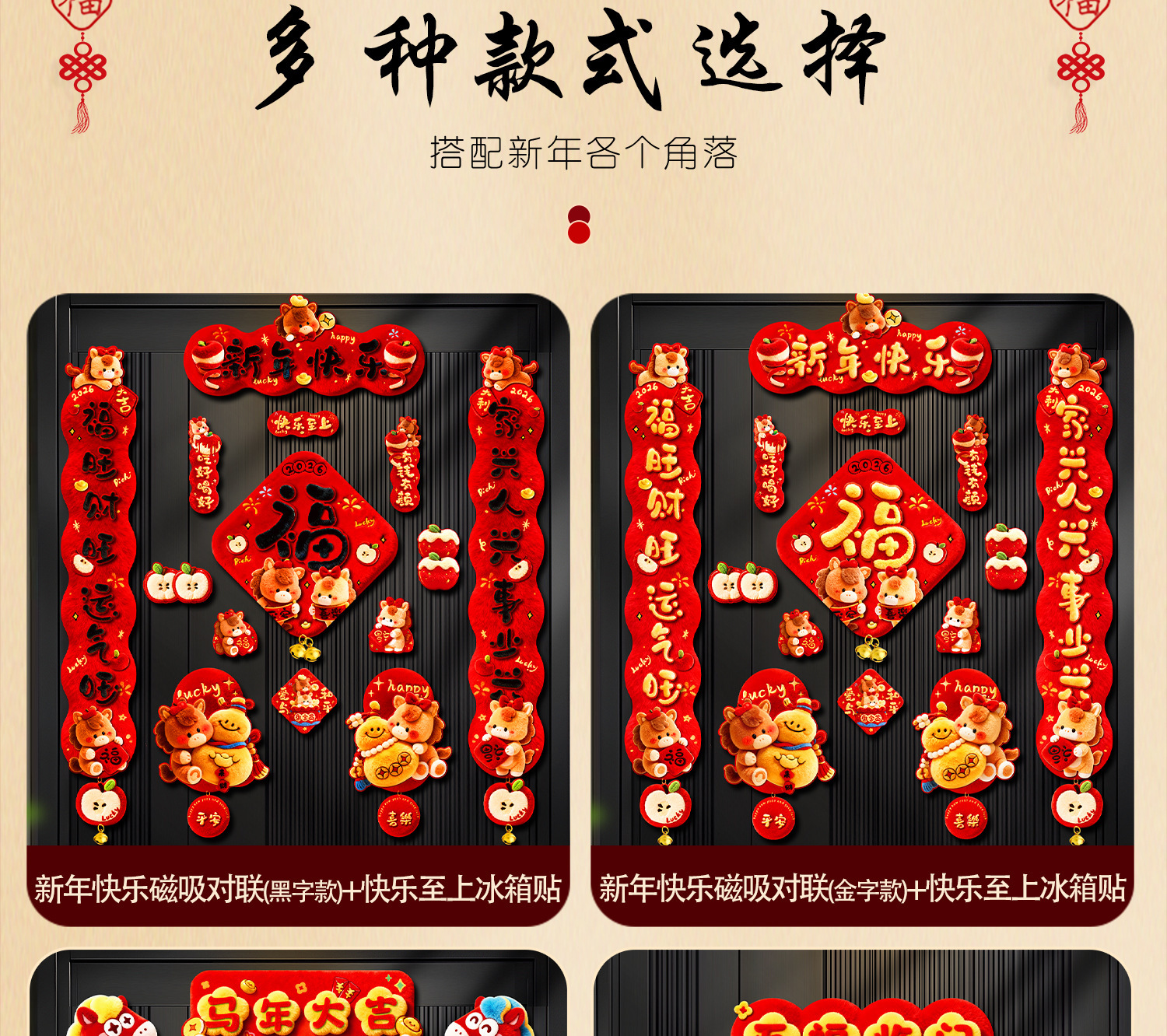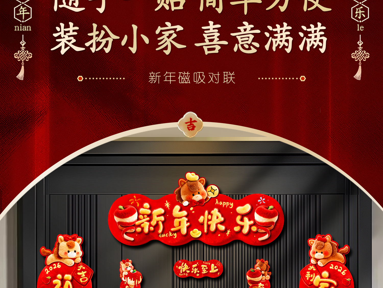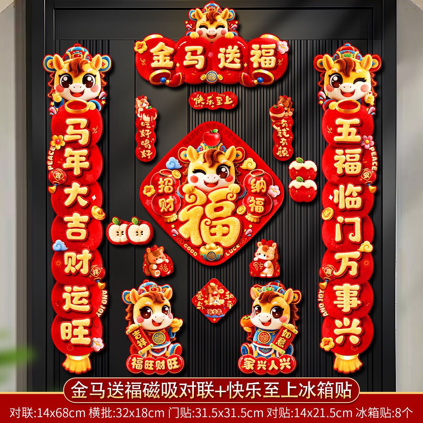 2026新款马年磁吸对联春节过年福字入户门贴装饰批货新年布置春联