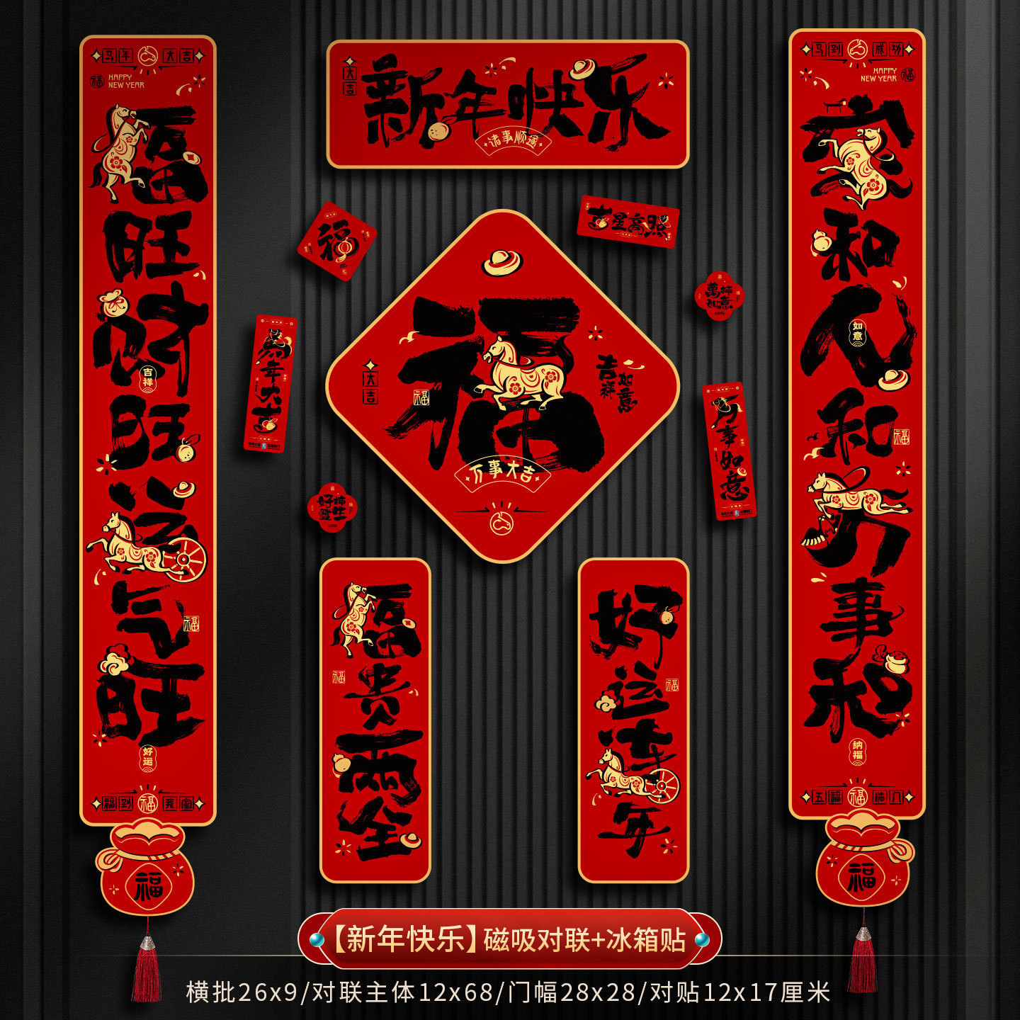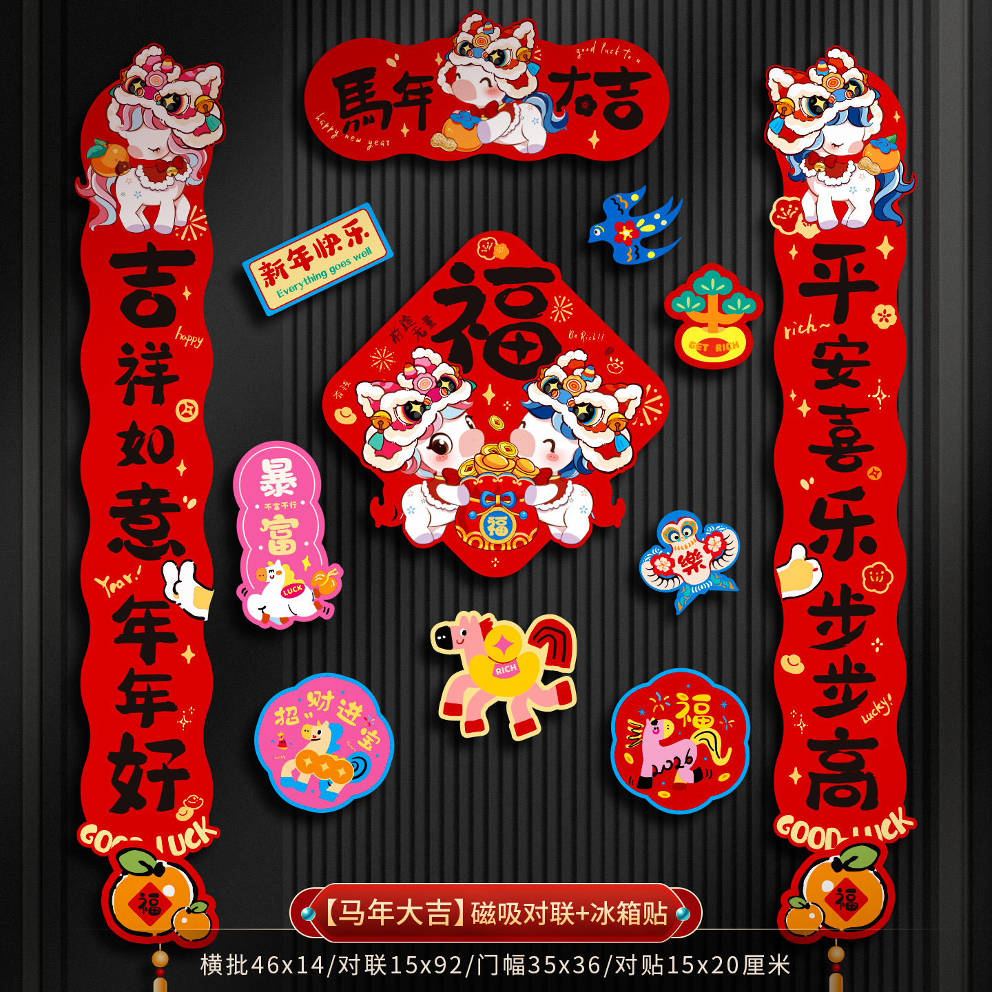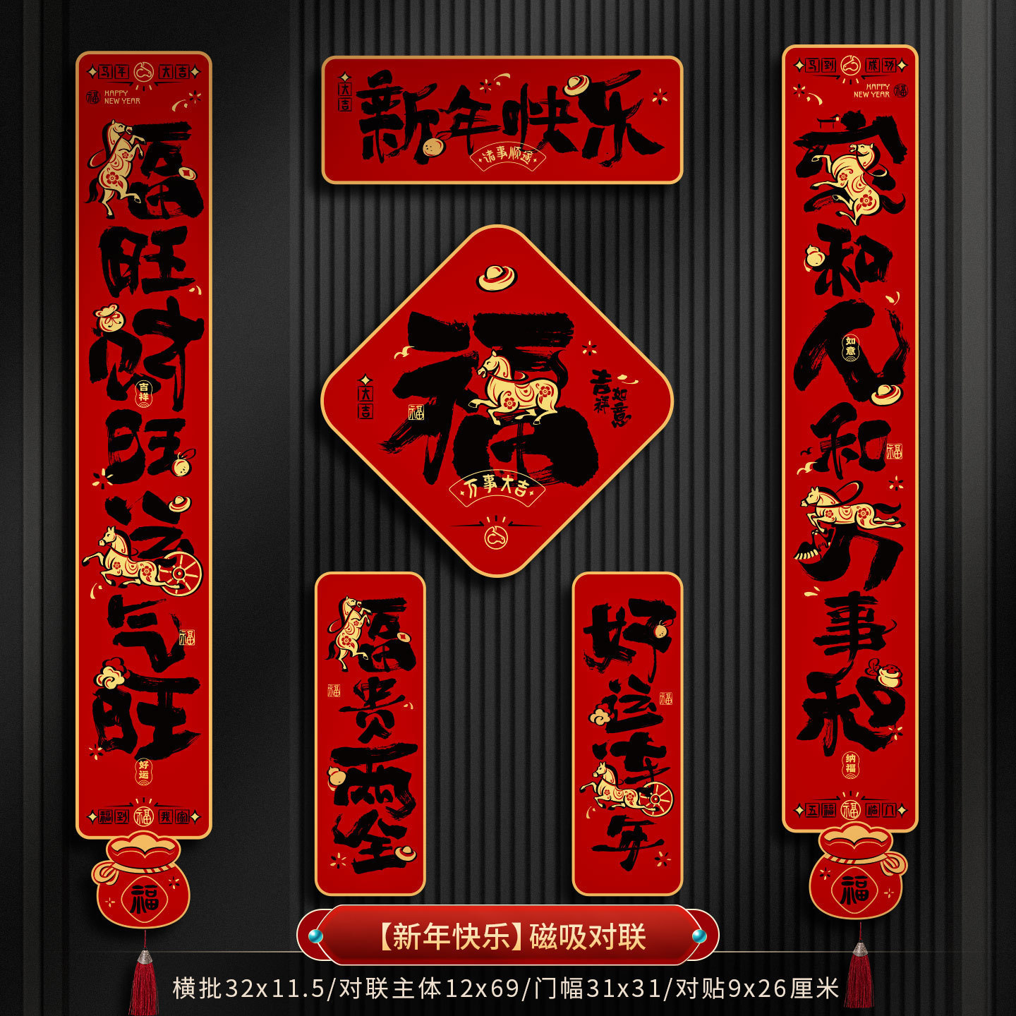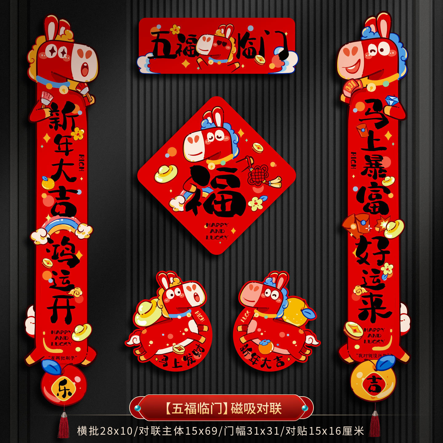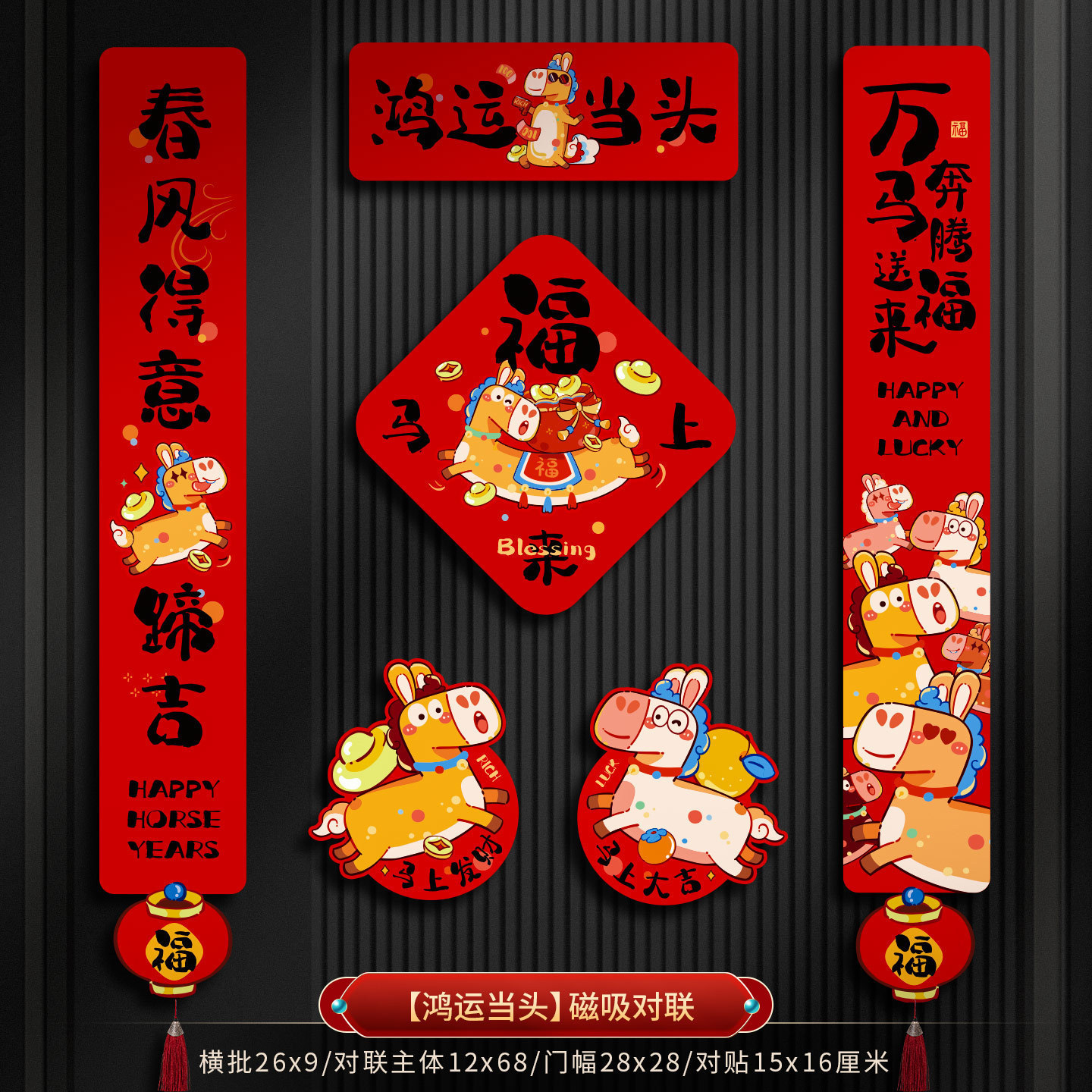 磁吸对联马年过新年入户门自吸免胶粘对联防盗门铁门磁吸春联
