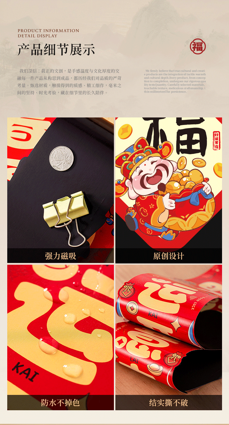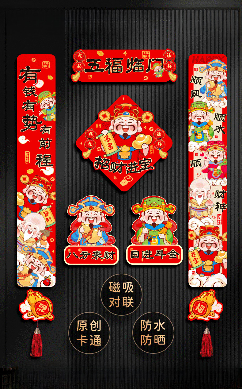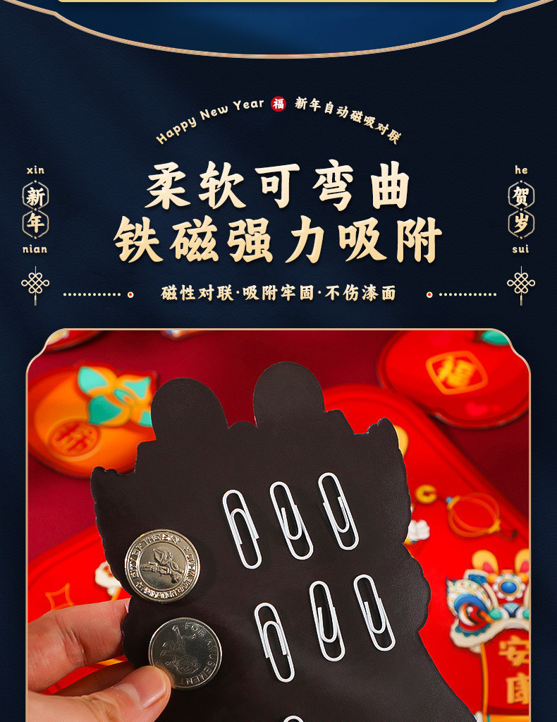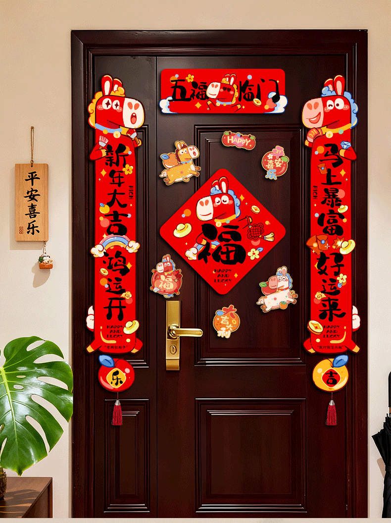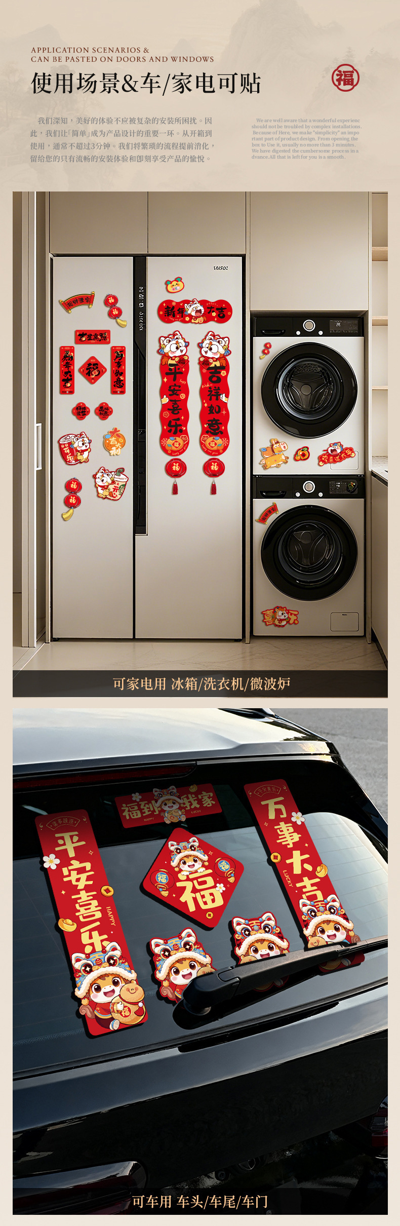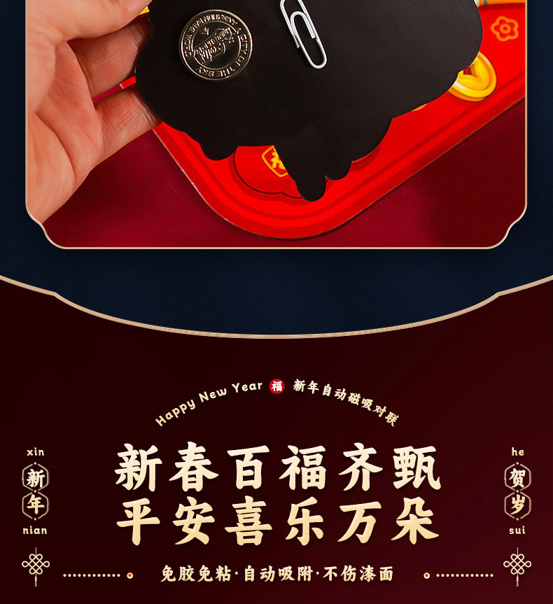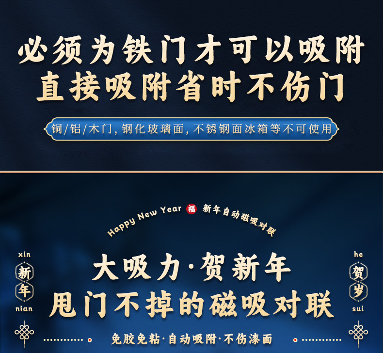 磁吸对联马年过新年入户门自吸免胶粘对联防盗门铁门磁吸春联