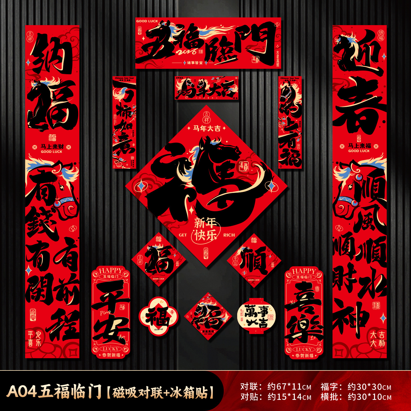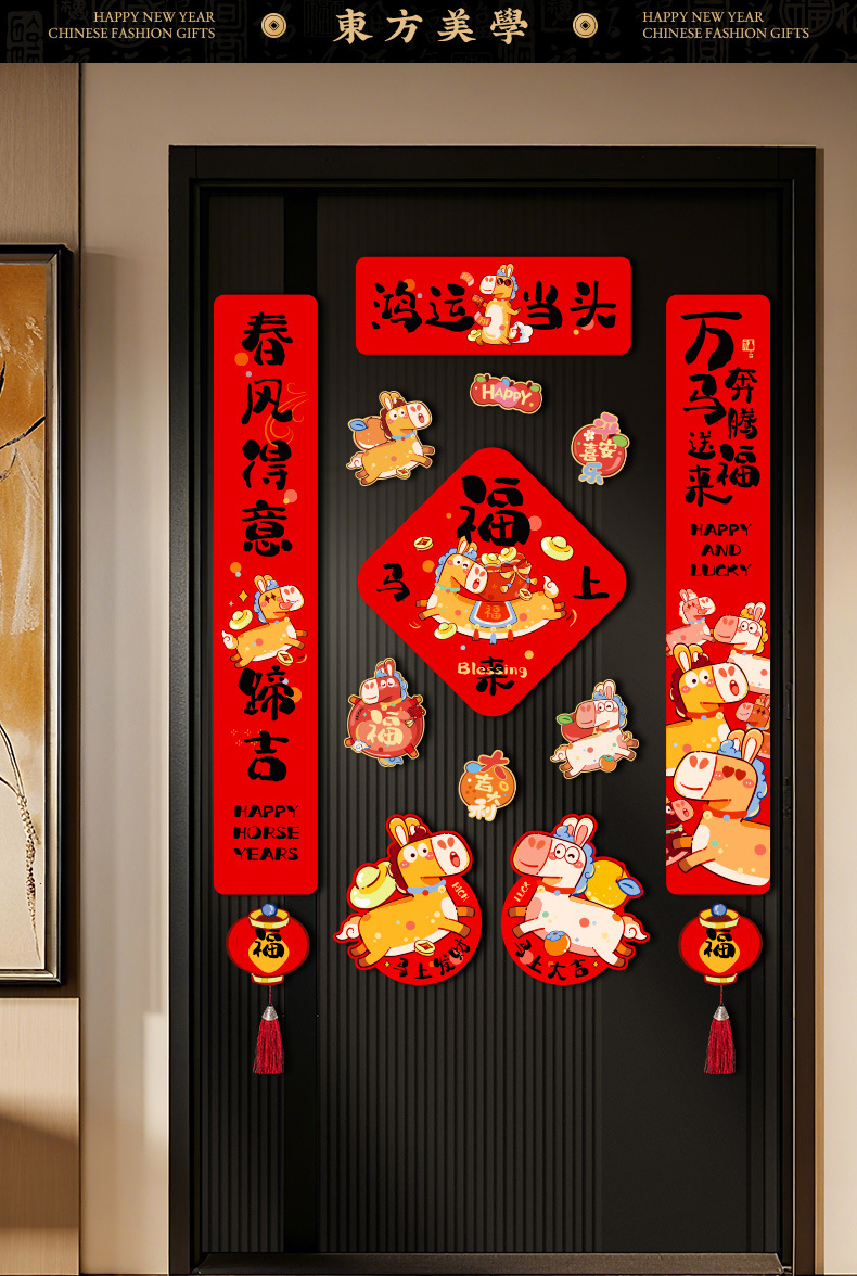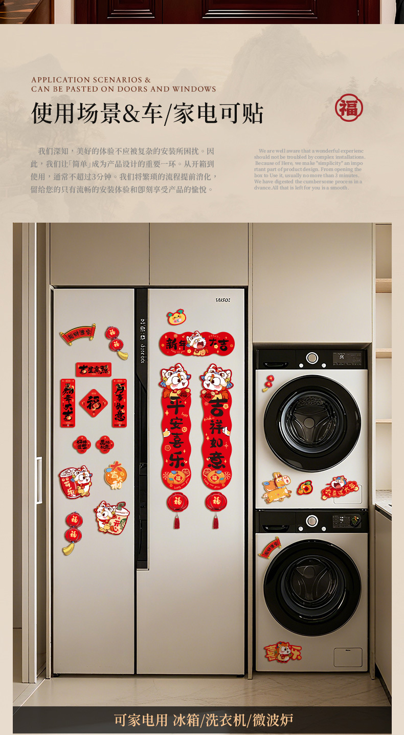 磁吸对联2026马年过新年入户门自吸免胶粘对联防盗门铁门磁吸春联