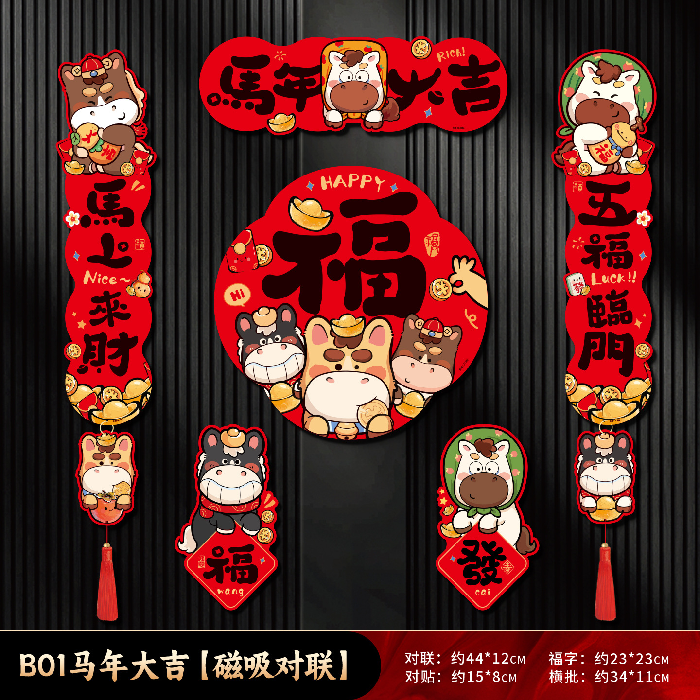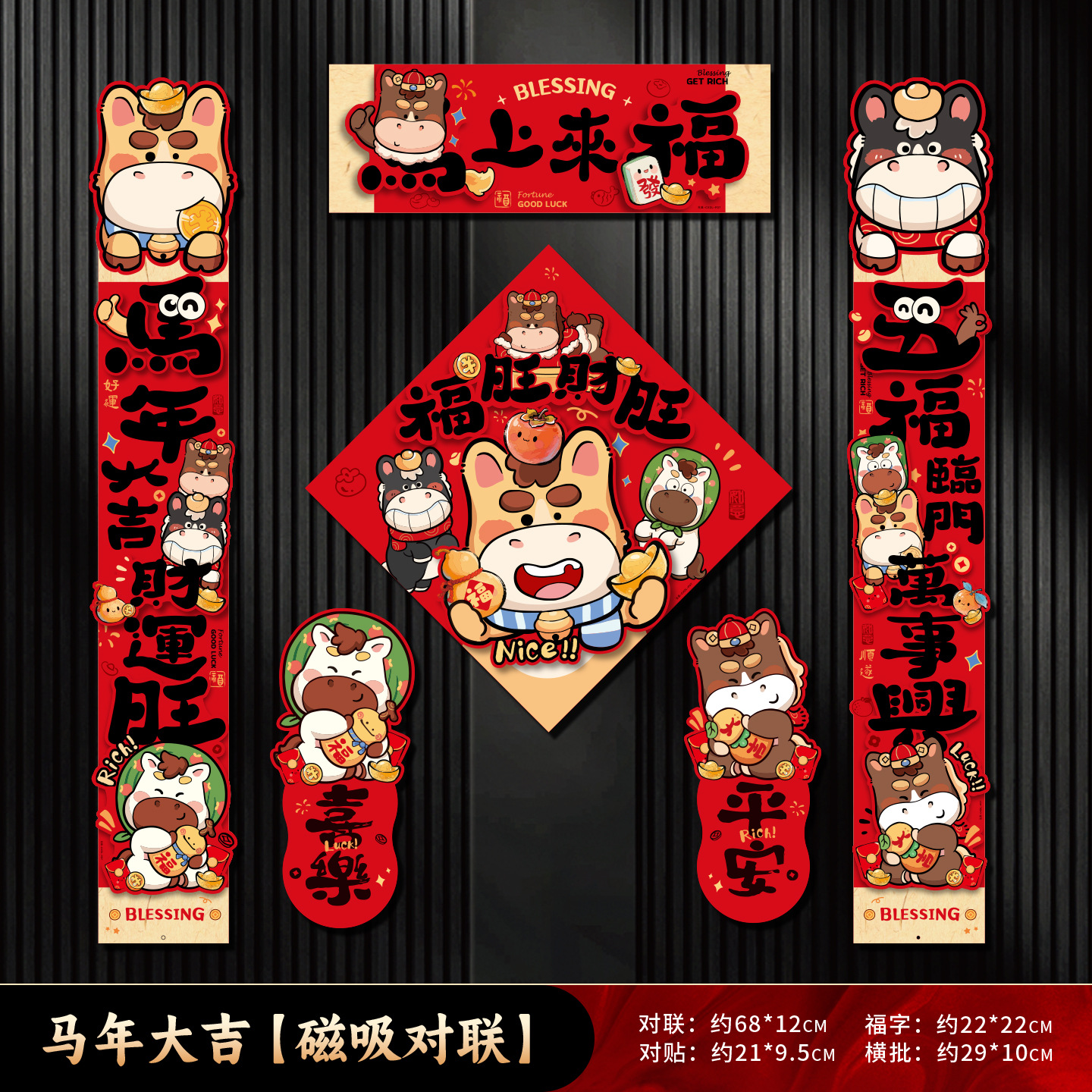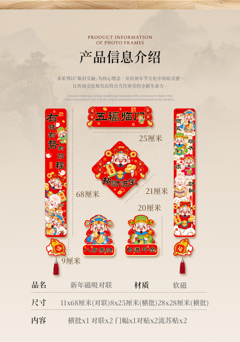 磁吸对联2026马年过新年入户门自吸免胶粘对联防盗门铁门磁吸春联