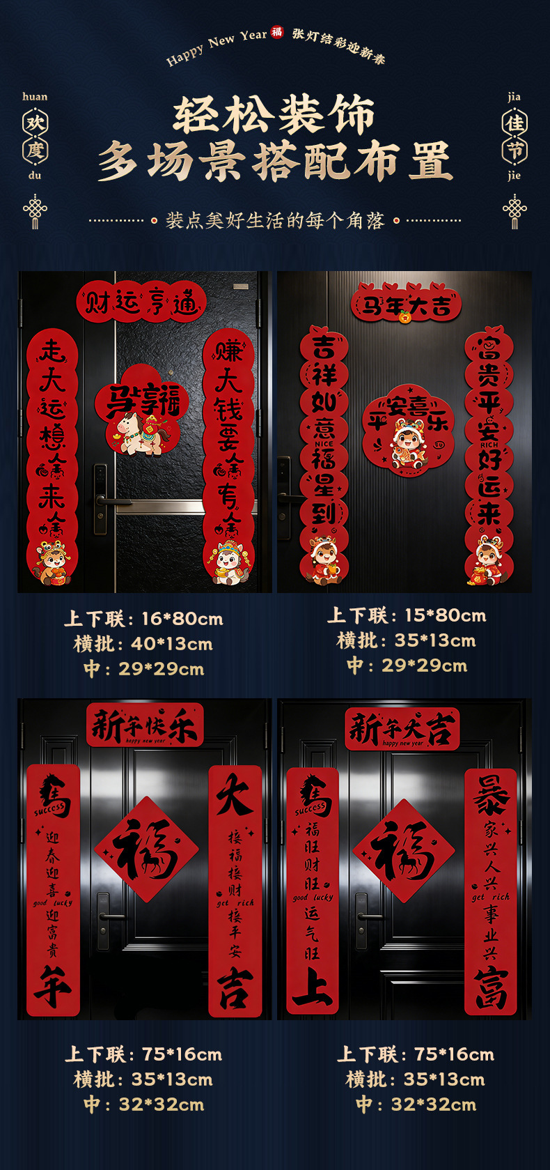 马年春联2026新款创意磁吸对联 新年福字门贴过年春节入户门联