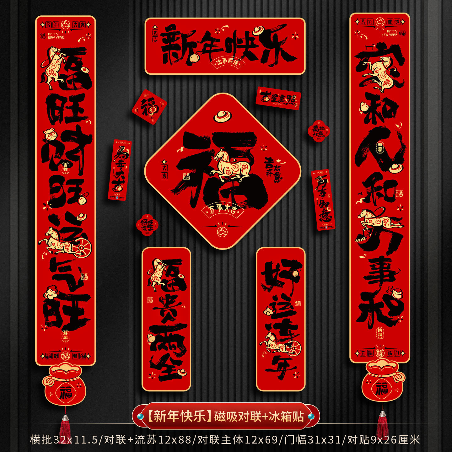 2026新款磁吸对联新年春联套装马年入户门贴装饰春节过年氛围布置
