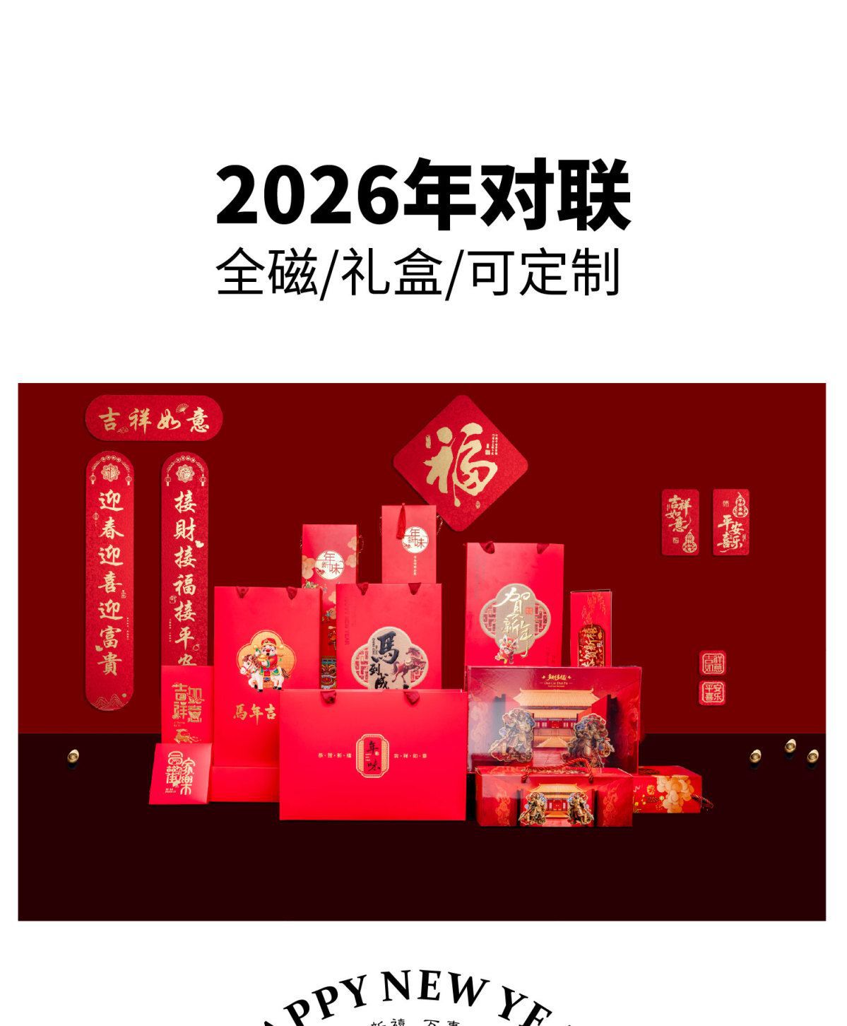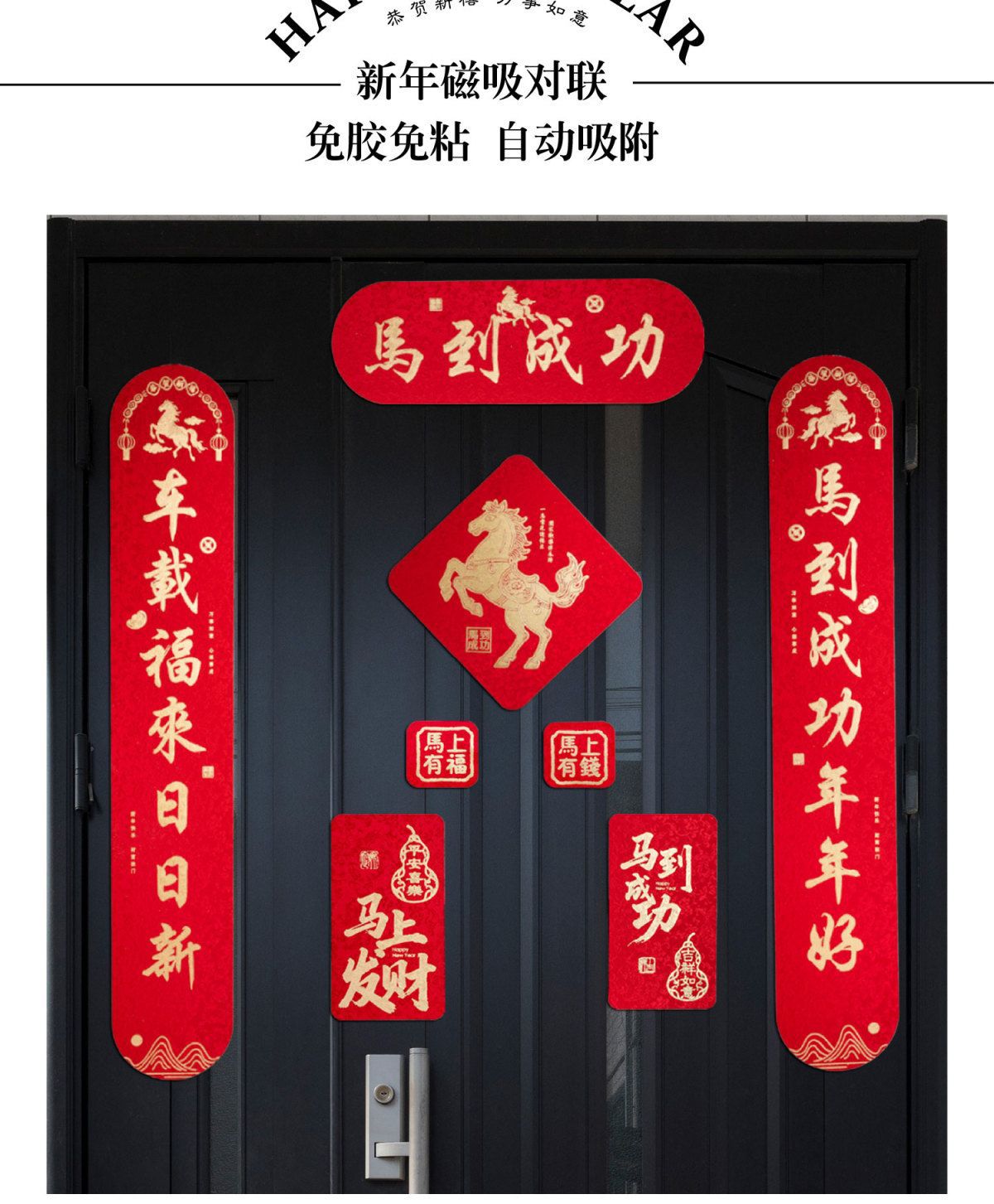 2026马年磁吸对联磁春联磁吸短款豪华入户门家用窄款跨境源头工厂