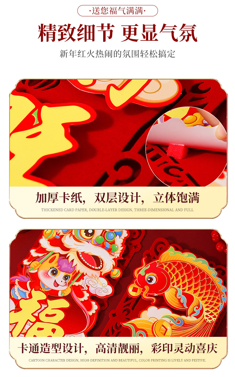 2026新款马年对联春联磁吸立体福字元旦过年春节门幅贴入户门装饰