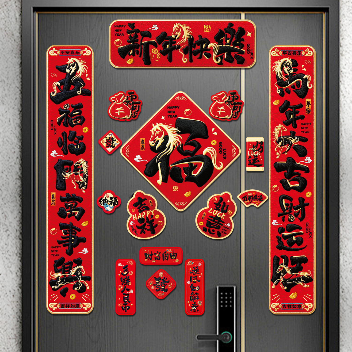✅2026马年新款磁吸对联装饰新年春节福字创意春联过年生肖入户门