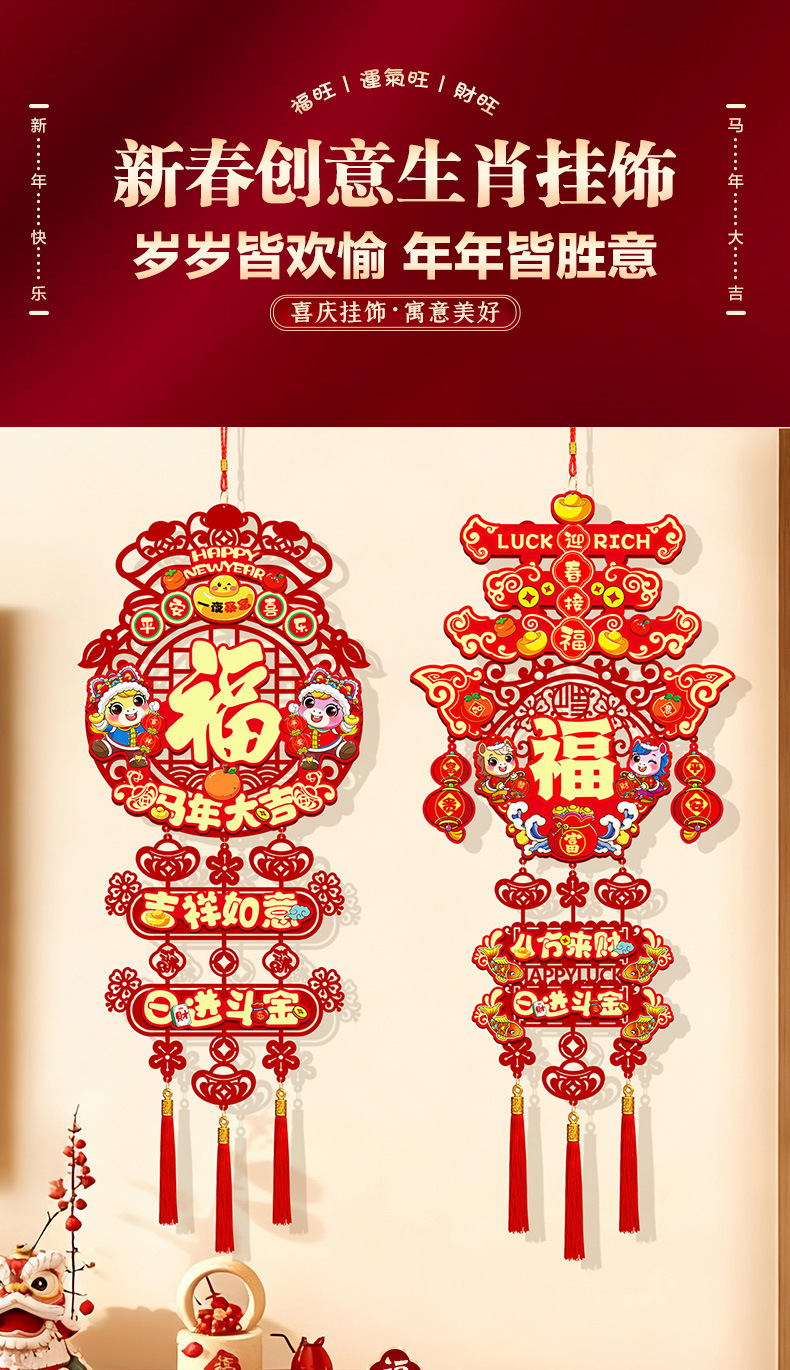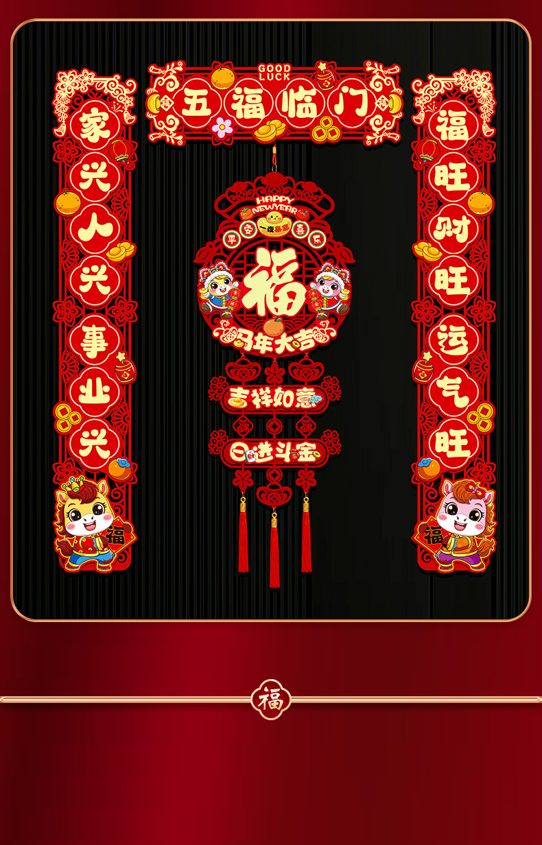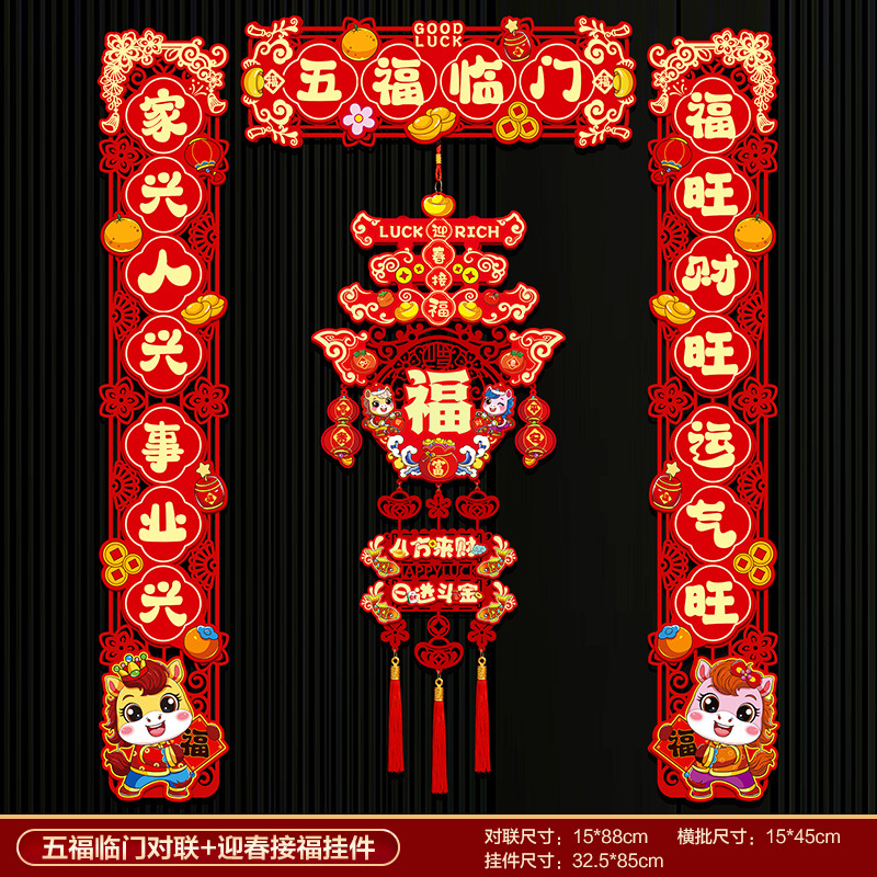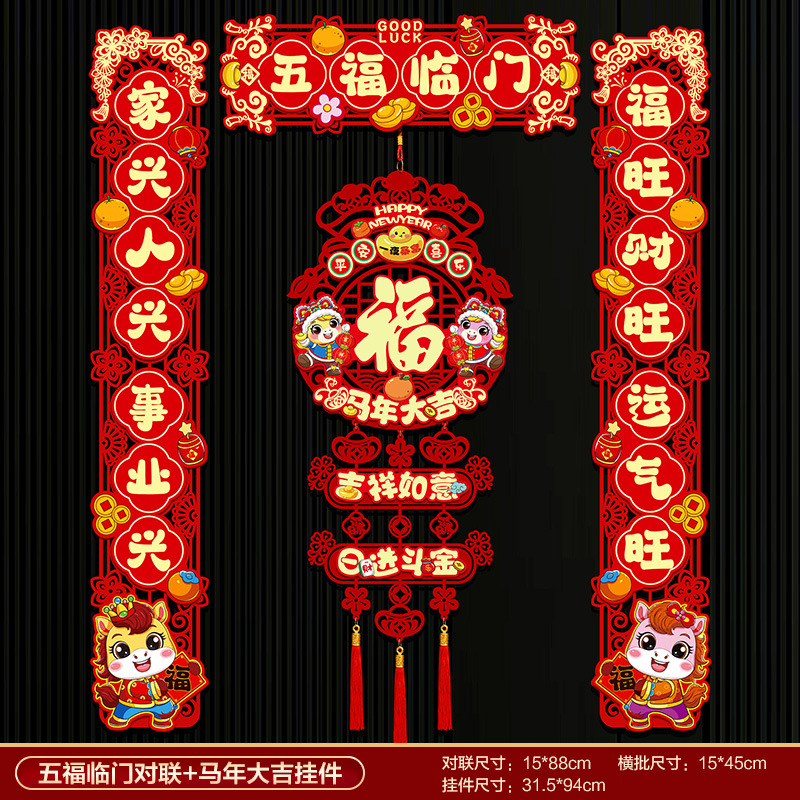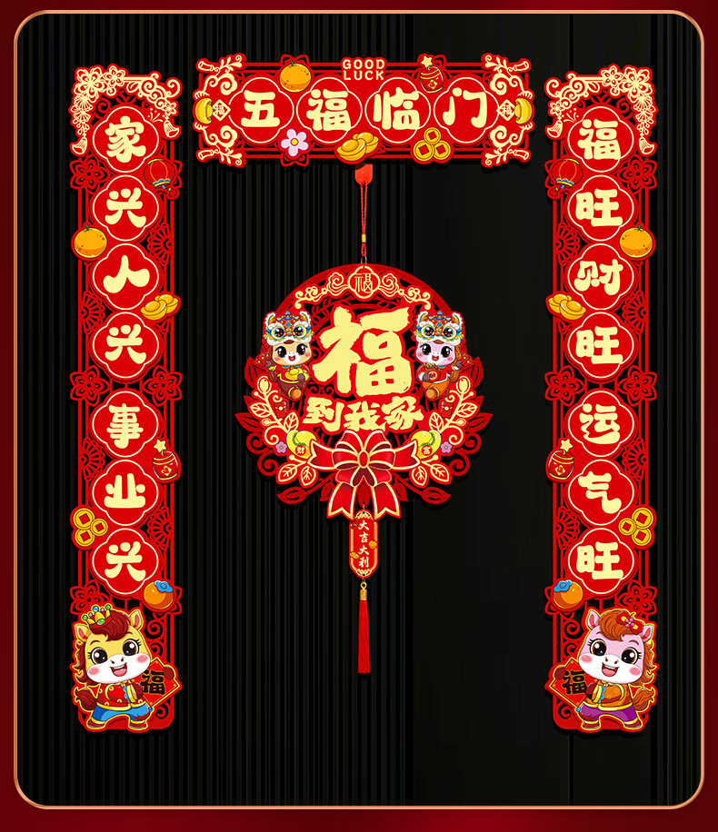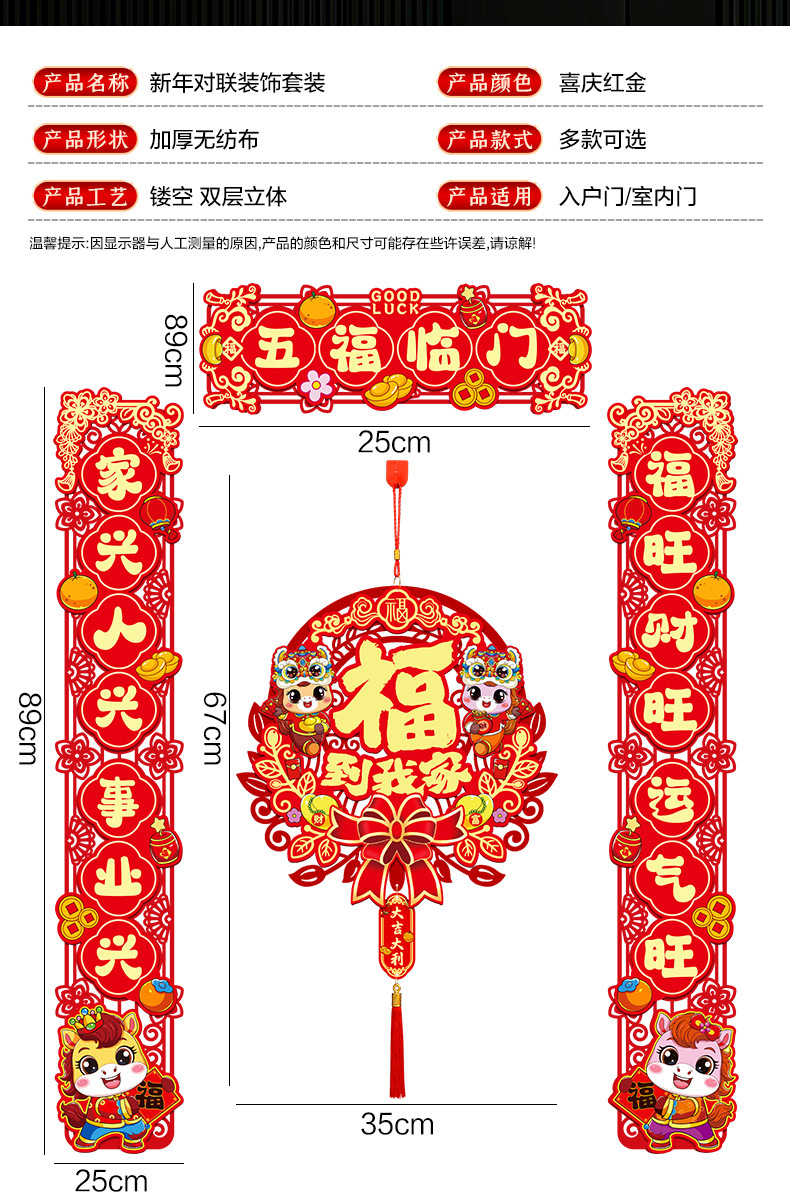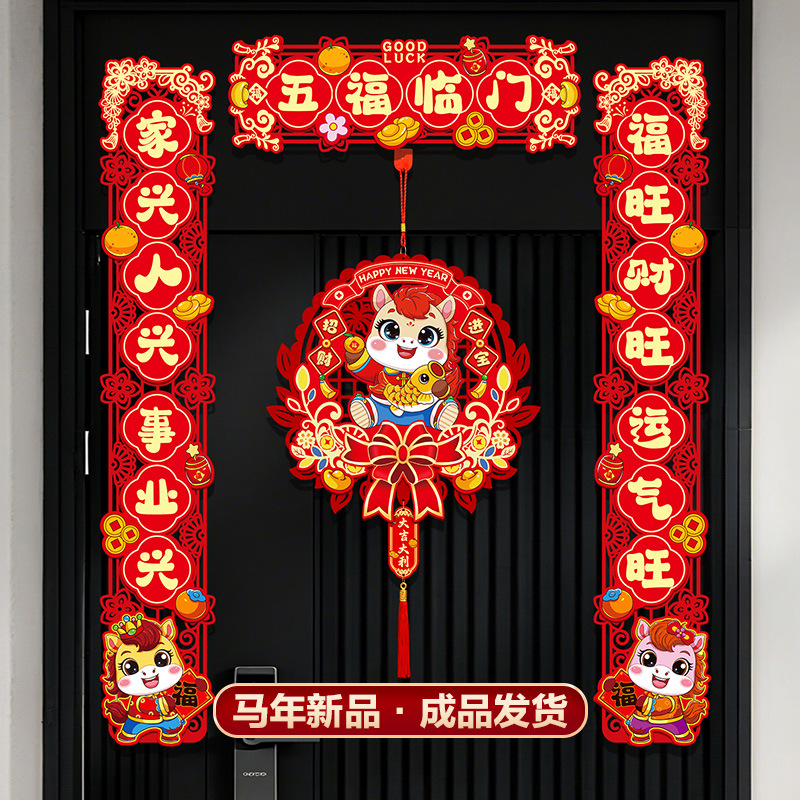 2026新年植绒对联马年新款磁吸全套对联小区入户门大门新年装饰