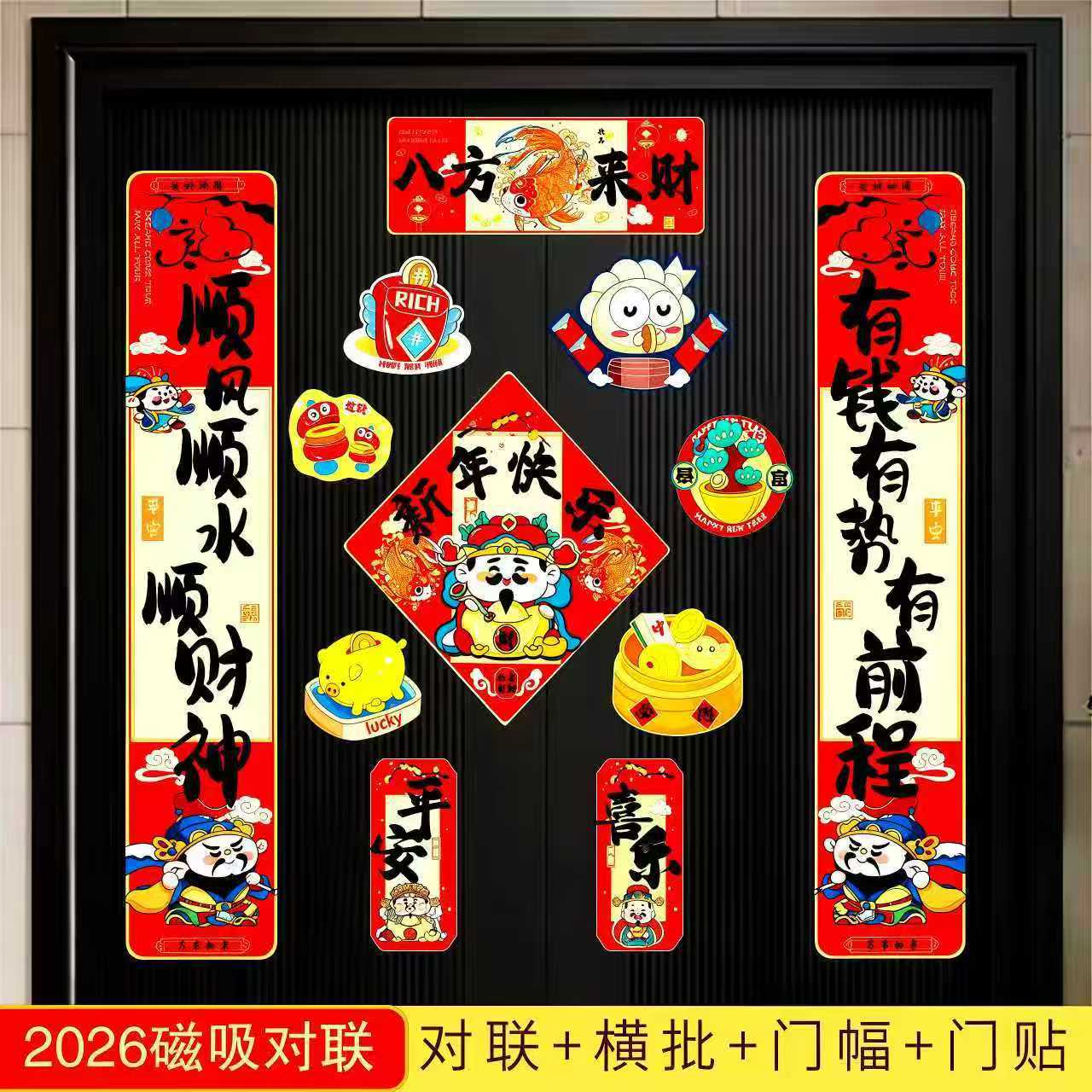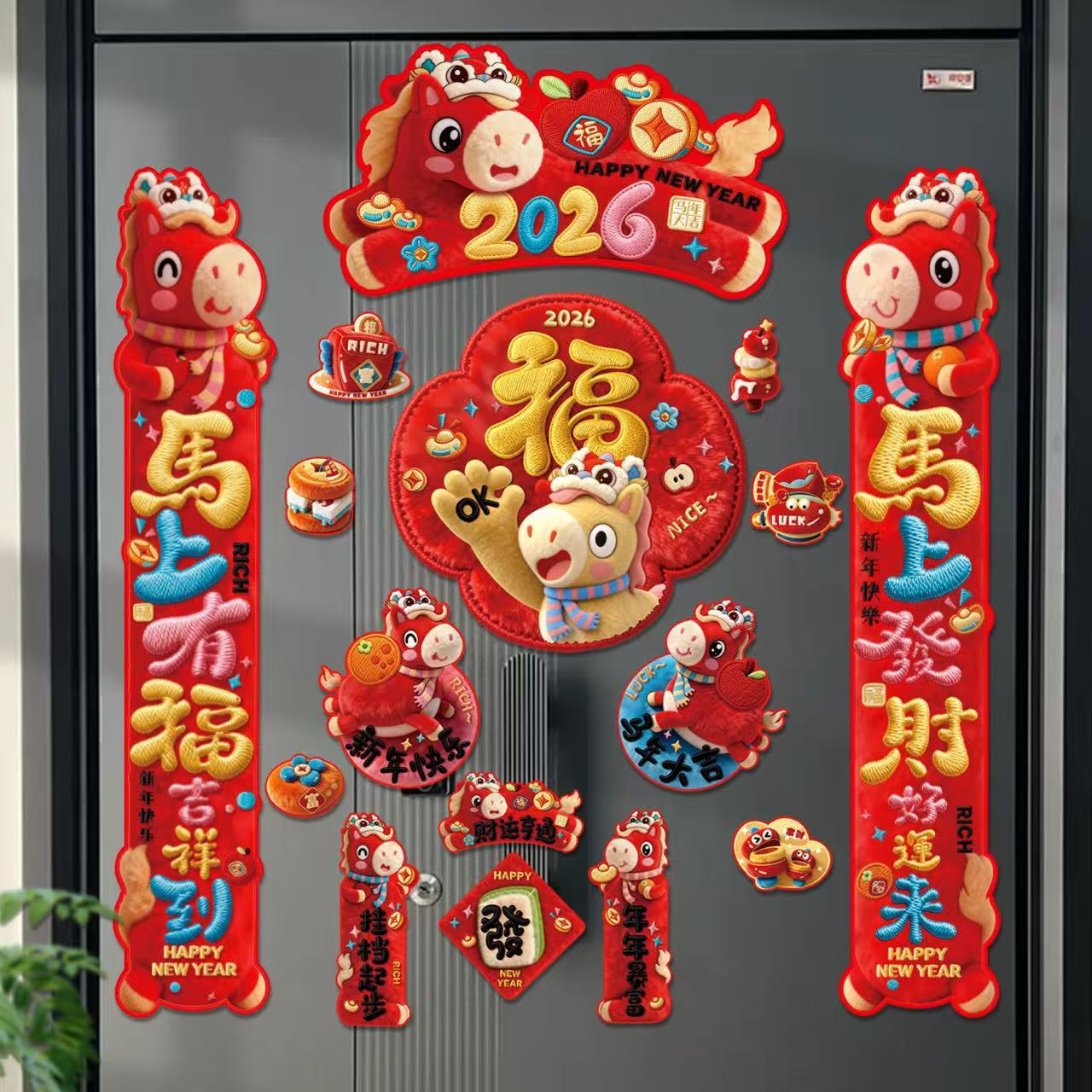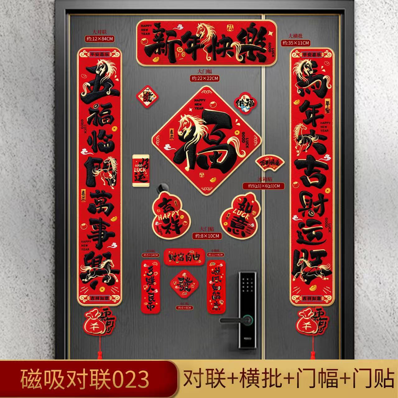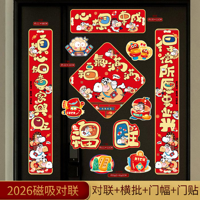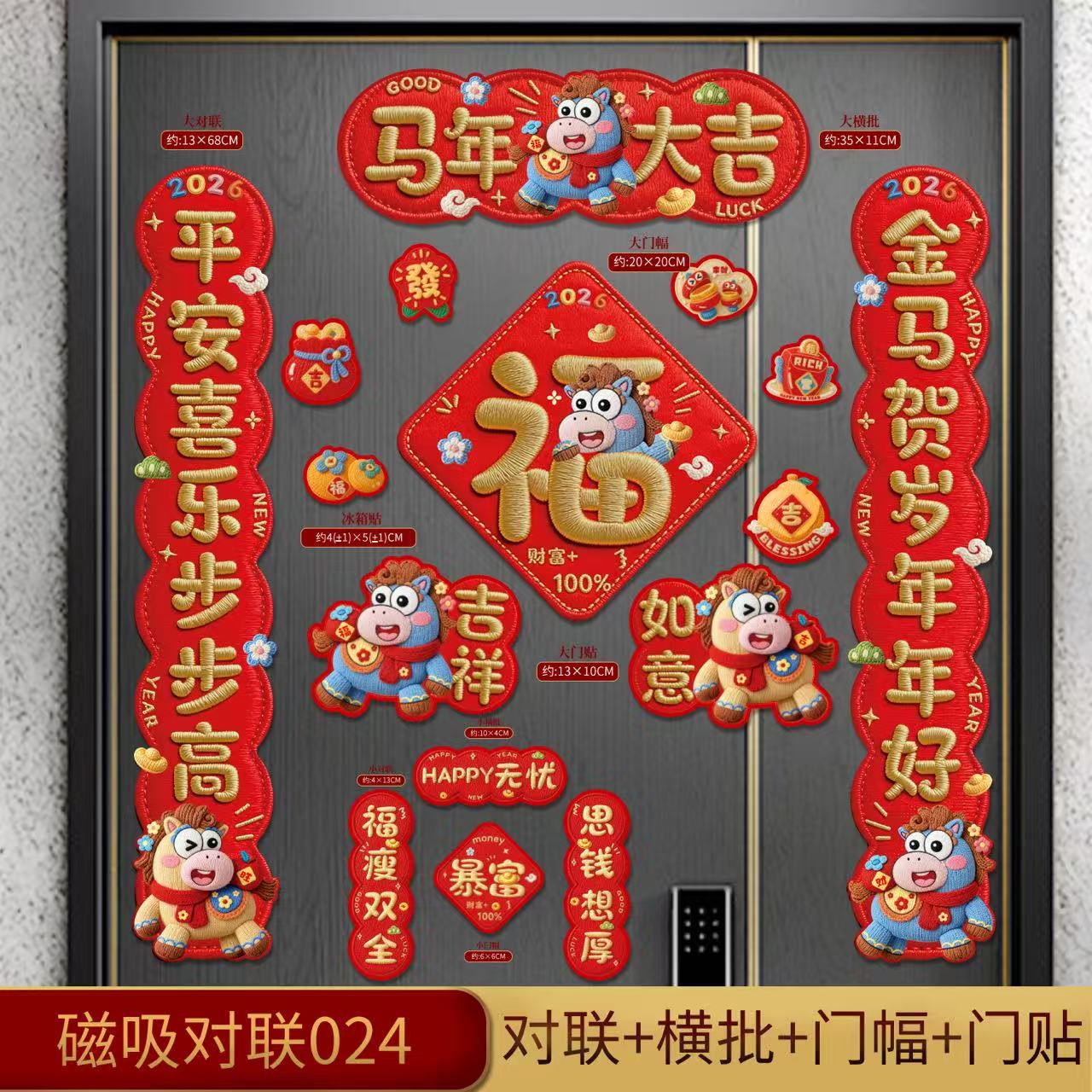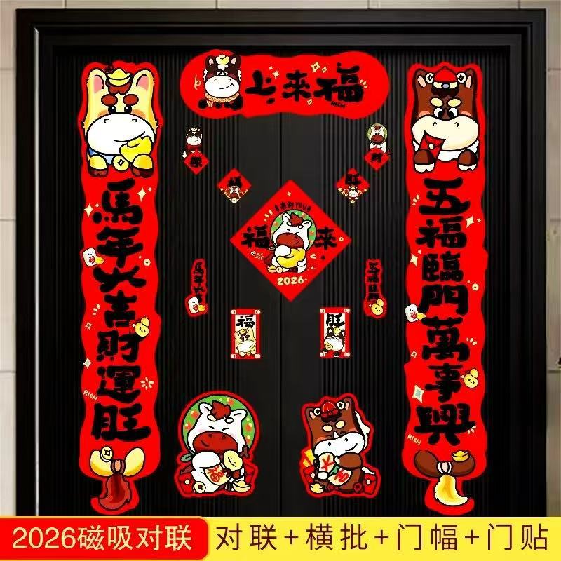 2026磁吸对联马年新款对联福字门贴新年装饰入户门过年布置国潮风
