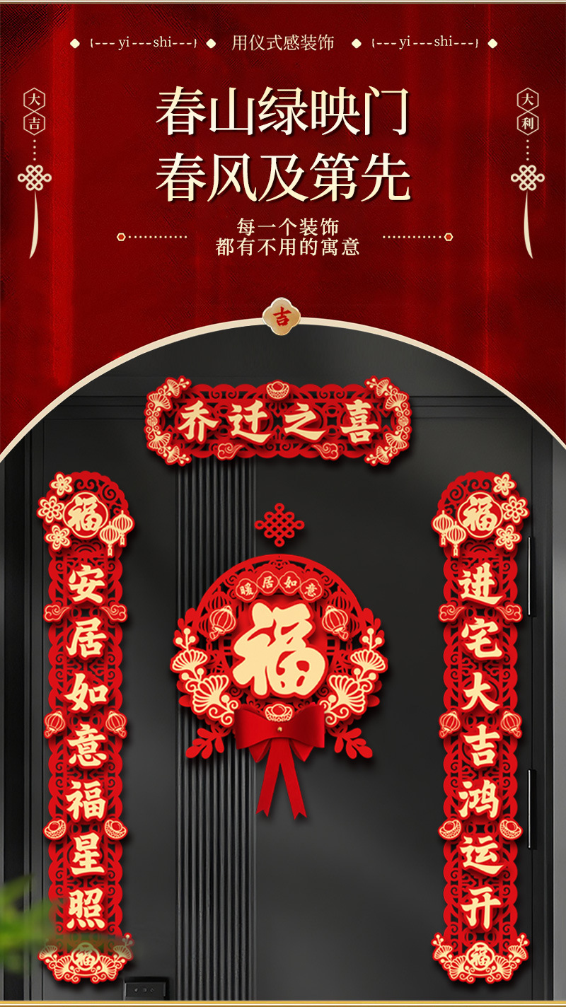 磁吸乔迁之喜装饰新居对联入宅礼物全套装搬家入户门布置仪式用