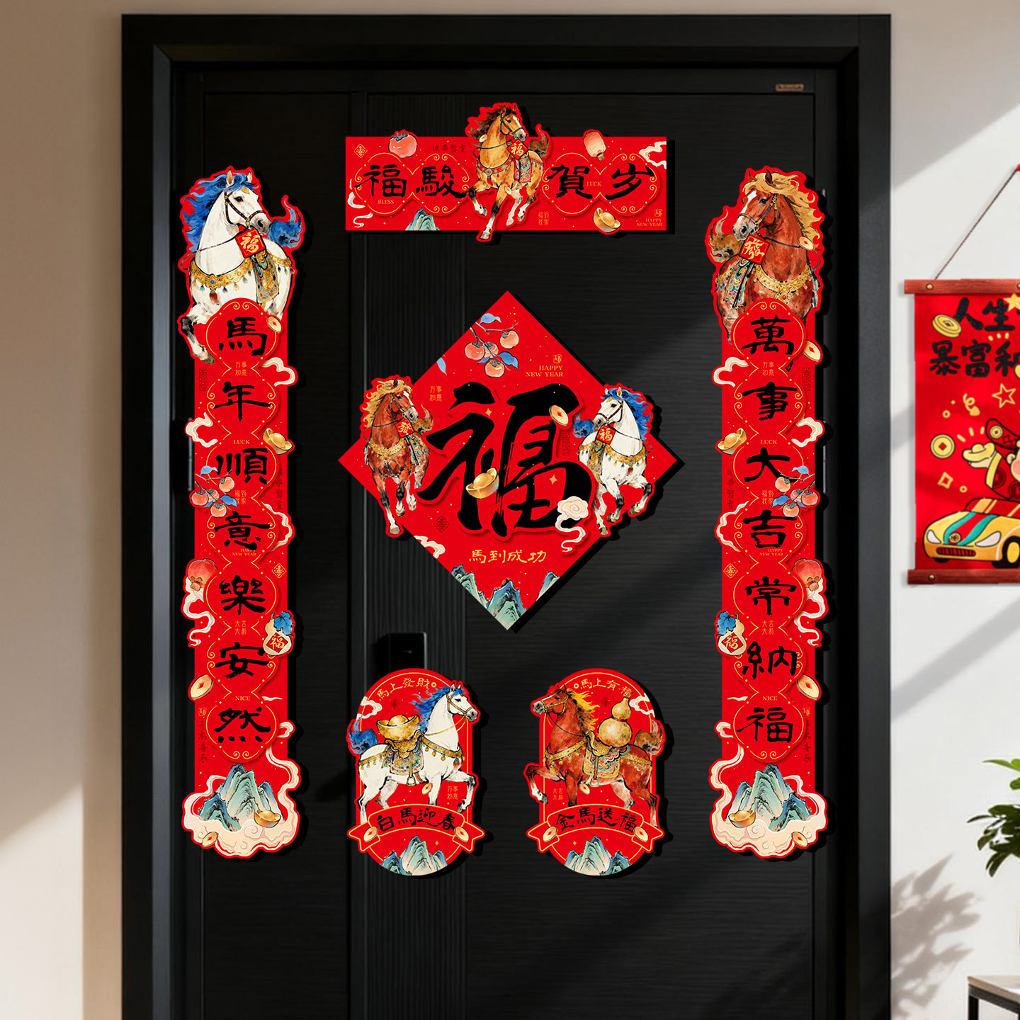 春联2026马年新款磁吸对联春节过年入户门装饰家用创意全磁吸门联