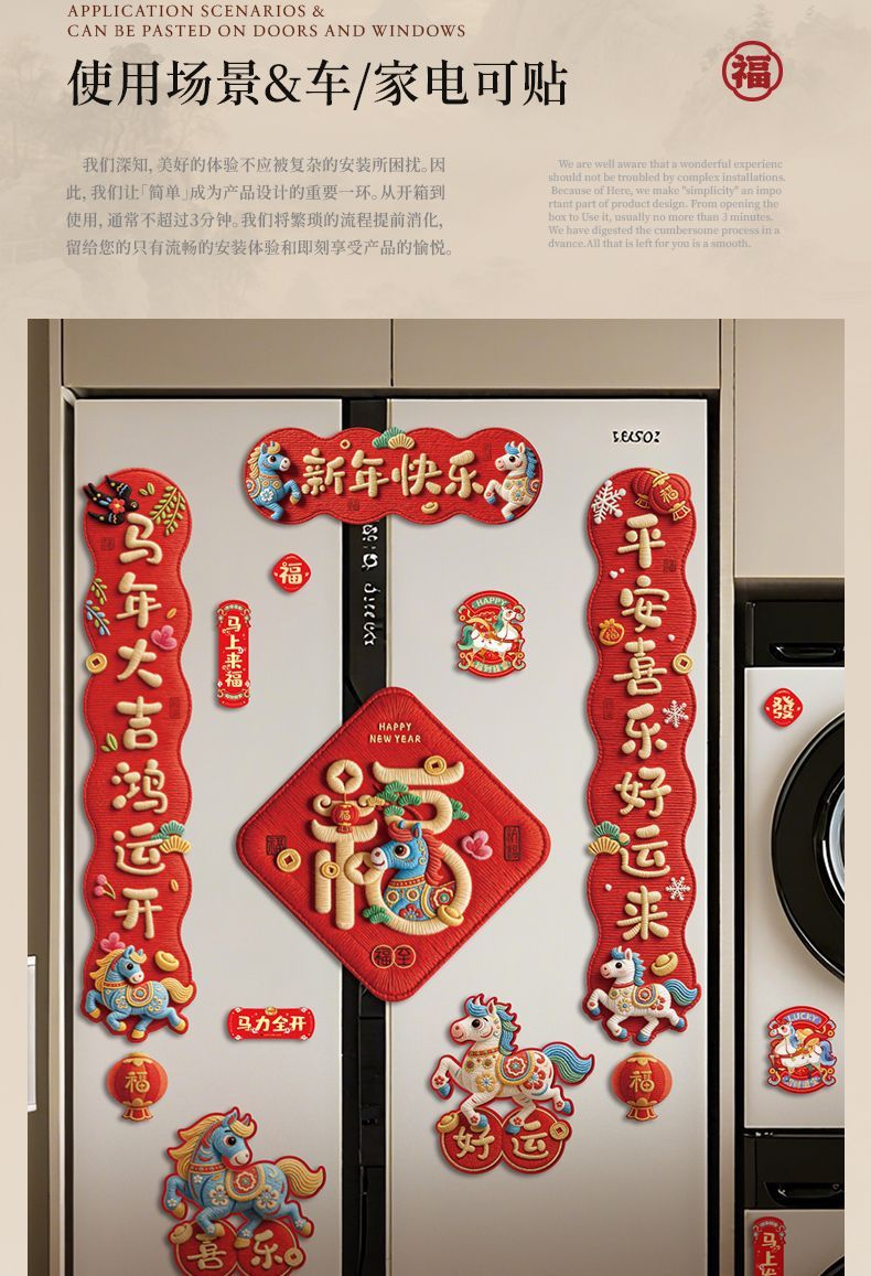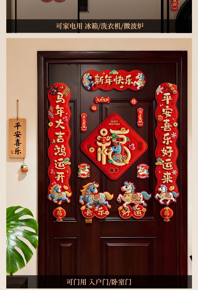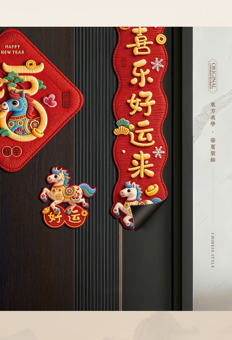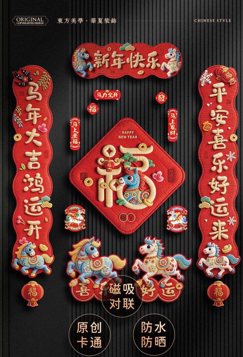 马年创意磁吸对联2026春节家用福字入户门贴对贴春联新年装饰用品