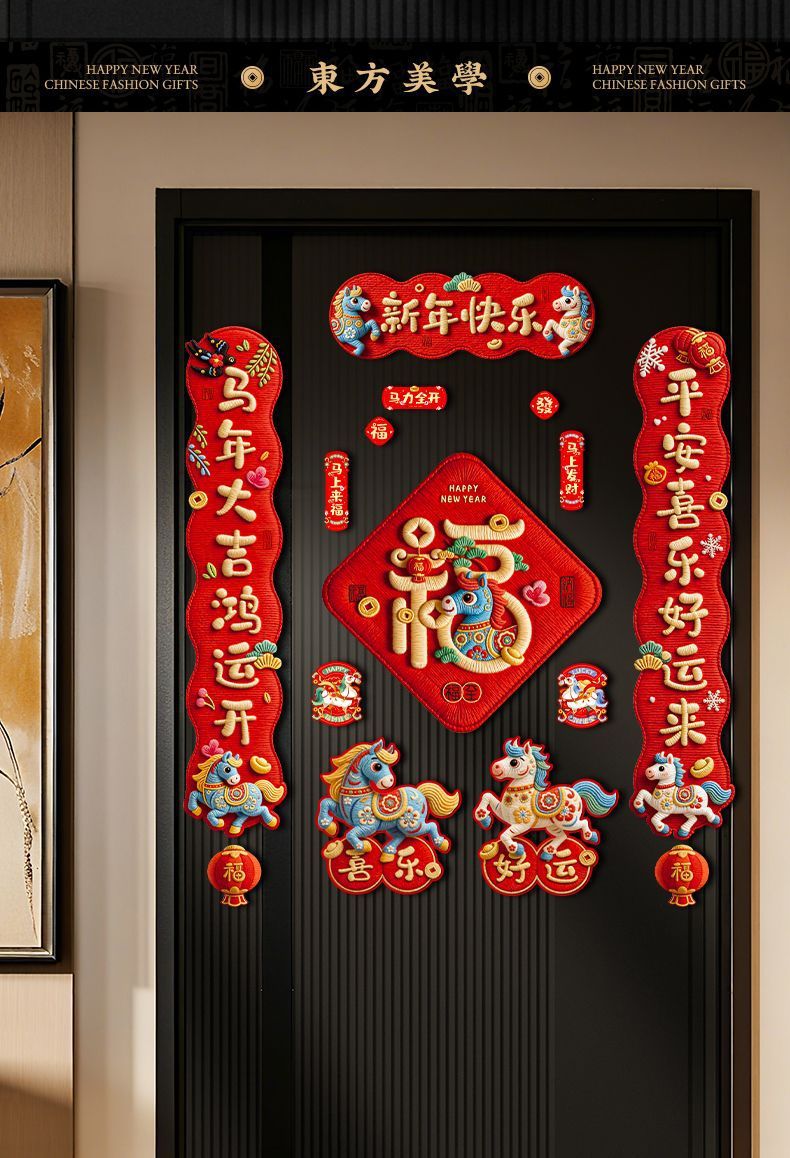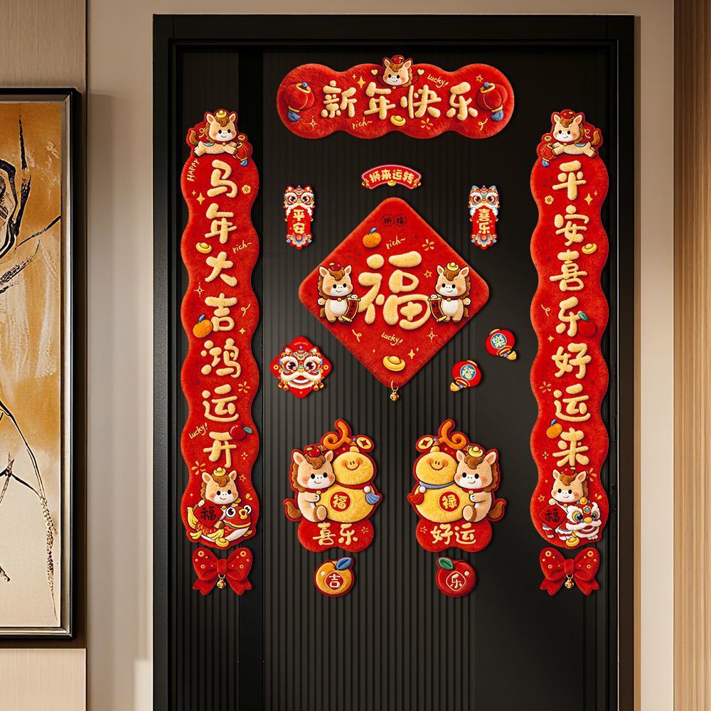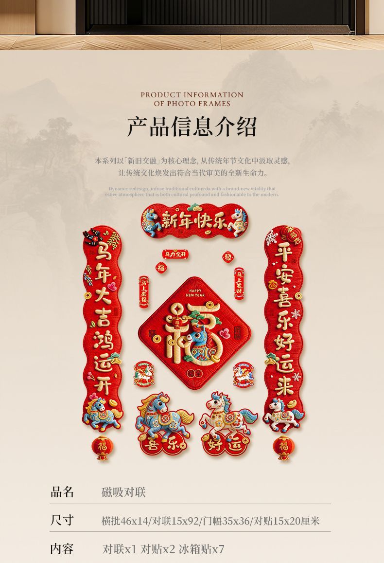 马年创意磁吸对联2026春节家用福字入户门贴对贴春联新年装饰用品