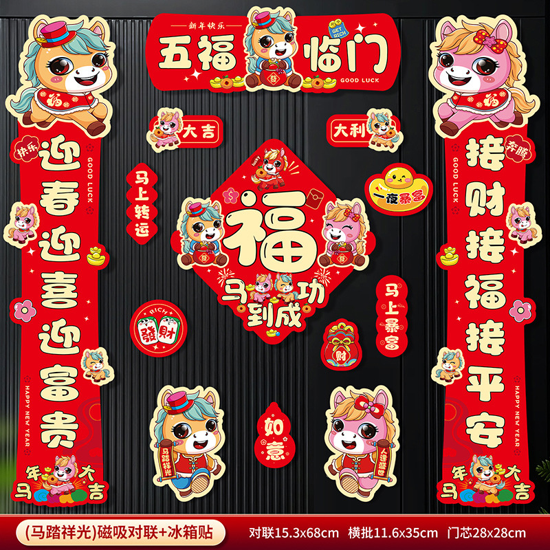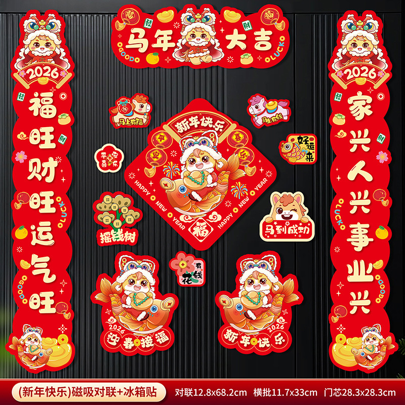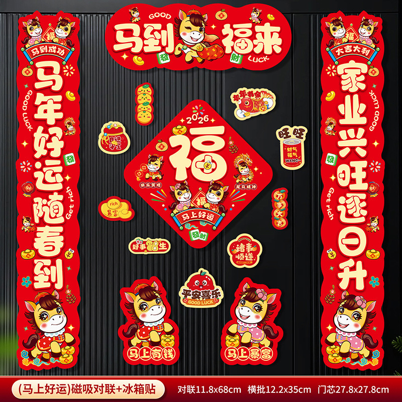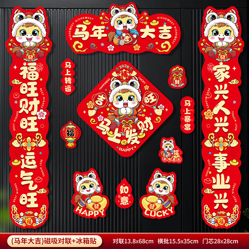 2026马年对联磁吸春联家用门联过年福字门贴入户门新春布置装饰