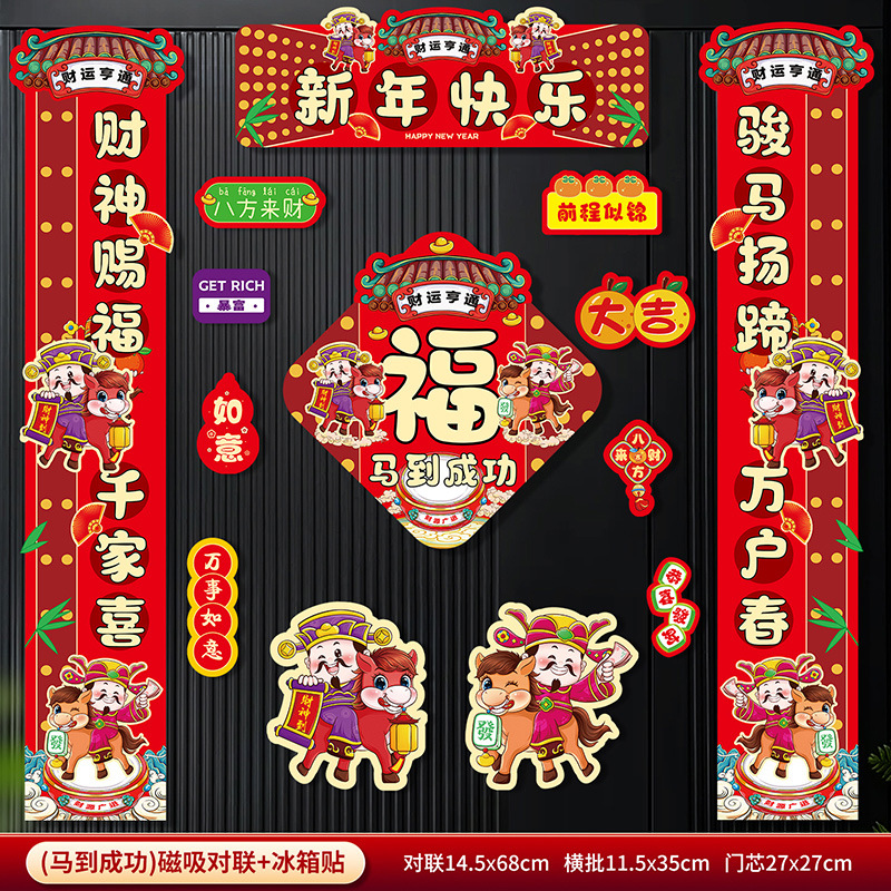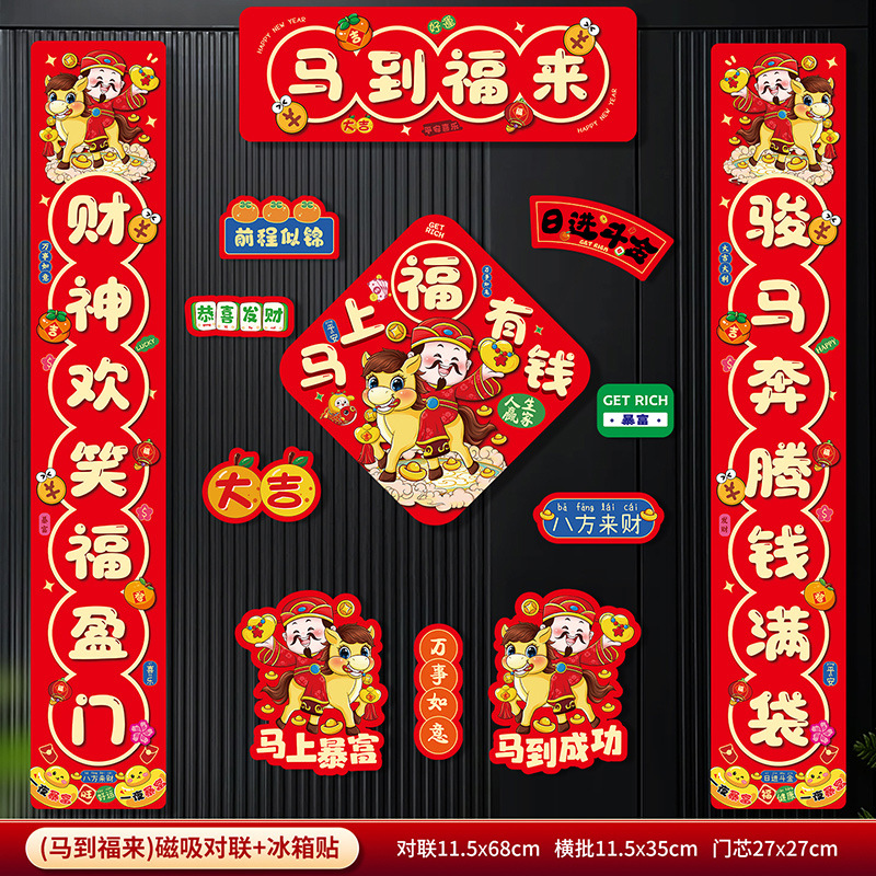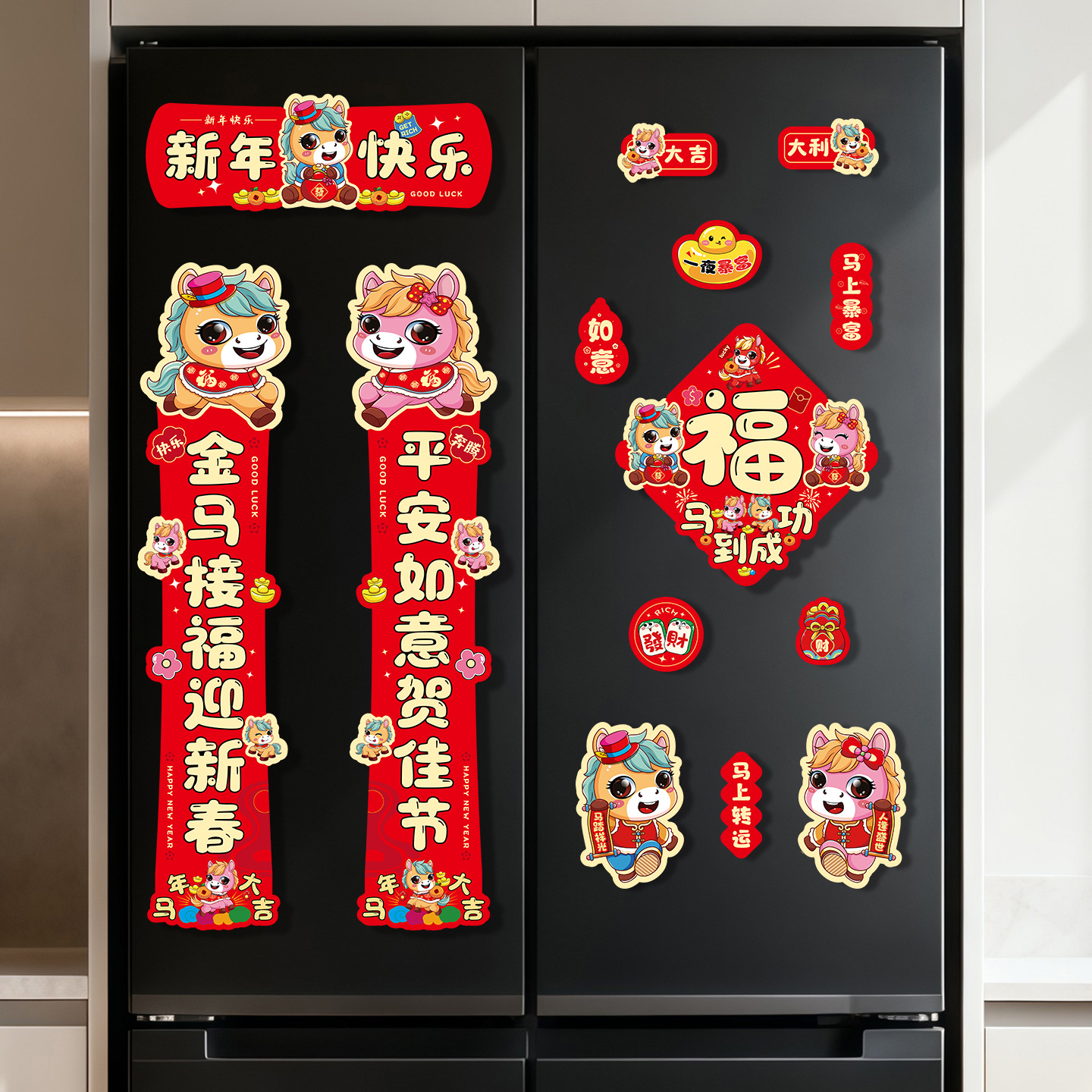 2026年马年新款卡通磁吸对联春联家用门联过年门贴入户门布置装饰