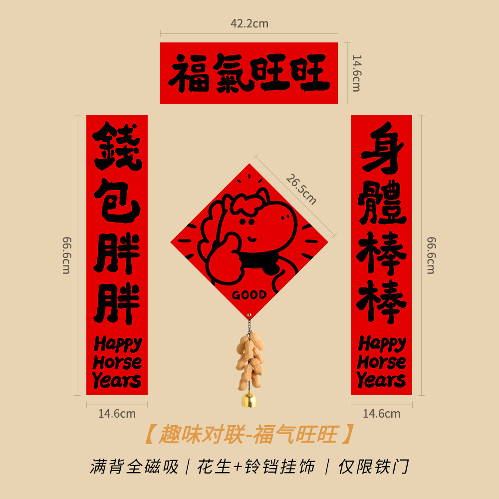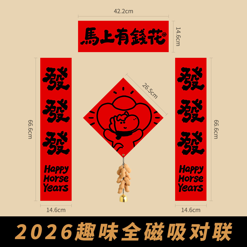 2026马年磁吸对联入户门贴趣味新年入门门春联装饰创意福字布置