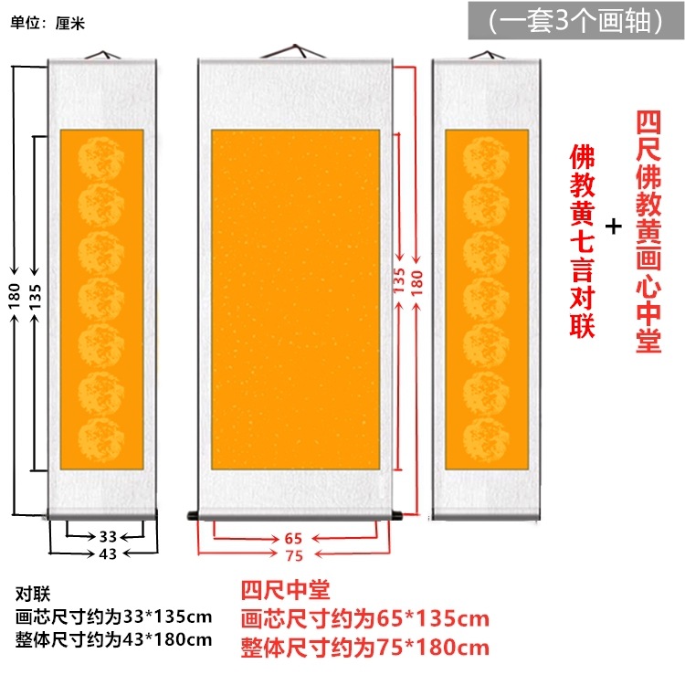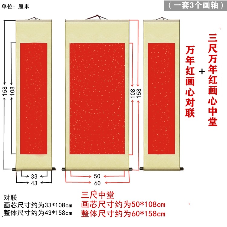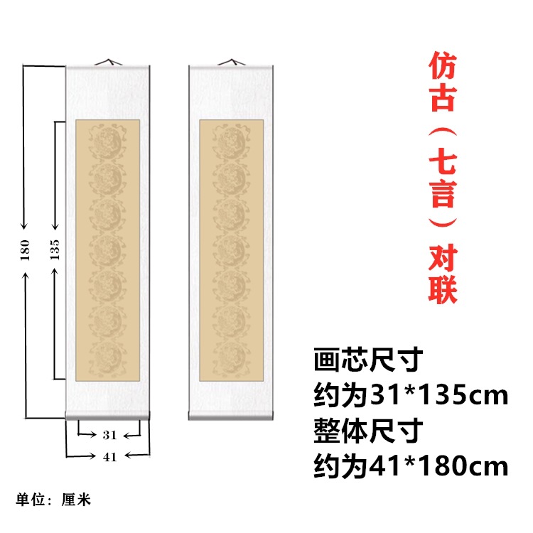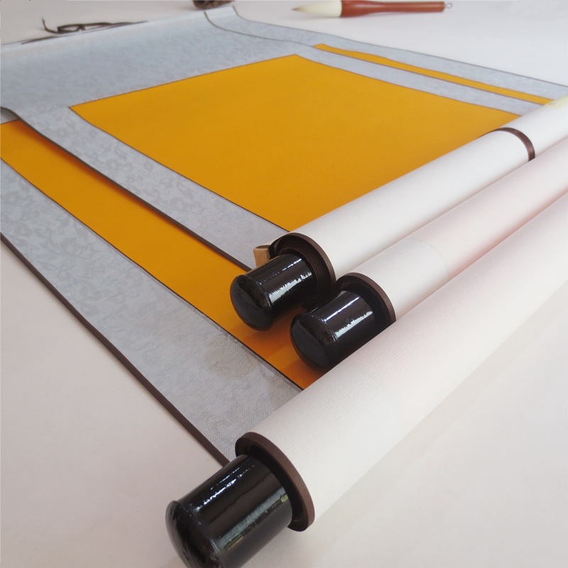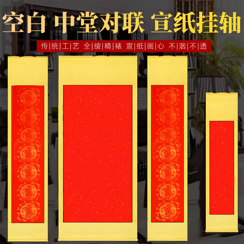 宣纸空白卷轴四尺中堂配对联套装全绫精裱书法用纸挂轴春节对联