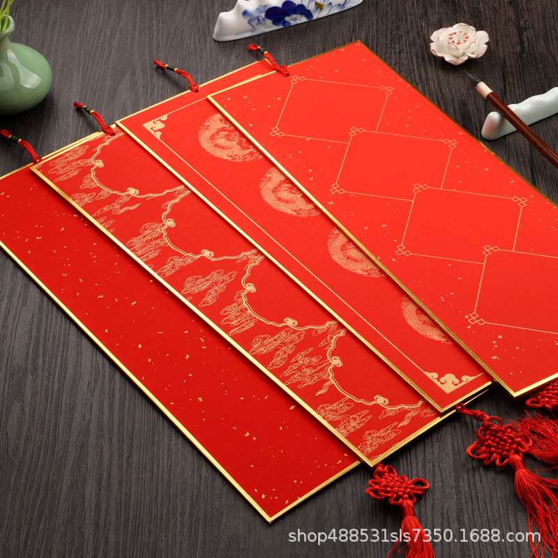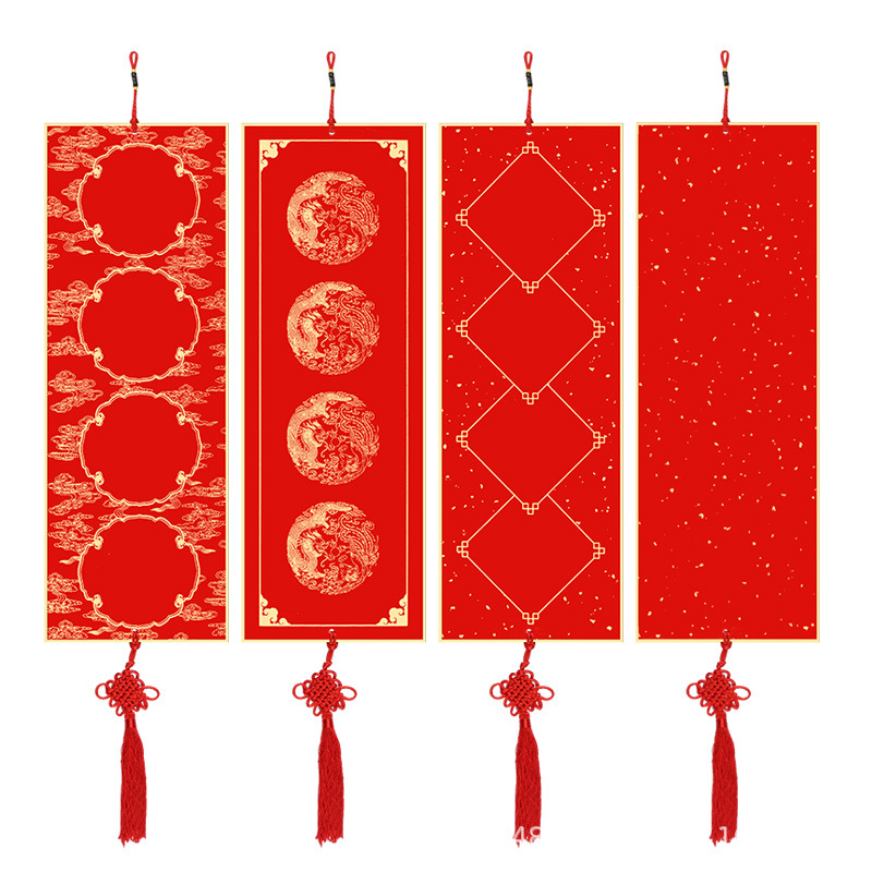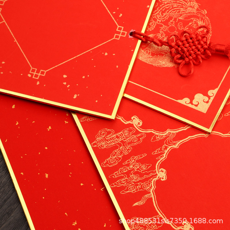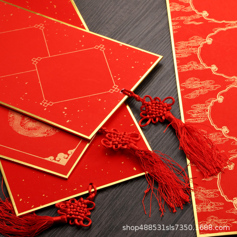 万年红硬卡长方形福卡空白手写小对联宣纸四言吉言书法春联纸横批