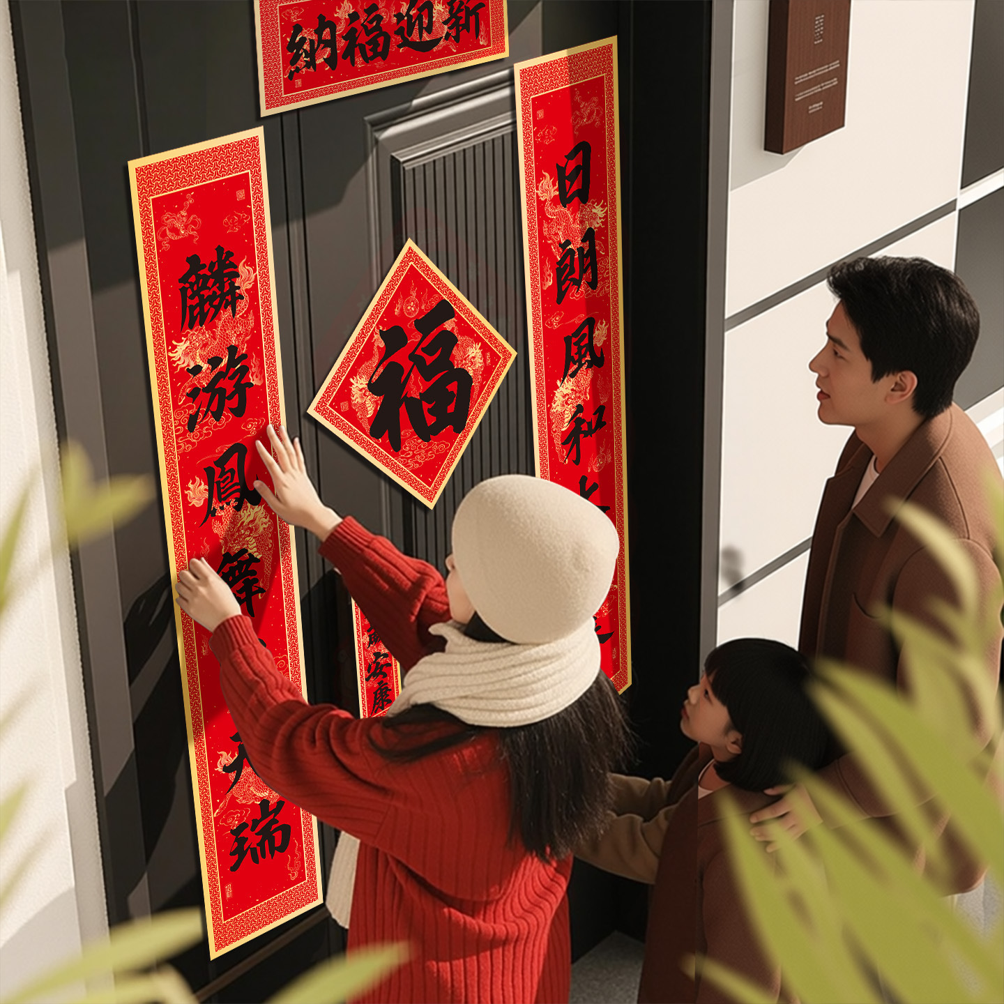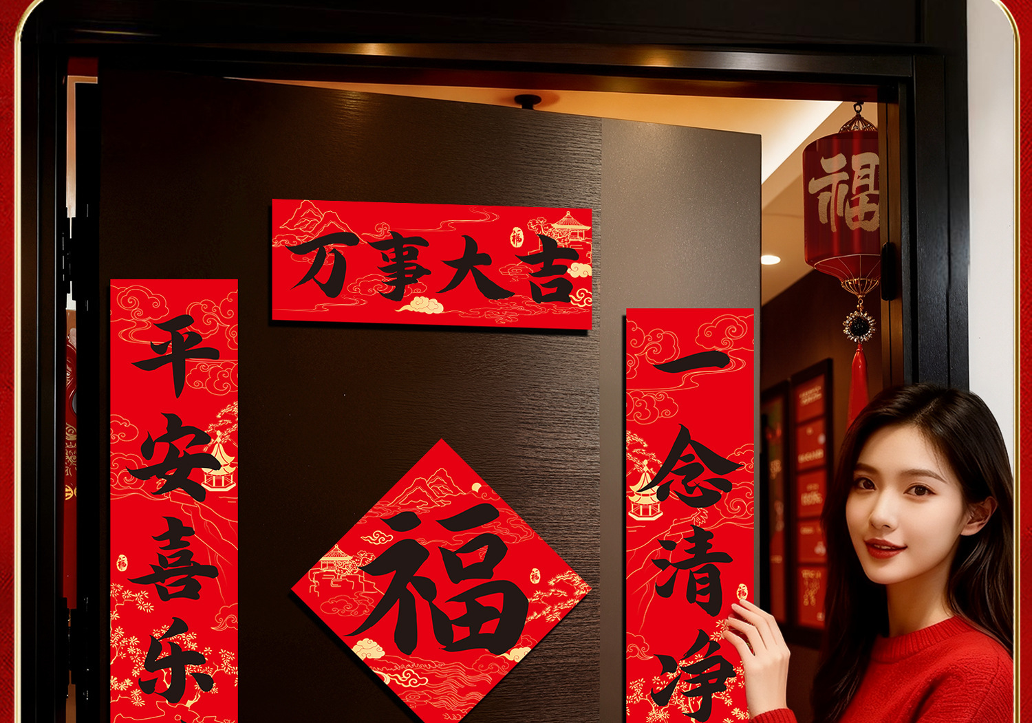 2026新款马年对联春节家用门贴福字新年创意高档装饰纸质书法春联