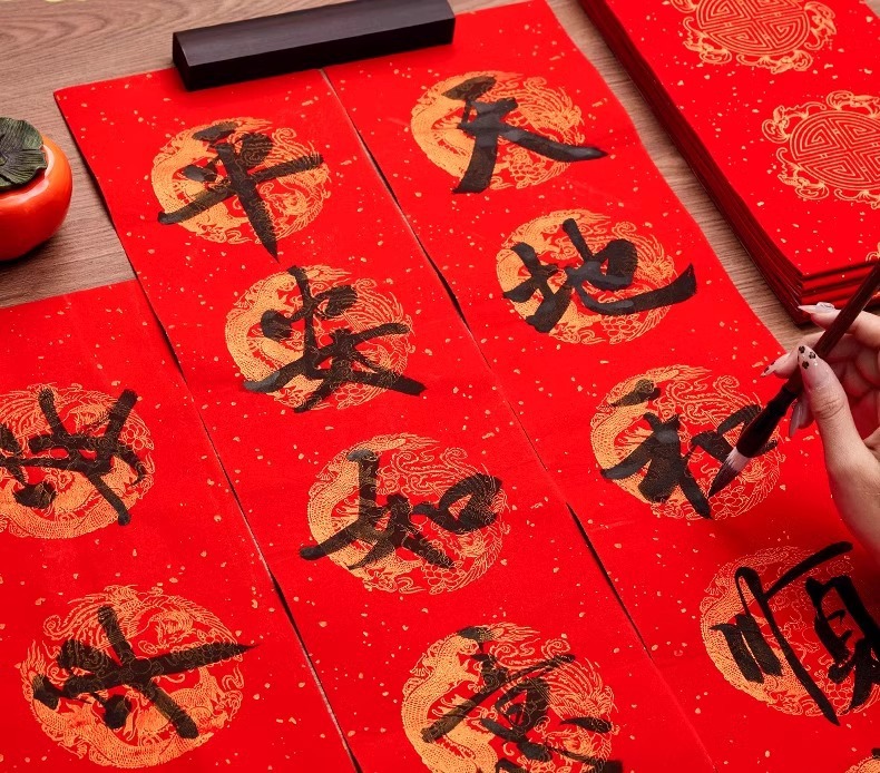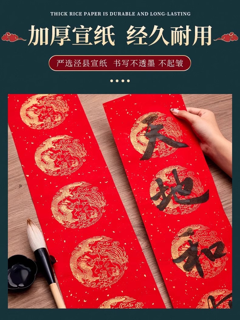 春节斗方红色纸万年红洒金对联空白福字斗方折纸毛笔练习福字贴