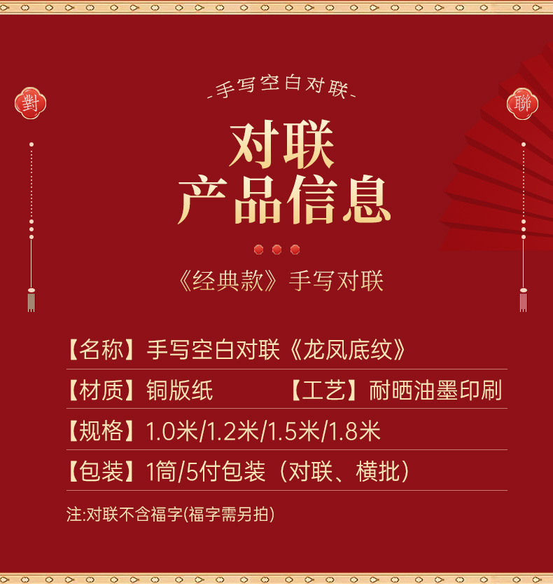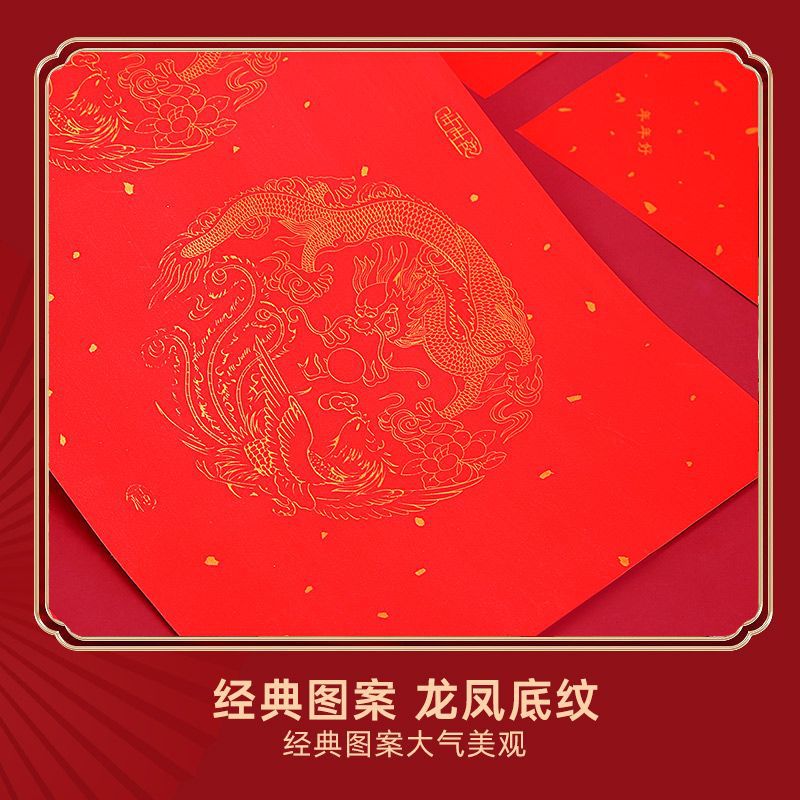 春联2026全年红对联加厚空白春联纸经典龙凤底纹版春联红纸批货