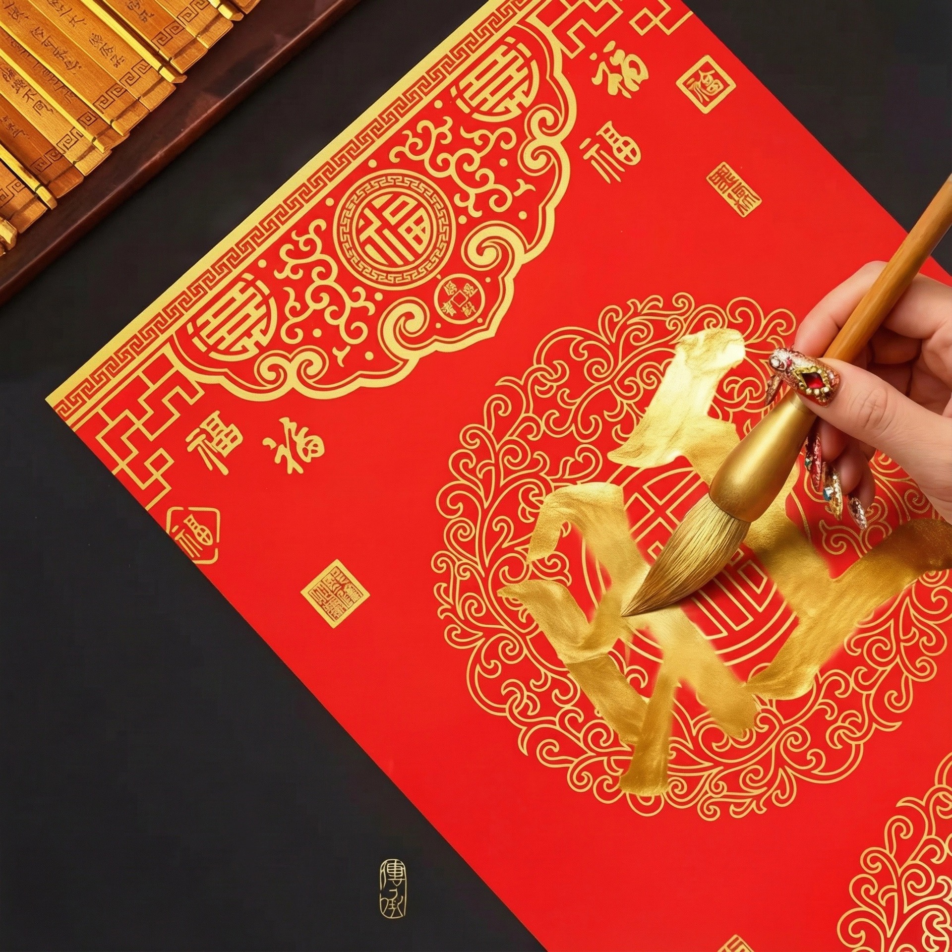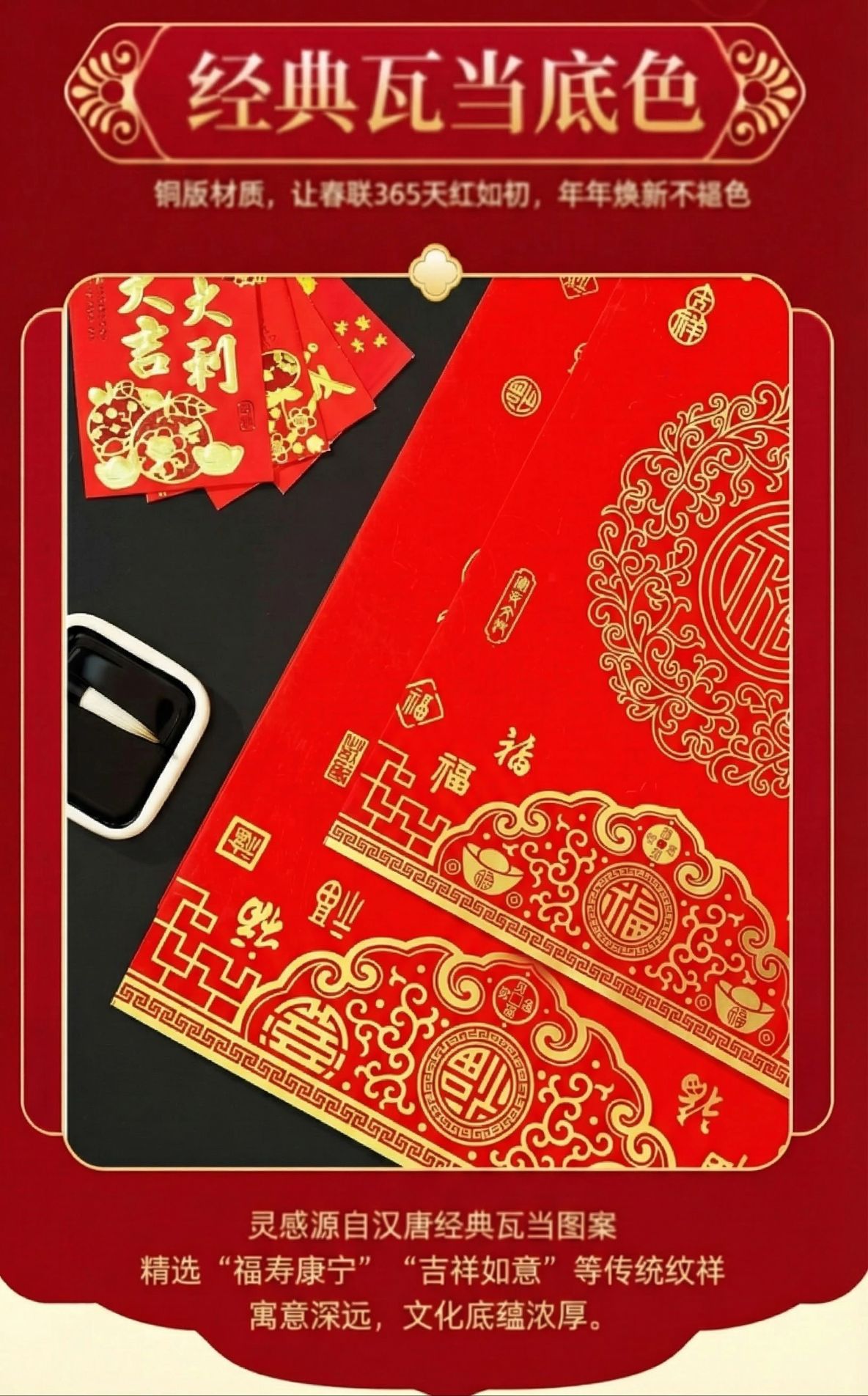春节对联纸加厚手写空白春联不褪色七言瓦当新款自写万年红铜版纸