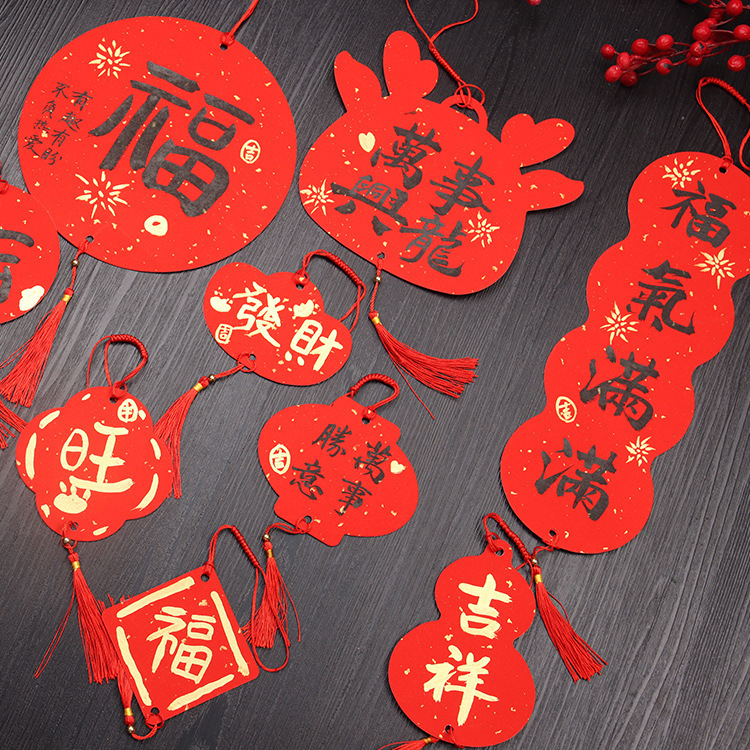 福卡迷你小挂件空白万年红纸小珲春对联书法中国风新年装饰品批发