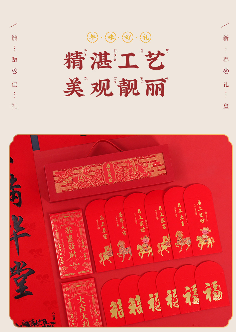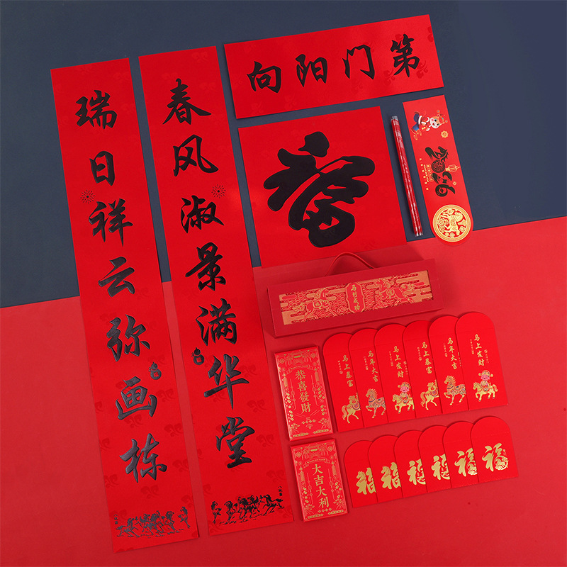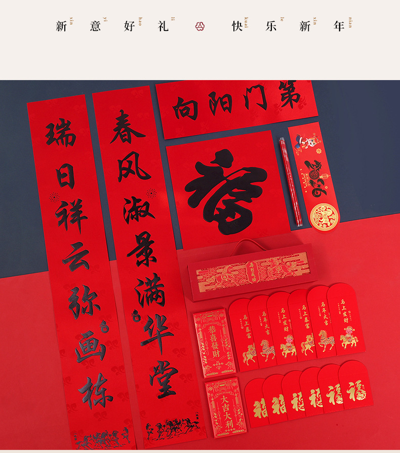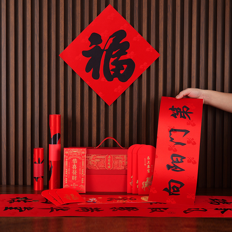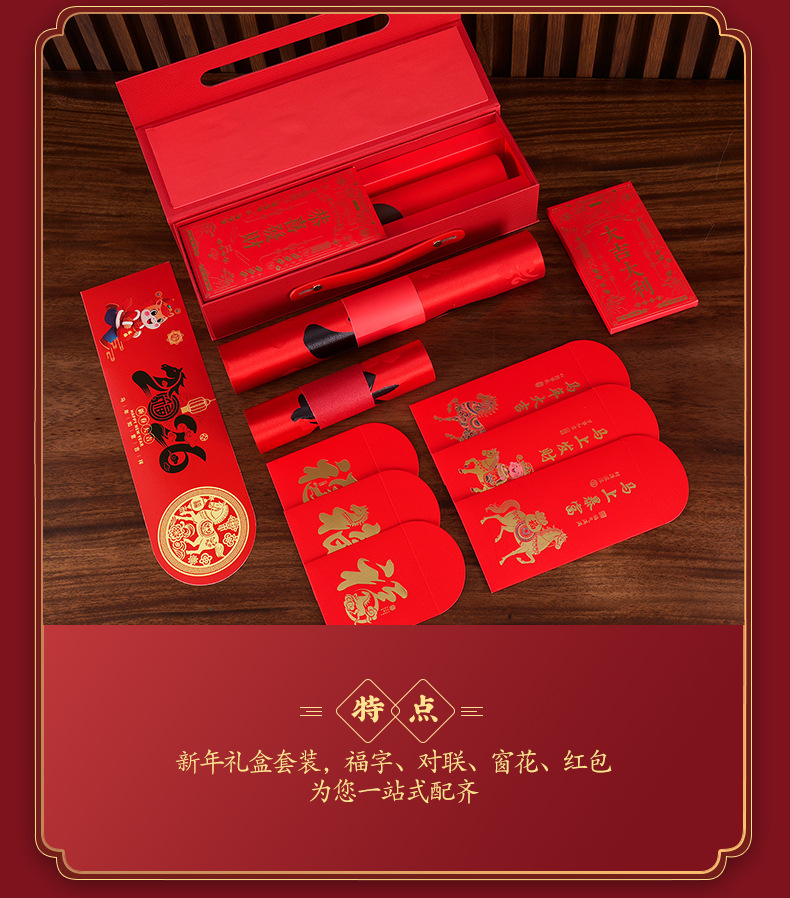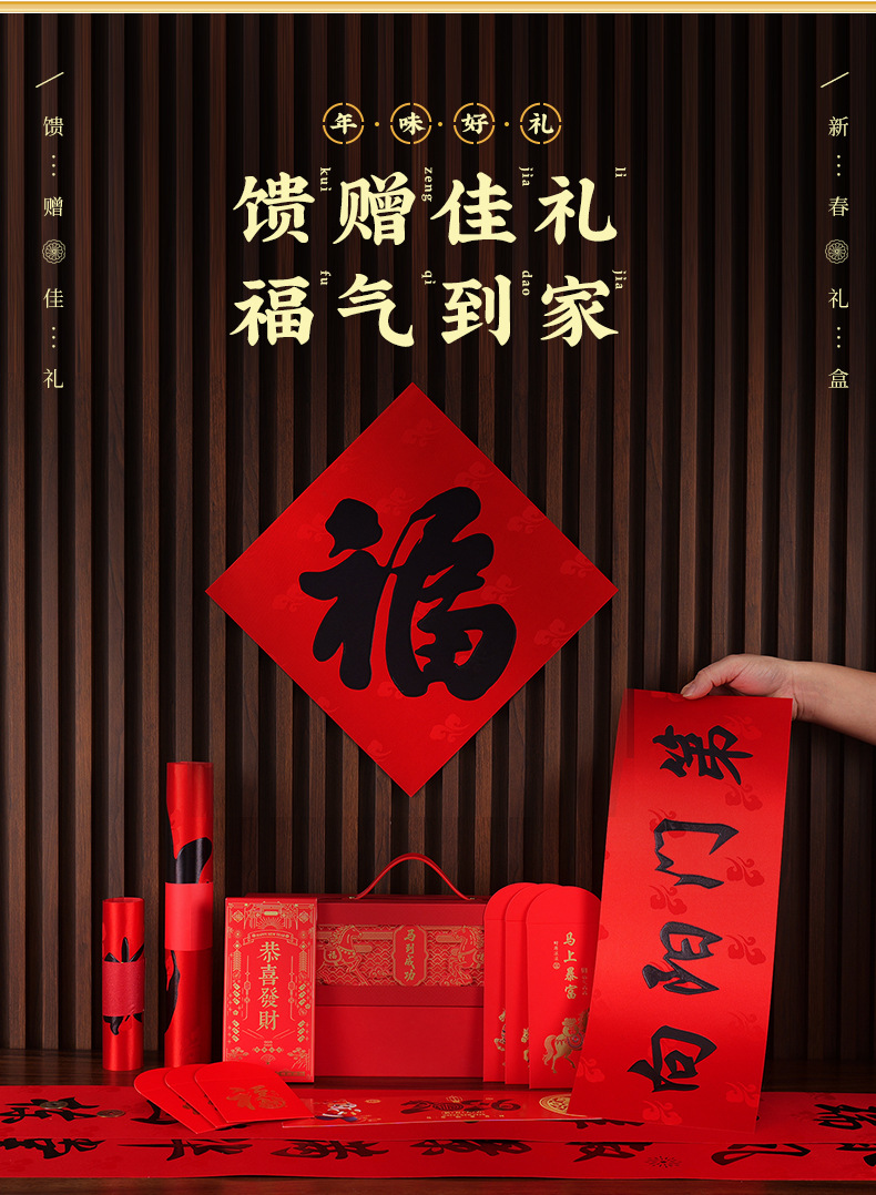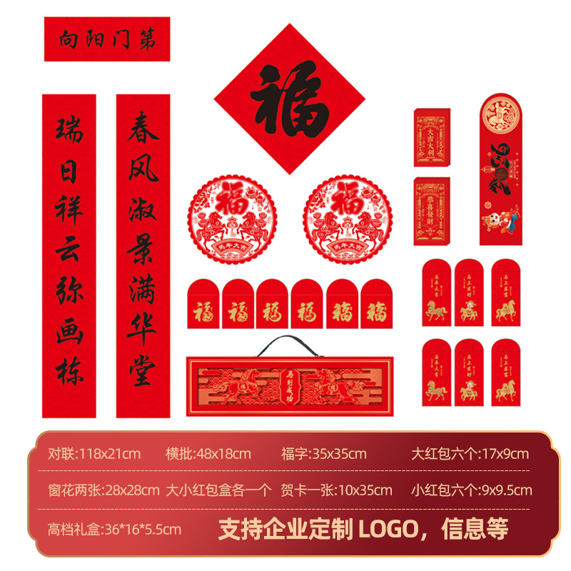 2026马年对联礼盒定制创意新年新款春联烫金丝绸企业定做logo礼包