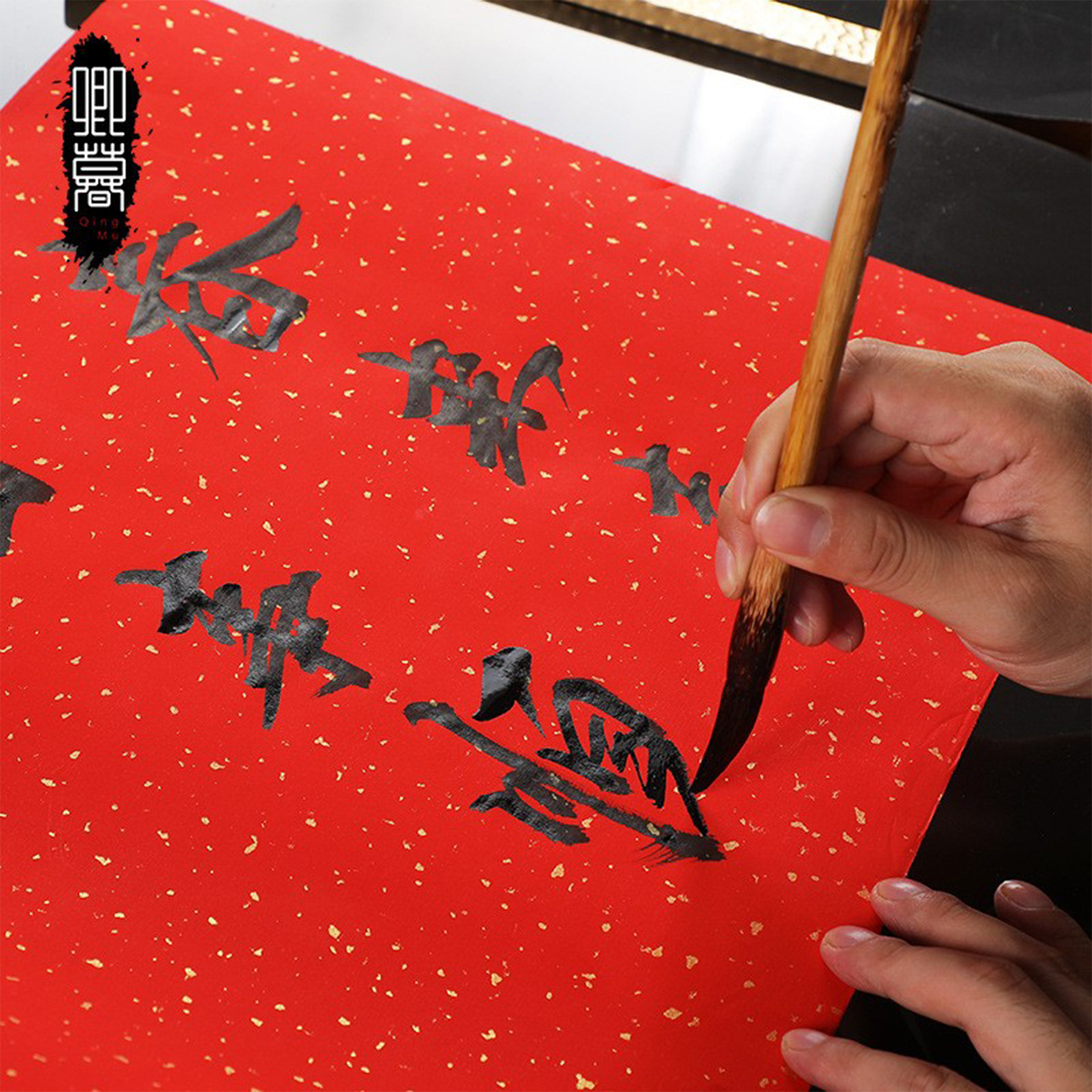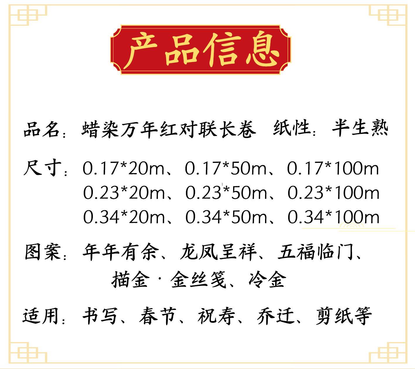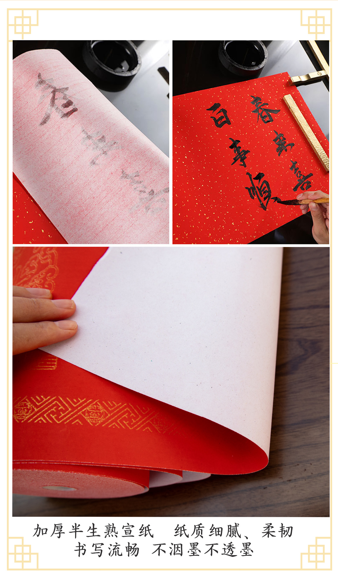 蜡染万年红长卷对联专用纸洒金加厚书画纸书法作品空白手写春联纸