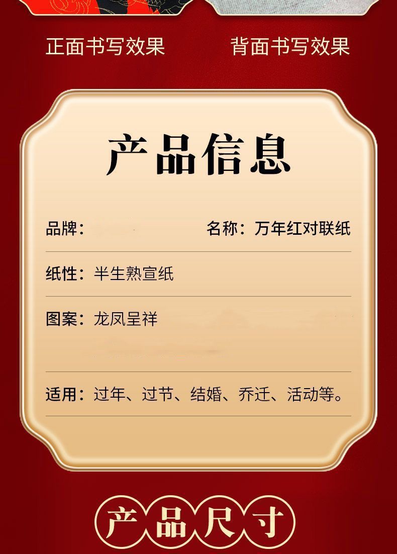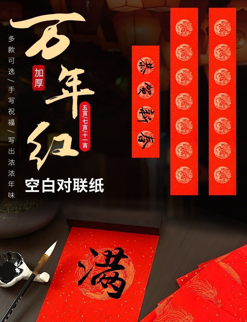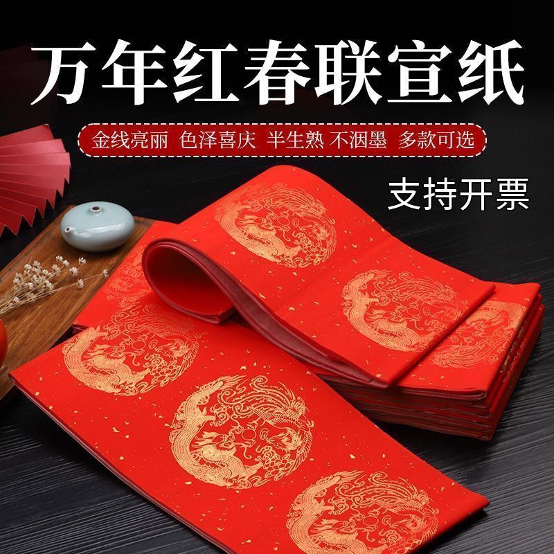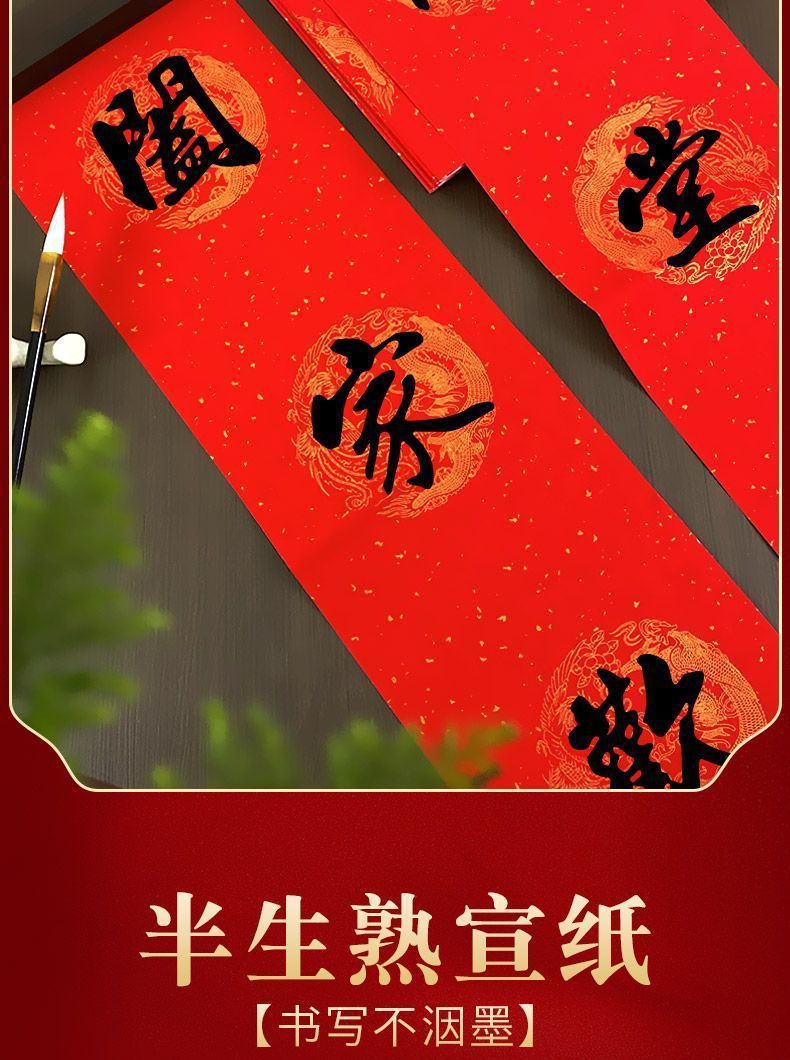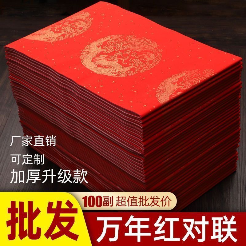 2026加厚万年红对联纸春节手写大红宣纸空白对联七言龙凤批发春联