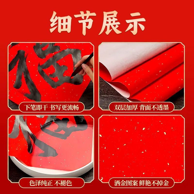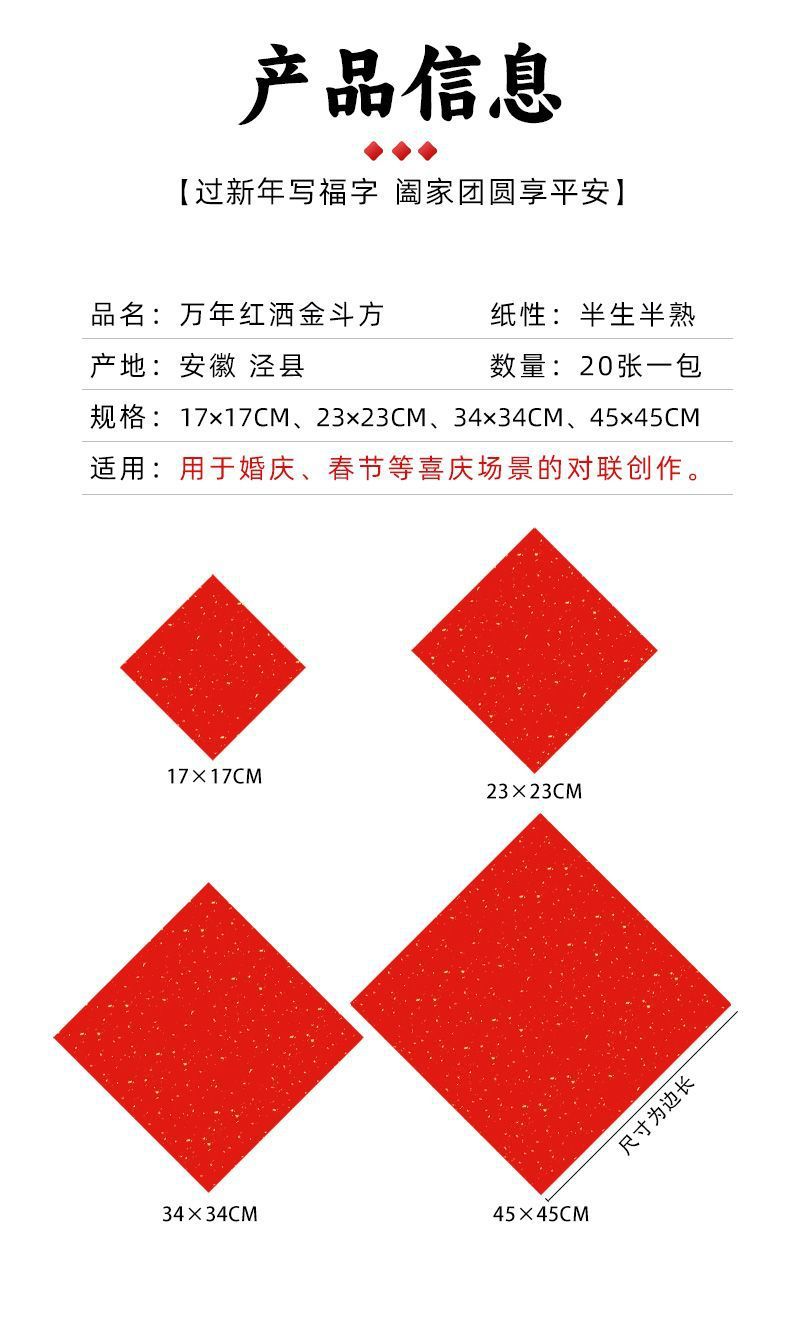 万年红洒金福字手写空白宣纸斗方对联红纸春联春节新年加厚书法