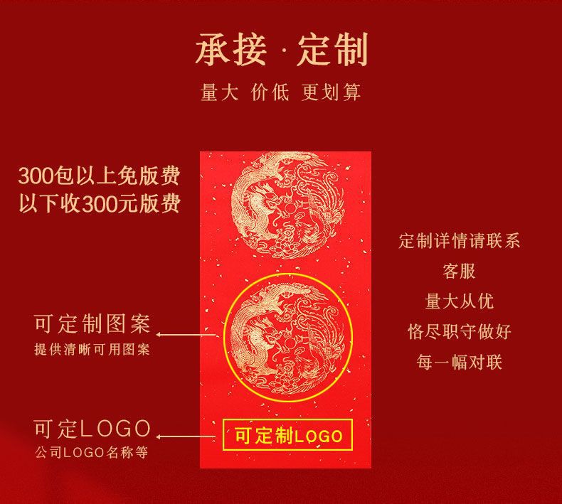 | seven-character verse (with a horizontal scroll) – thickened style(七言(带横批)加厚款) | USD $5.2 | 1000 piece available |