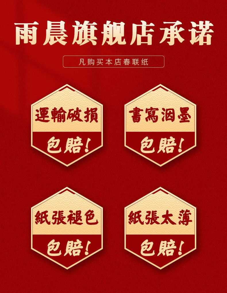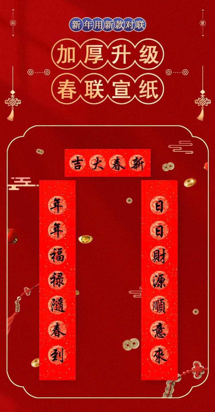 | eleven-character couplet (with horizontal scroll) – thickened version(十一言(带横批)加厚款) | USD $7.26 | 46 piece available |